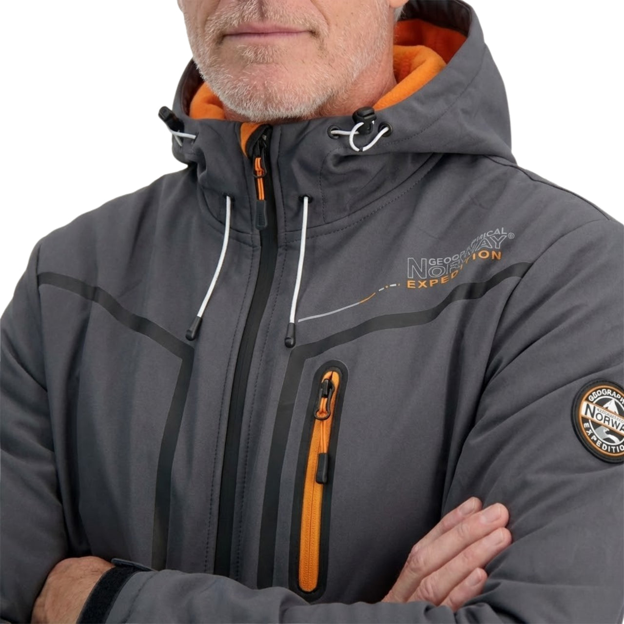 Discover the "Truello" softshell from Geographical Norway for men. This functional jacket features an adjustable hood, an injected front zip pocket and 2 side pockets.