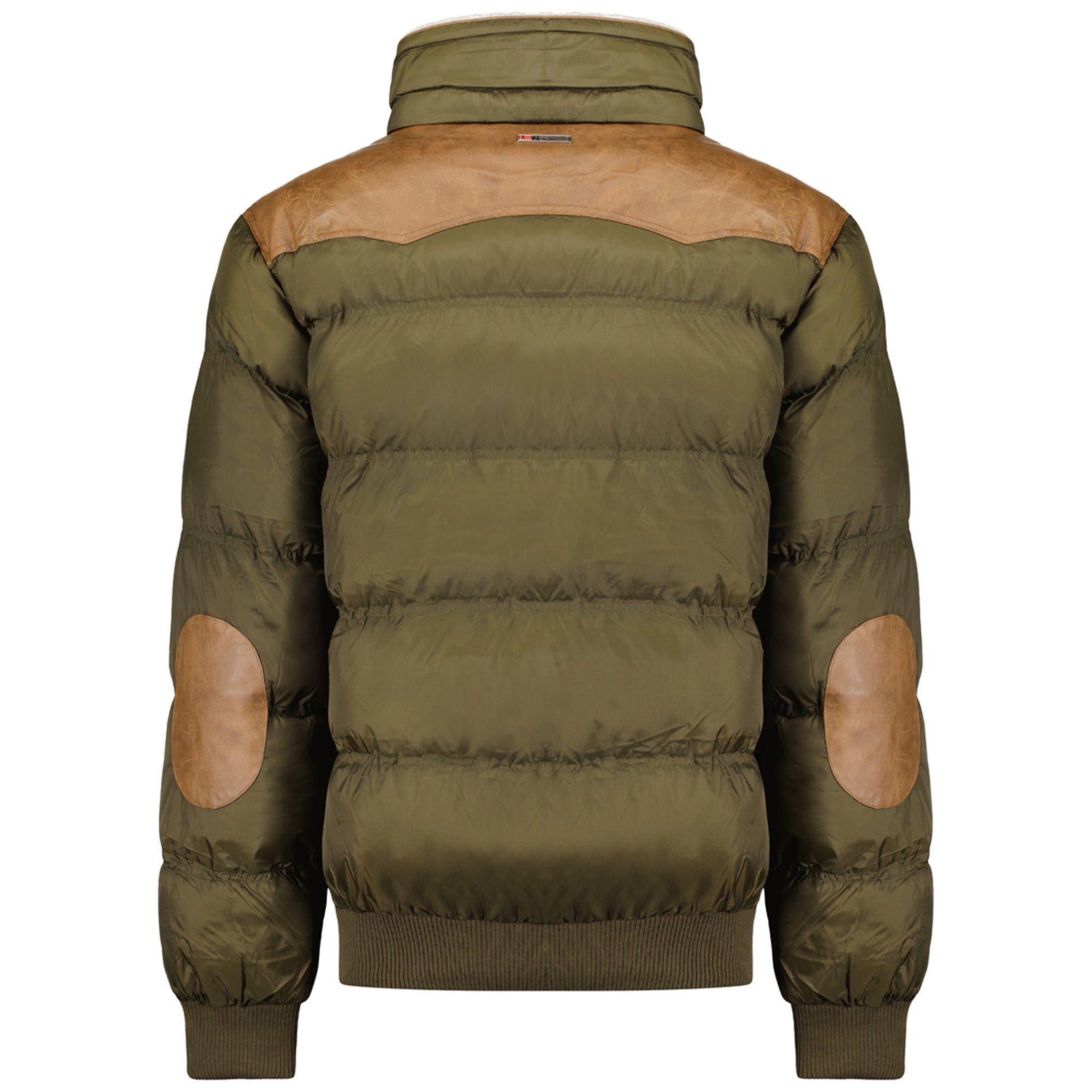 Descubre la chaqueta acolchada acolchado 'Abramovitch' de Geographical Norway, que combina comodidad y estilo para tus aventuras al aire libre. Su corte entallado realza tu silueta, mientras que las inserciones de piel sintética en hombros y codos añaden un toque de sofisticación. Los bolsillos laterales con cierre de botón y el cuello de sherpa fijo añaden un toque cálido y práctico a esta chaqueta acolchada de diseño llamativo.