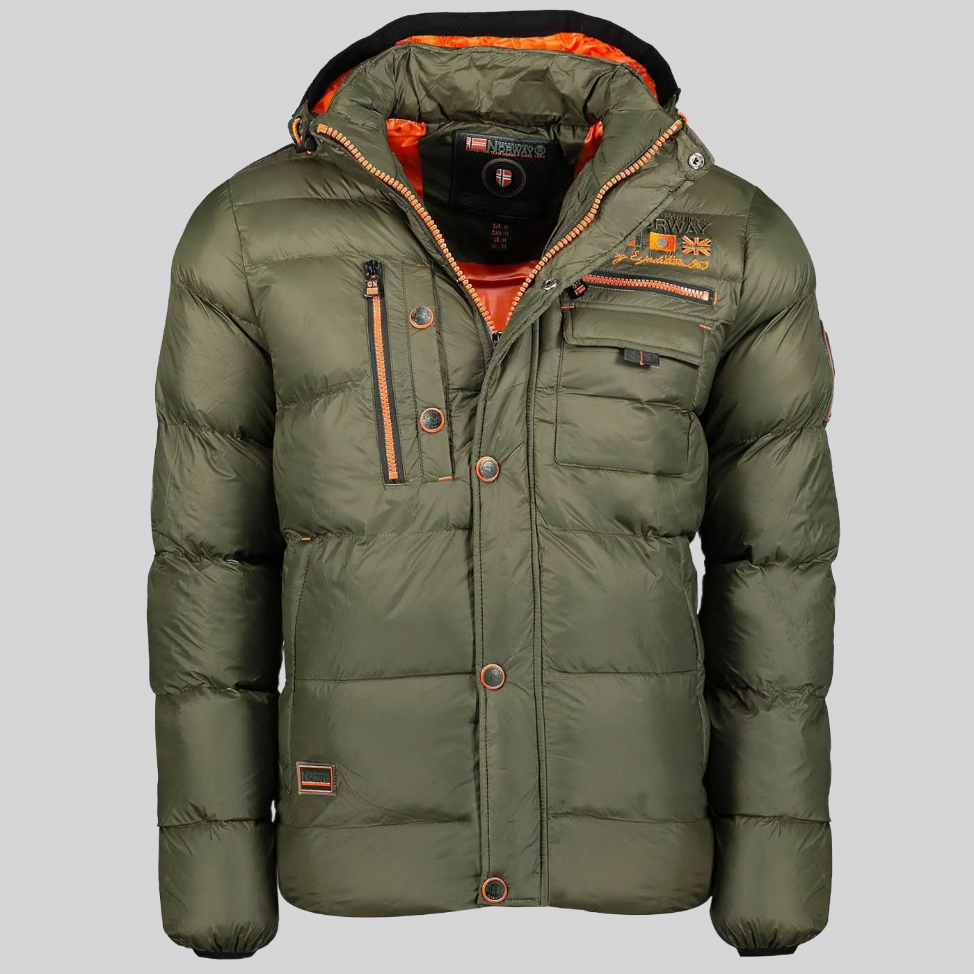Descubre la chaqueta "Citernier" de Geographical Norway para hombre, una prenda acolchada y elegante. Su capucha desmontable, los múltiples bolsillos delanteros, las insignias de PVC en la parte inferior de la prenda, la parte superior de la capucha, la manga y en la parte trasera del cuello, y el bordado en el pecho añaden un toque de estilo y practicidad a esta chaqueta.