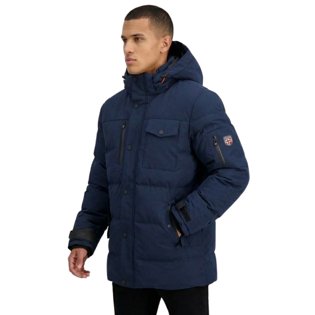 Descubre la parka "ALDESTO" de Geographical Norway para hombre. Esta parka con capucha tiene dos bolsillos abotonados a los lados y un bolsillo con cremallera inyectada en el pecho para un estilo práctico y funcional.