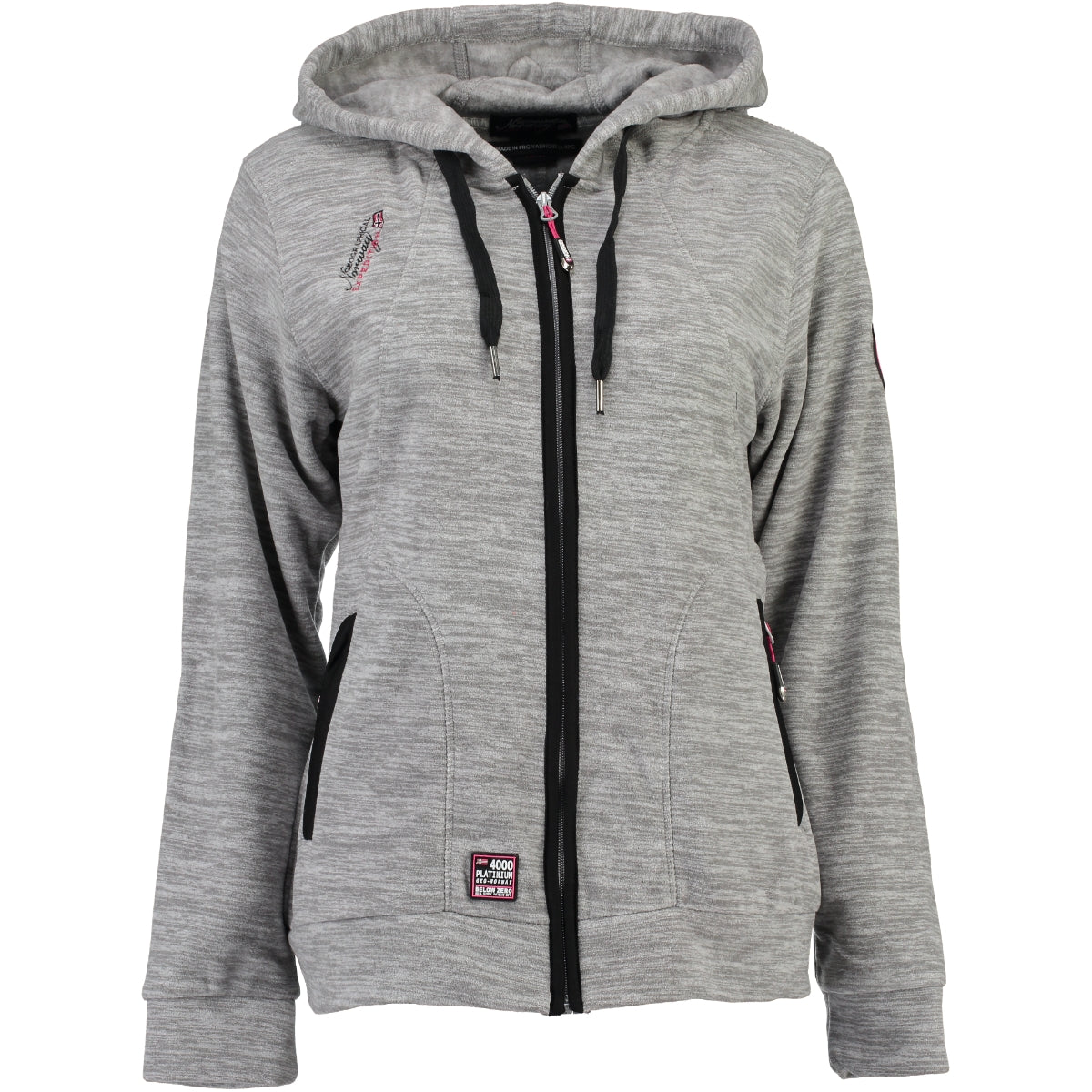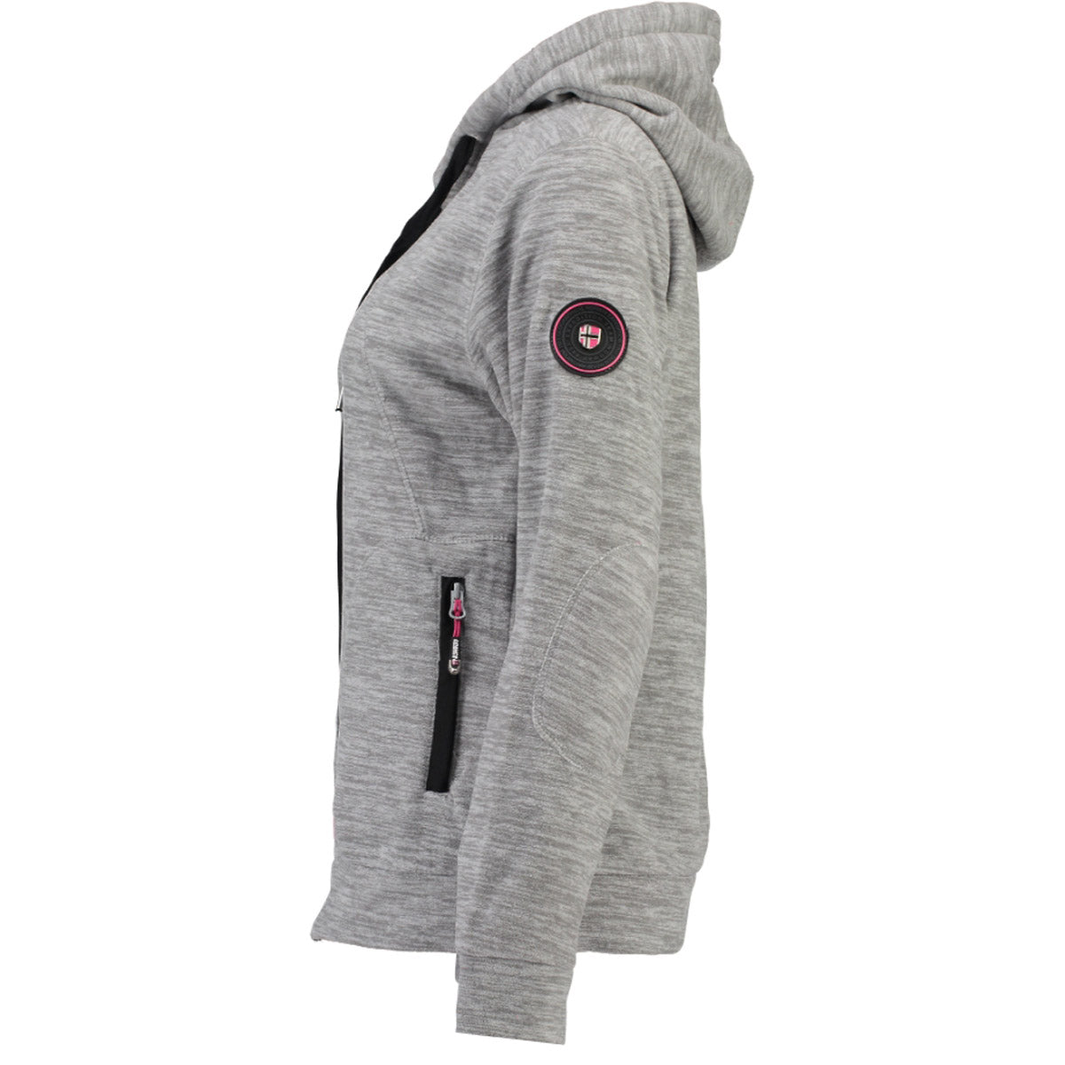 Descubre el forro polar para mujer "Twelve" de Geographical Norway. Este forro polar cuenta con capucha, bolsillos con cremallera, bordado en el pecho, insignias de PVC en la parte inferior de la prenda, en la manga y en la capucha.