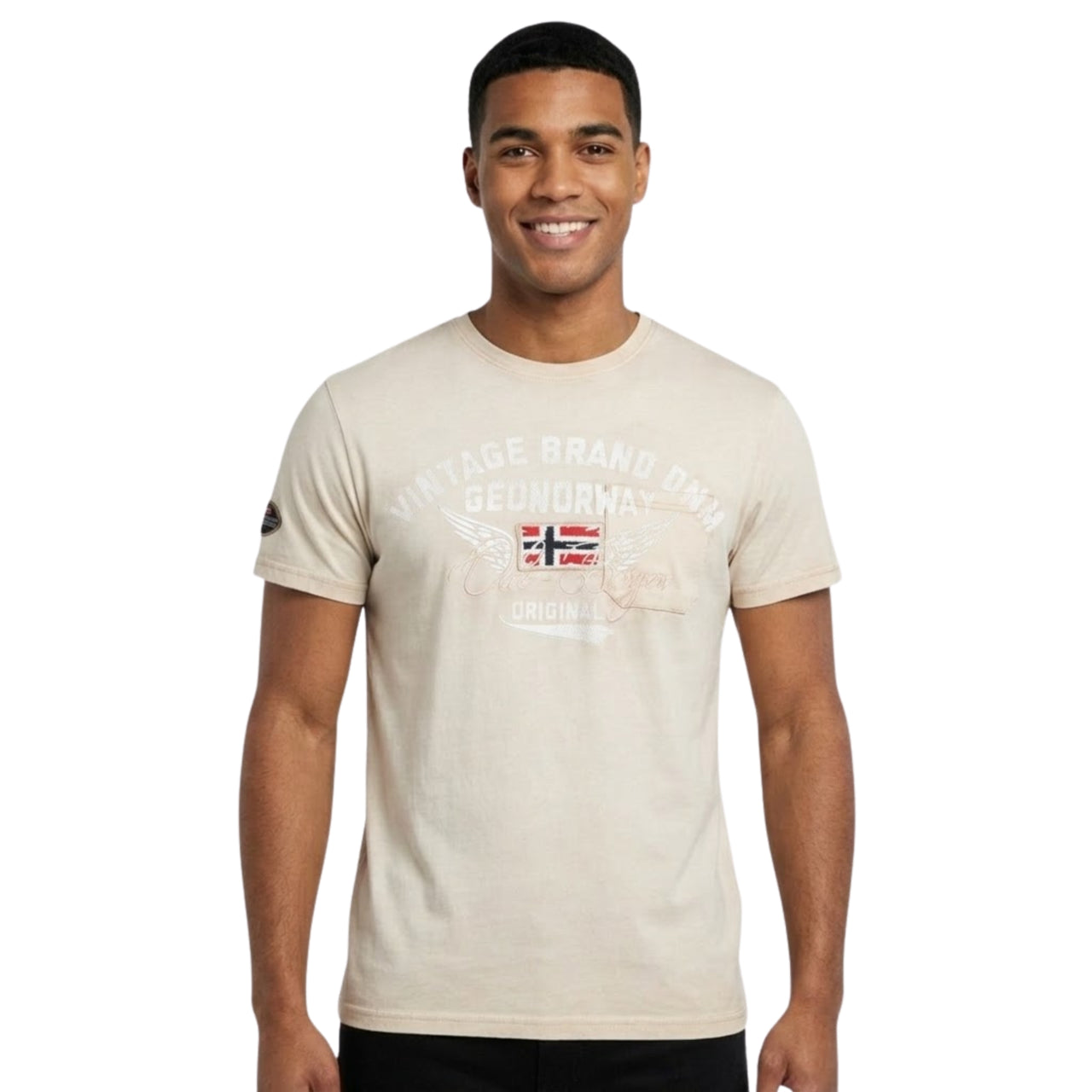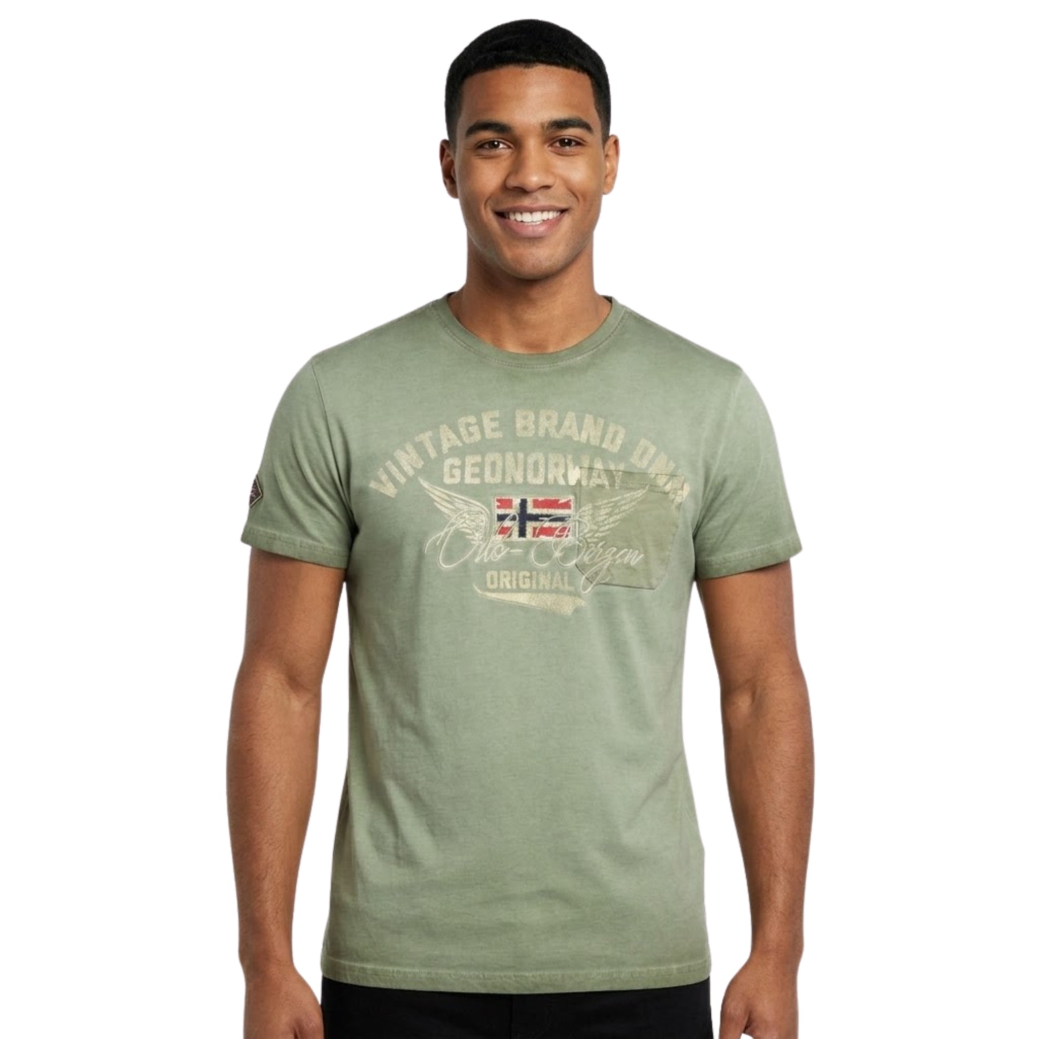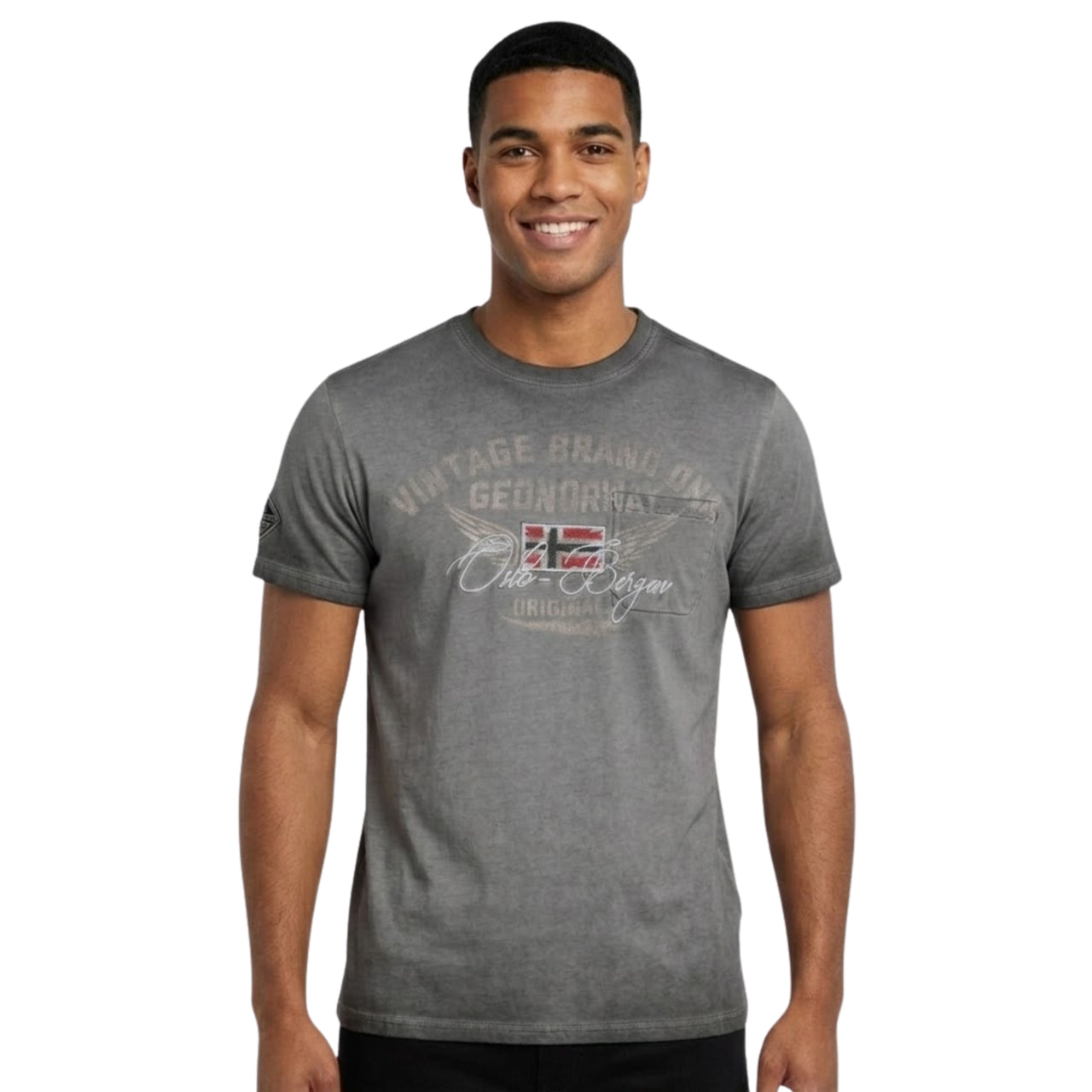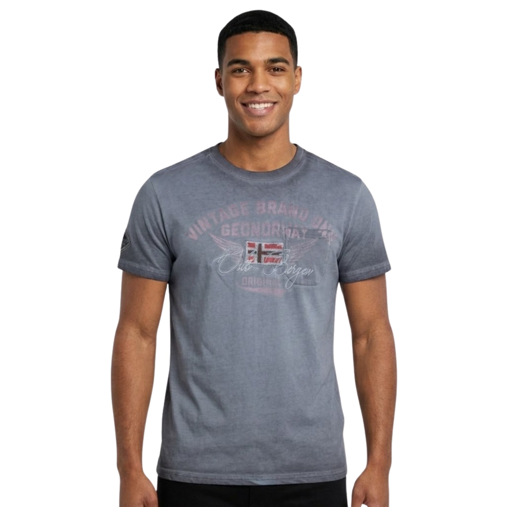 La camiseta «Jross Men» de Geographical Norway un modelo de manga corta con un estilo moderno y deportivo. Con cuello redondo clásico, garantiza una comodidad óptima gracias a su tejido de algodón. Su estampado y la bandera en la parte delantera le aportan un toque gráfico distintivo, mientras que la insignia en la manga refuerza su identidad auténtica. Ligera y agradable de llevar, es ideal para un look casual y dinámico.