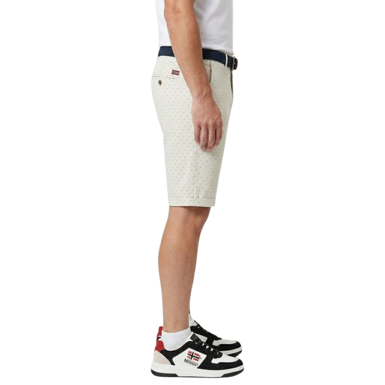 Las bermudas «Pacifique Men» de Geographical Norway un modelo moderno y cómodo, ideal para la temporada estival. Cuentan con un cinturón en la cintura para un ajuste óptimo, lo que garantiza una sujeción agradable durante todo el día. Sus estampados aportan un toque dinámico, mientras que sus bolsillos laterales y traseros ofrecen practicidad y funcionalidad. La bandera situada en la parte trasera refuerza la auténtica identidad de la marca. Su tejido ligeramente elástico garantiza comodidad y libertad de movimiento.
