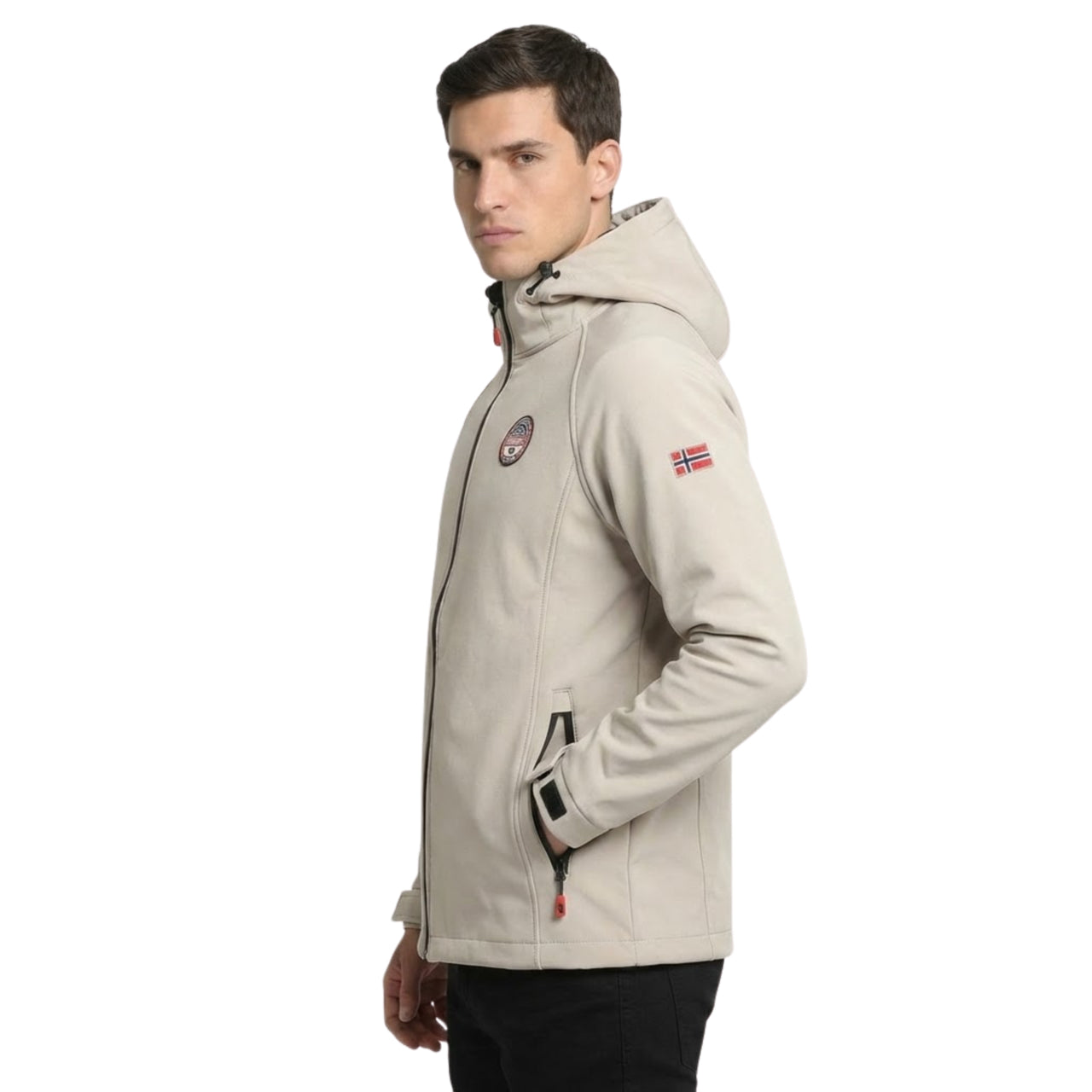 El softshell Geographical Norway Norway "Tamigobadge" para hombre combina estilo y funcionalidad para el uso diario en todas las estaciones. Confeccionado en tejido repelente al agua, ofrece una protección eficaz contra la lluvia ligera. Su capucha fija ajustable mediante cordón, los puños ajustables y los prácticos bolsillos laterales la hacen cómoda y versátil. La insignia distintiva en el pecho subraya la identidad moderna y deportiva de la marca.