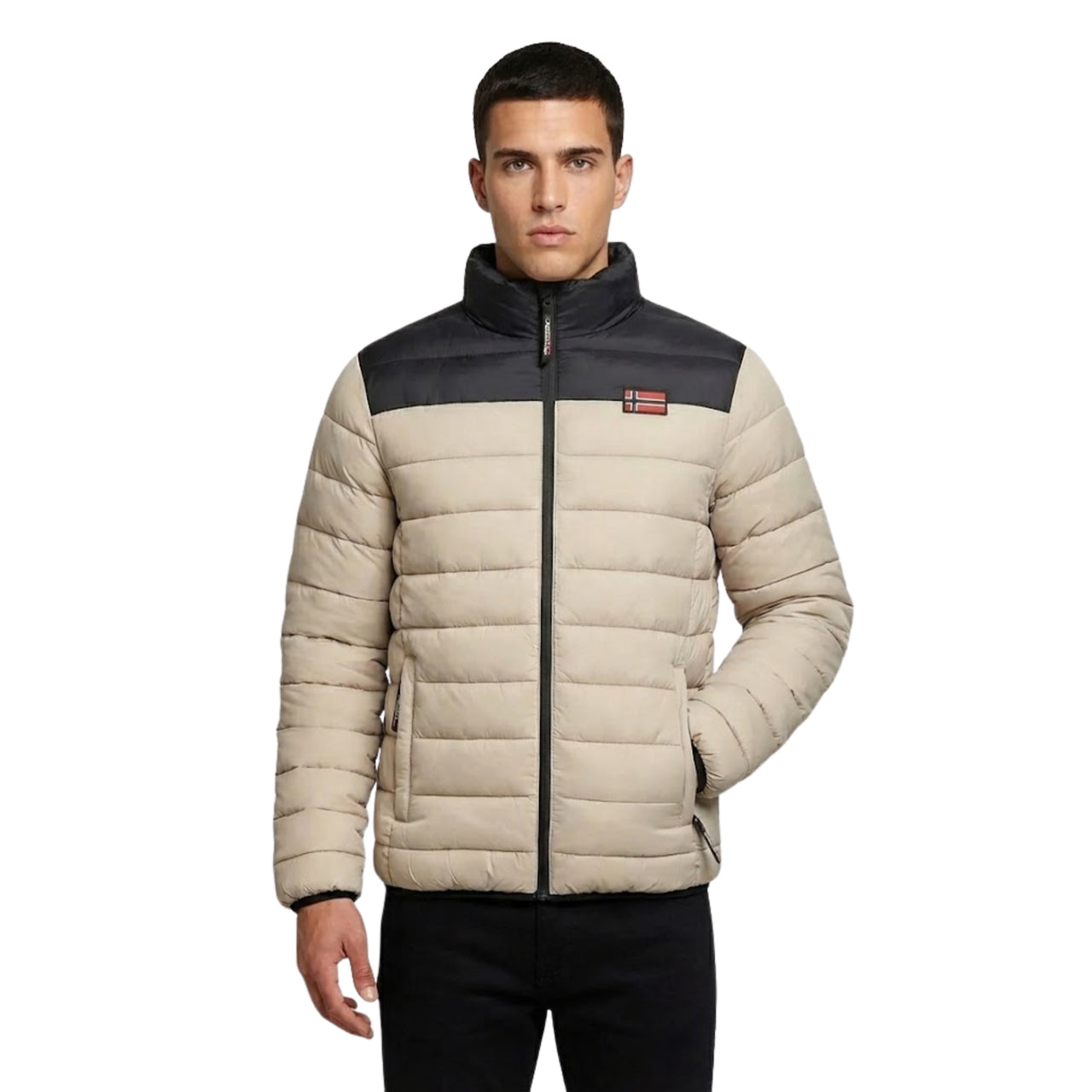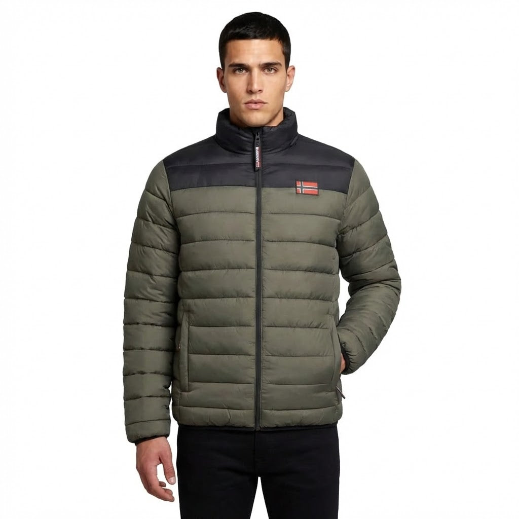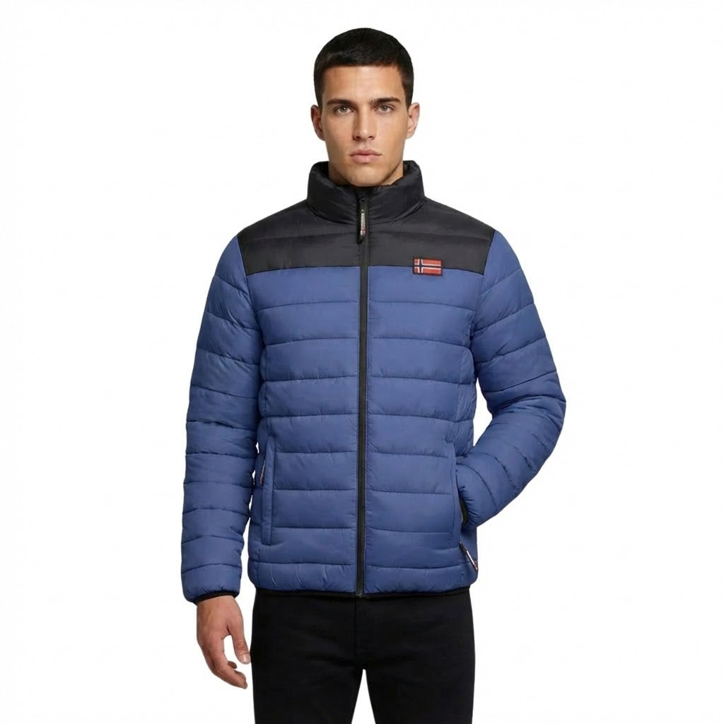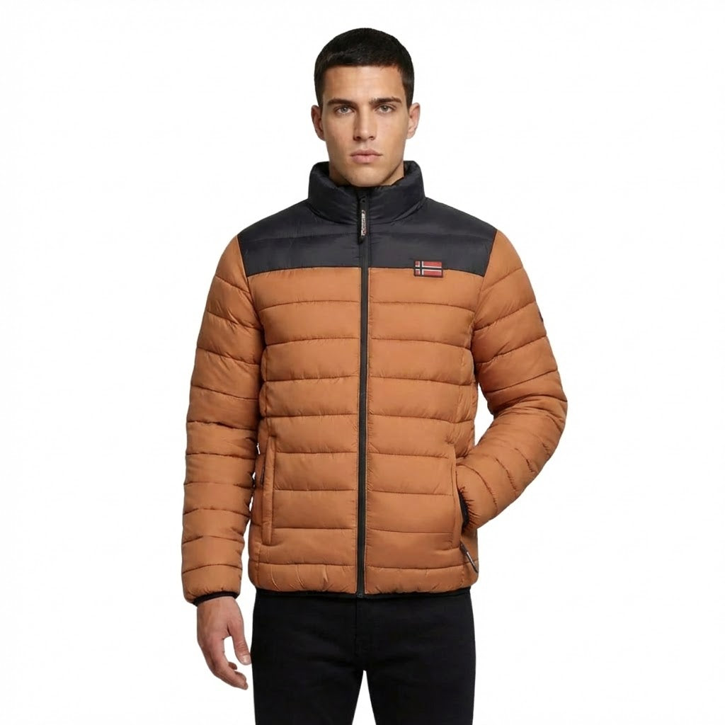 La chaqueta acolchada AMIGOCLERC para hombre de Geographical Norway Norway está diseñada para ofrecer comodidad y estilo a la vez que te protege del frío. Confeccionada en 100% poliamida, es ligera, duradera y te mantiene abrigado gracias a su acolchado. Esta chaqueta presenta modernos colores contrastados, una insignia en la parte delantera y un estampado en la espalda, que le dan un aspecto único. Tiene una cremallera central para facilitar el ajuste y bolsillos laterales para mayor practicidad. Ideal para los días más frescos, combina funcionalidad y elegancia para todas tus salidas.