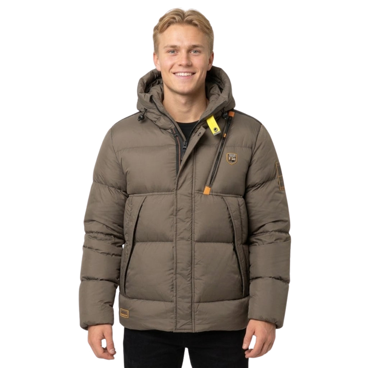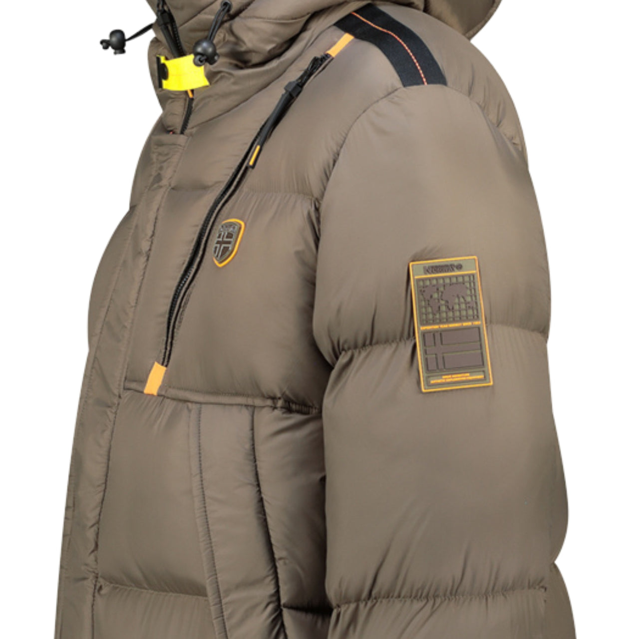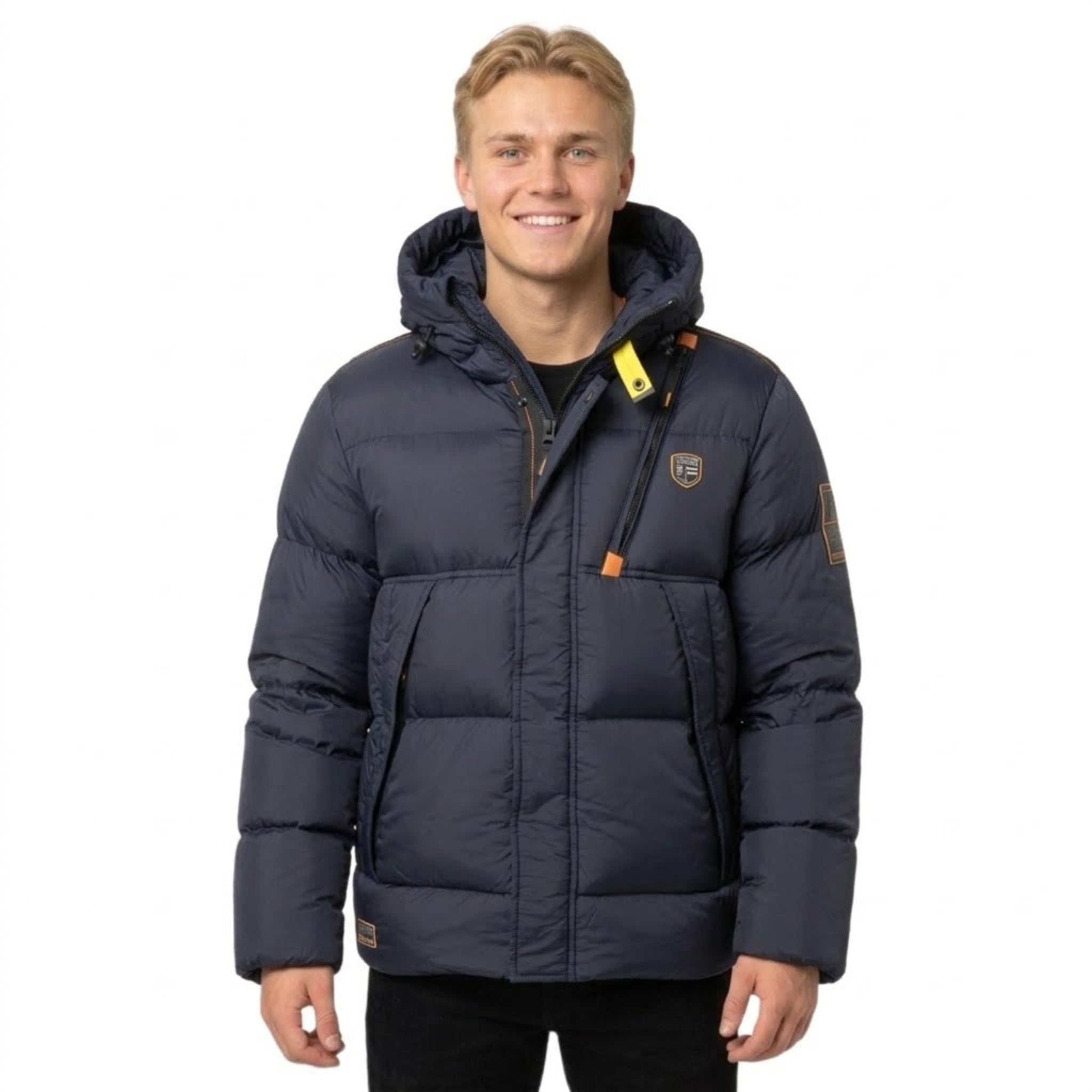 La parka Bodir para hombre de Geographical Norway Norway es un modelo de invierno que combina comodidad y robustez. Su capucha fija, ajustable con cordones, protege eficazmente de las inclemencias del tiempo, mientras que su tejido acolchado garantiza un calor confortable. Con un cierre de cremallera reforzado con botones a presión, prácticos bolsillos e insignias distintivas, esta parka es ideal para combinar estilo y protección en los días fríos.