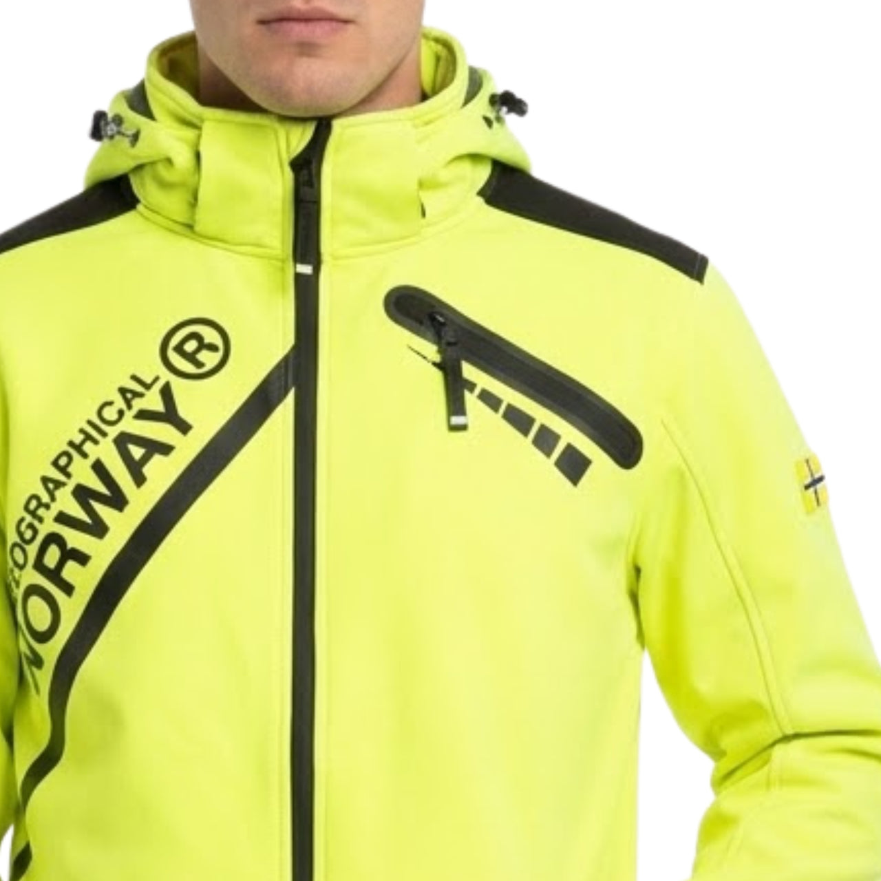 La Softshell Twopac de Geographical Norway Norway para hombre es una chaqueta funcional y elegante, perfecta tanto para actividades al aire libre como para el día a día. Con capucha protectora, tiene una abertura con cremallera, dos bolsillos laterales, un bolsillo en el pecho y un bolsillo en la manga. Los estampados gráficos en las mangas, la espalda y el pecho añaden un toque moderno y deportivo. Cómodo y resistente, este softshell es un práctico aliado en cualquier estación.