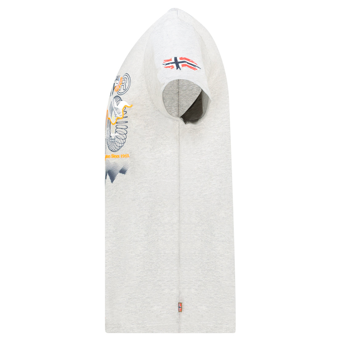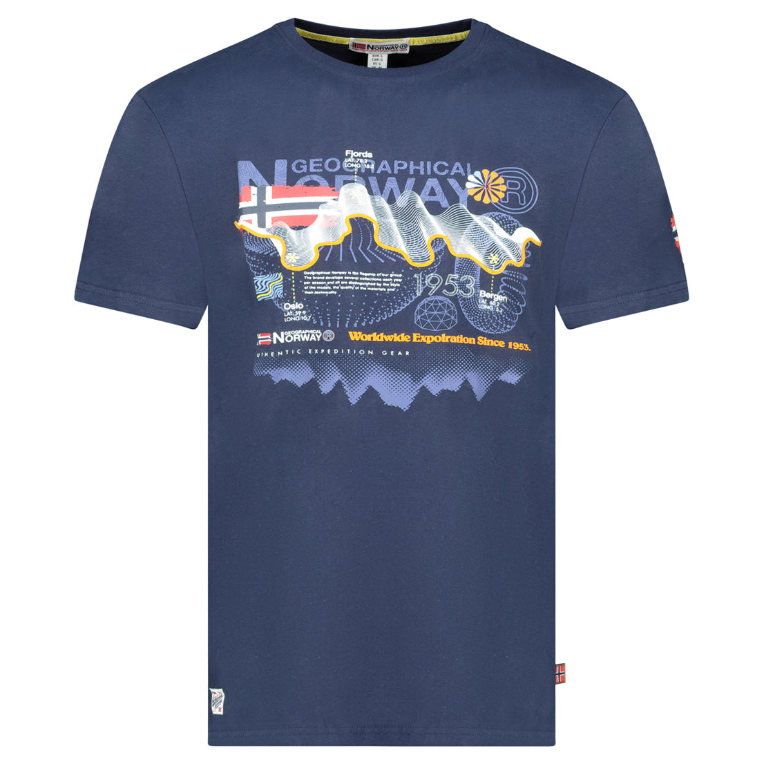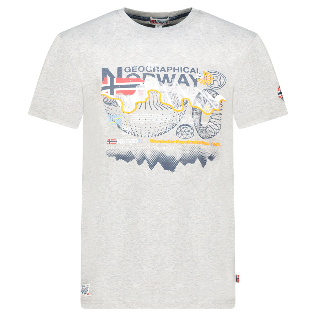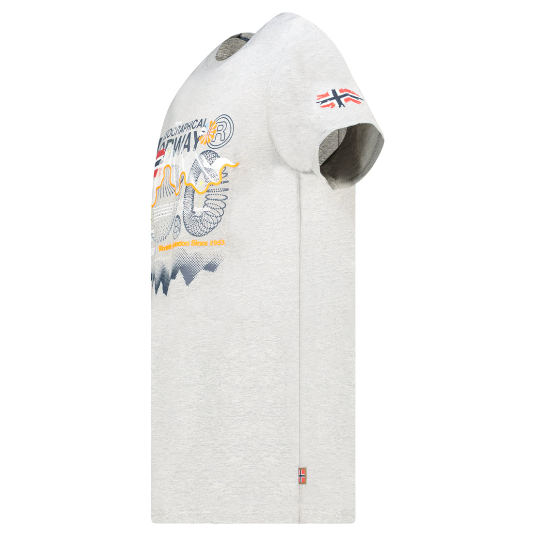 La camiseta «J-Vibe Men» de Geographical Norway un modelo de manga corta con un estilo moderno y dinámico. Con cuello redondo clásico, ofrece una comodidad óptima gracias a su tejido 100 % algodón. Su estampado y la bandera en la parte delantera, así como la bandera en la manga, le dan un toque deportivo y distintivo. Ligera y agradable de llevar, es perfecta para un look casual y moderno para el día a día.