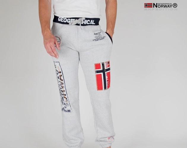 Descubre los pantalones de chándal para hombre "Myer" de Geographical Norway, una prenda cómoda y elegante. Con su dobladillo elástico y las numerosas insignias, bordados y estampados de las perneras, estos pantalones aportan un toque distintivo a tu atuendo de temática noruega.