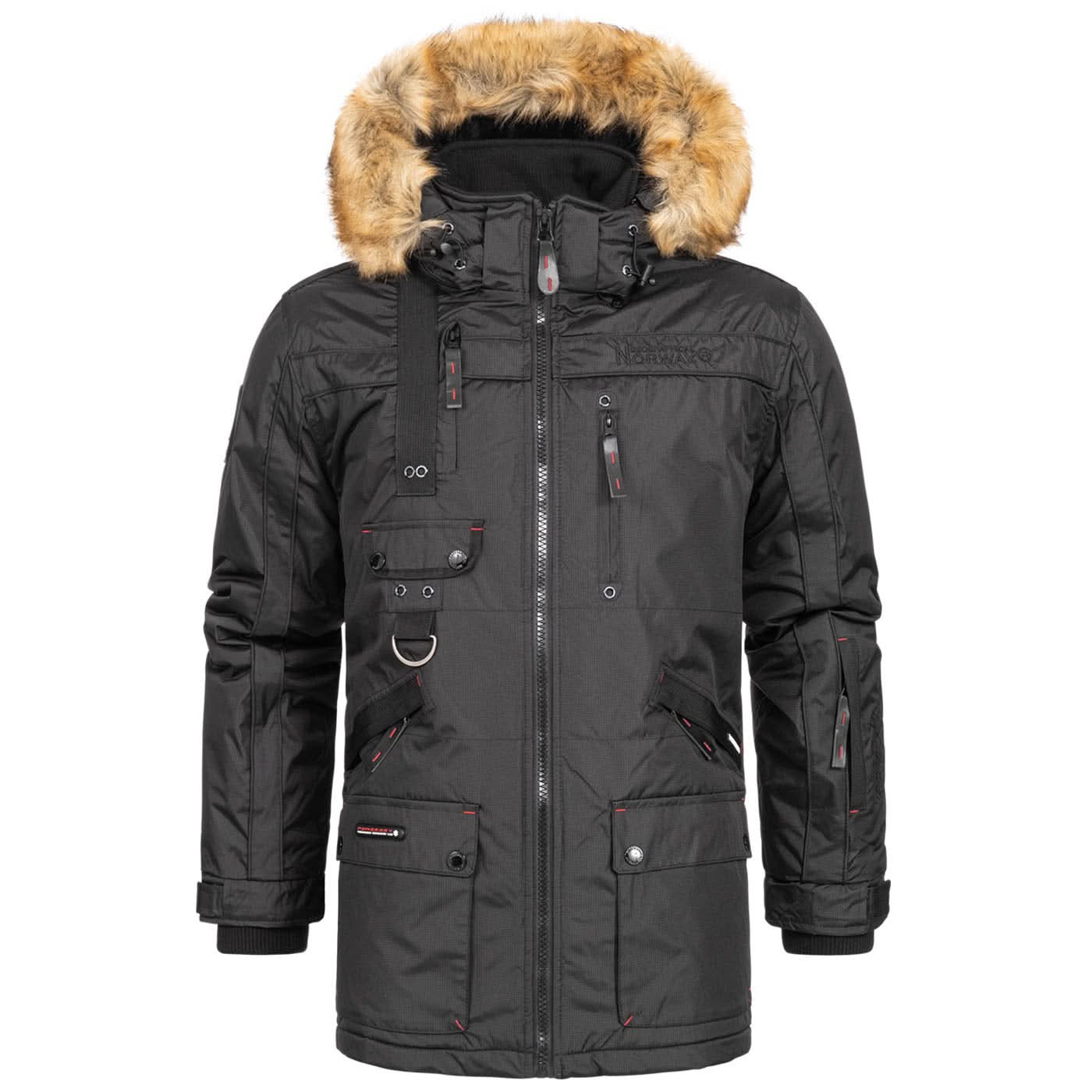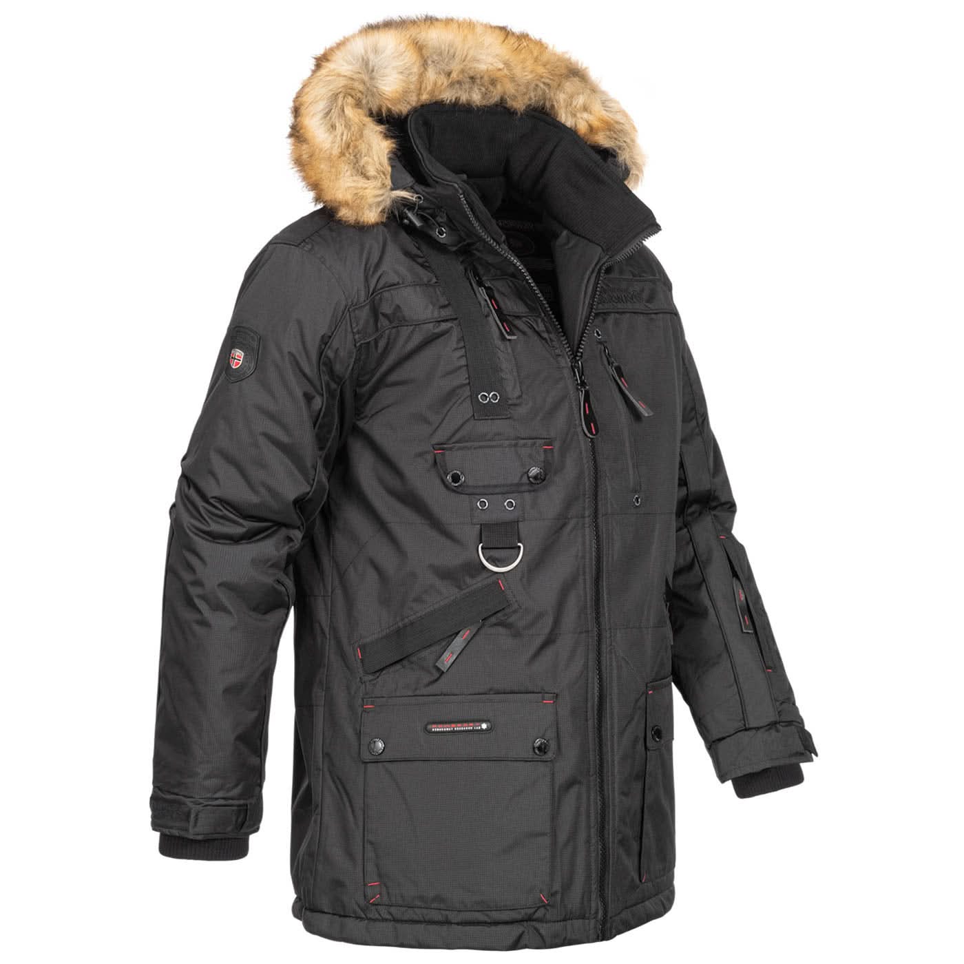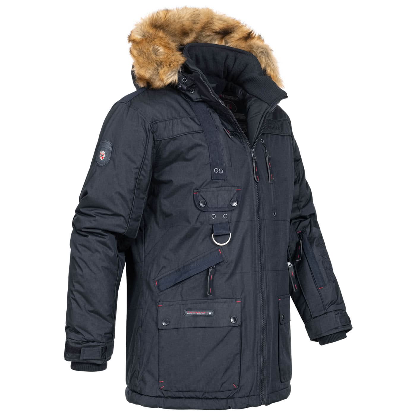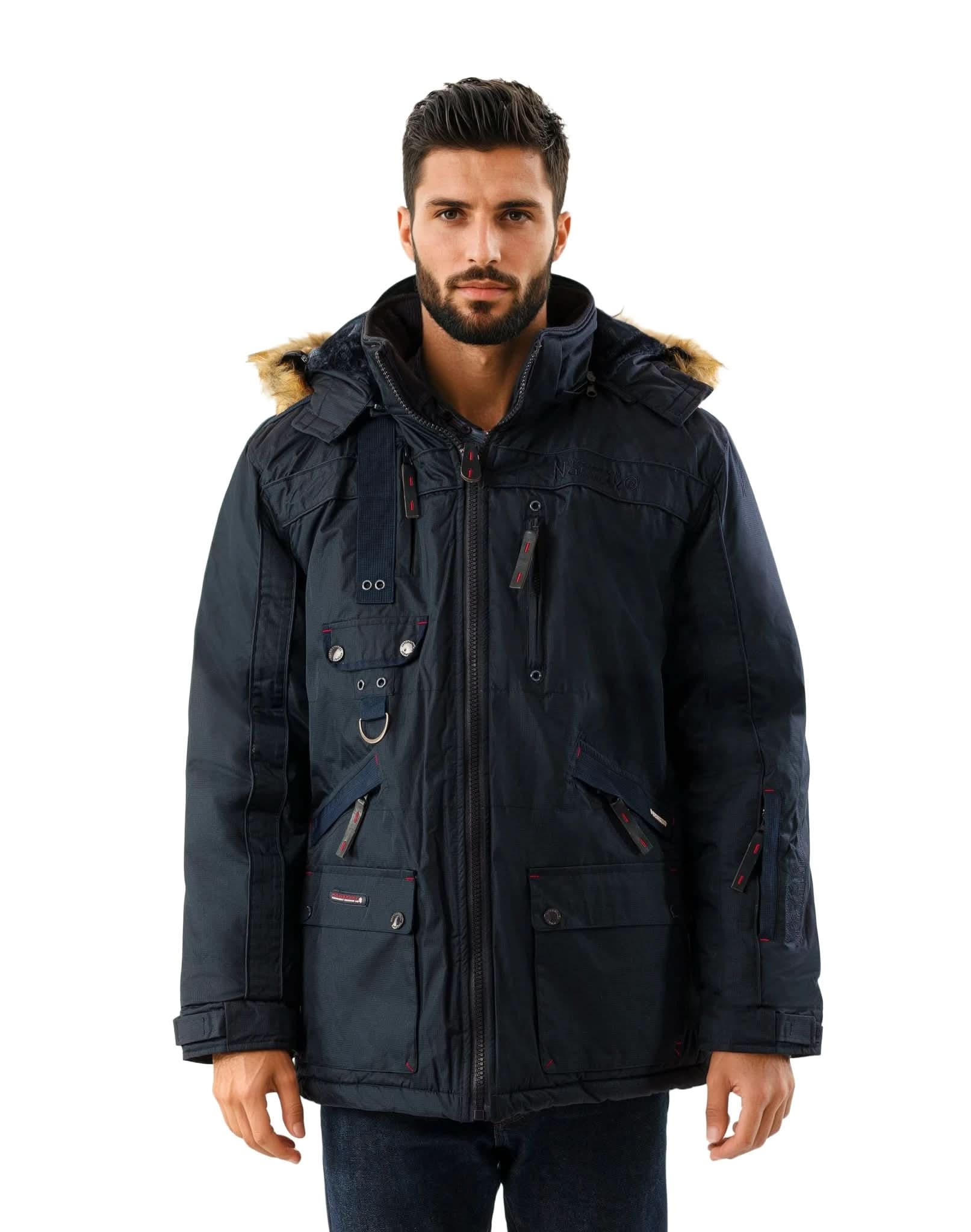 Descubre la parka para hombre "CHIRAC" de Geographical Norway Norway, una prenda elegante y funcional. Su capucha desmontable con piel sintética por dentro y por fuera, sus múltiples bolsillos delanteros, el bordado tono sobre tono en el pecho y la insignia de PVC en la manga aportan un toque de estilo y practicidad a esta parka.