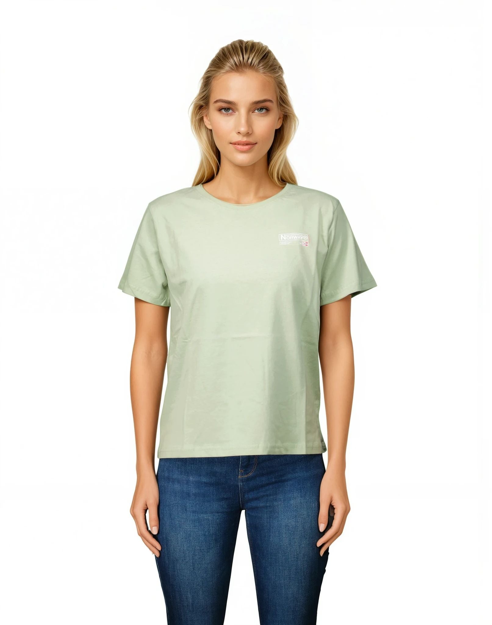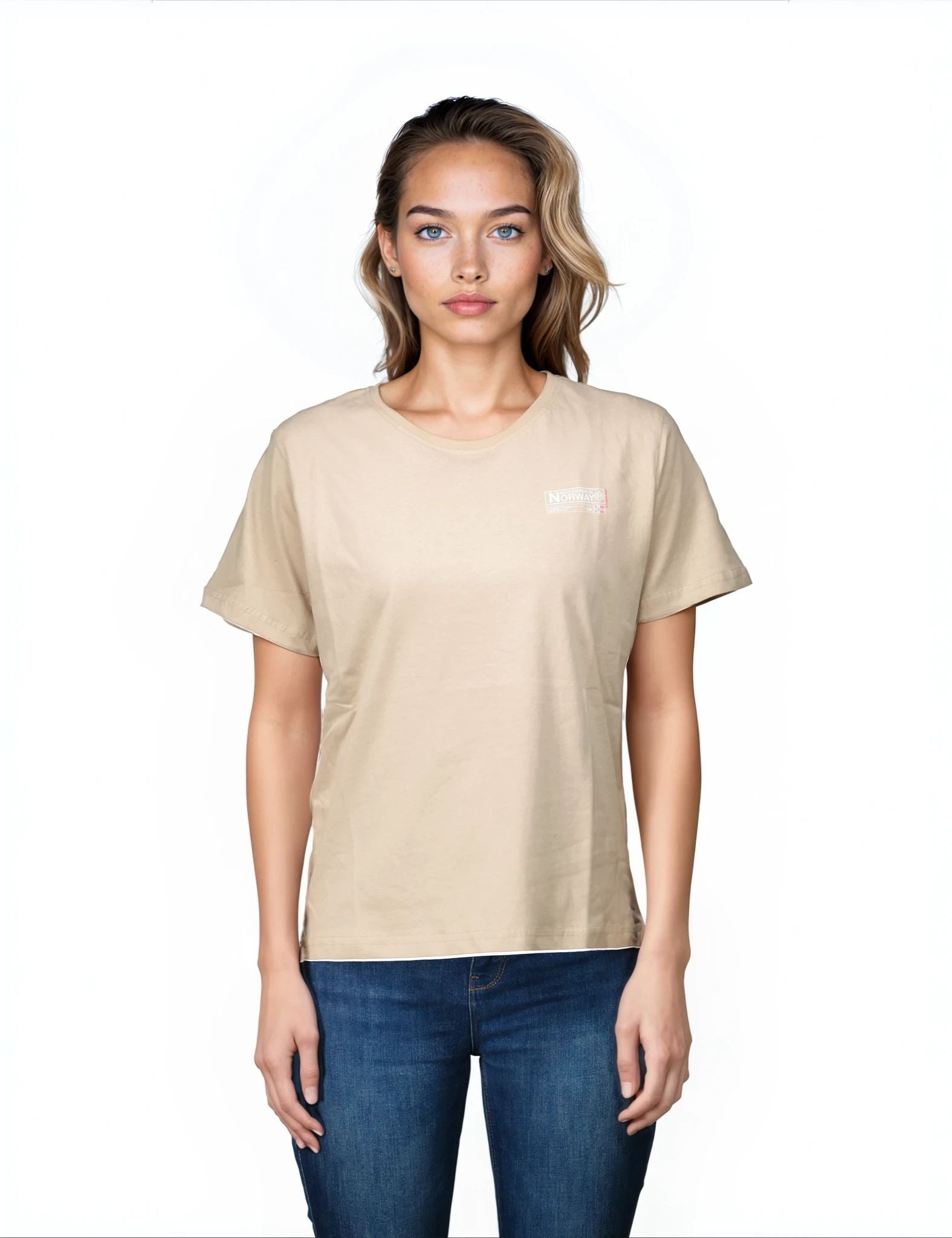La camiseta "Jilva" para mujer de Geographical Norway Norway es un básico revisitado con un toque gráfico. Confeccionada en algodón 100%, es suave, transpirable y cómoda de llevar, ideal para los días informales. Su corte clásico con cuello redondo y mangas cortas se adapta a todas las formas del cuerpo, mientras que el estampado de la parte delantera añade un toque moderno a tu atuendo. Fácil de combinar, esta camiseta es imprescindible en los armarios informales femeninos.