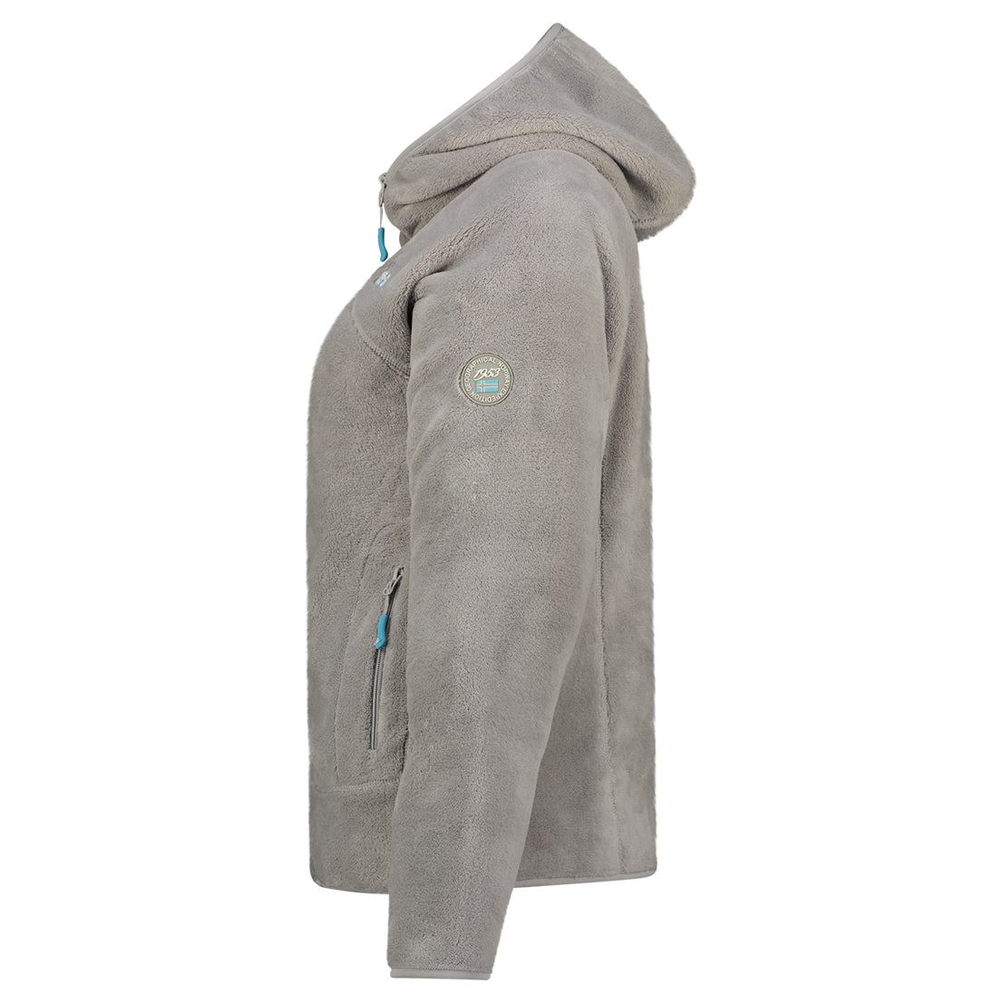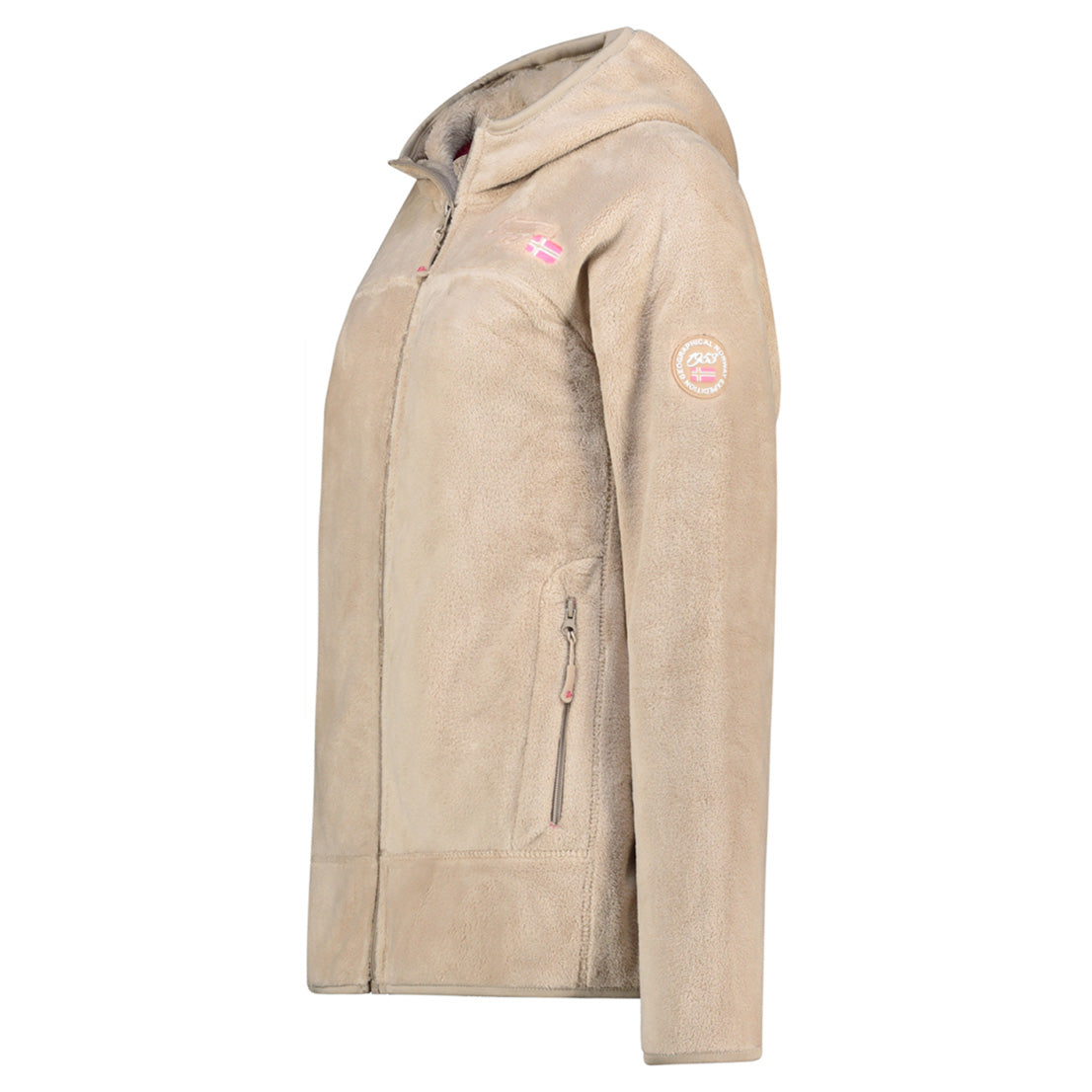 Echa un vistazo al forro polar con cremallera Upalood para mujer de Geographical Norway. Este forro polar tiene un bordado en el pecho, una capucha fija de suave forro polar, 2 bolsillos con cremallera, un logotipo bordado en el antebrazo y una insignia de PVC en la parte superior de la manga.