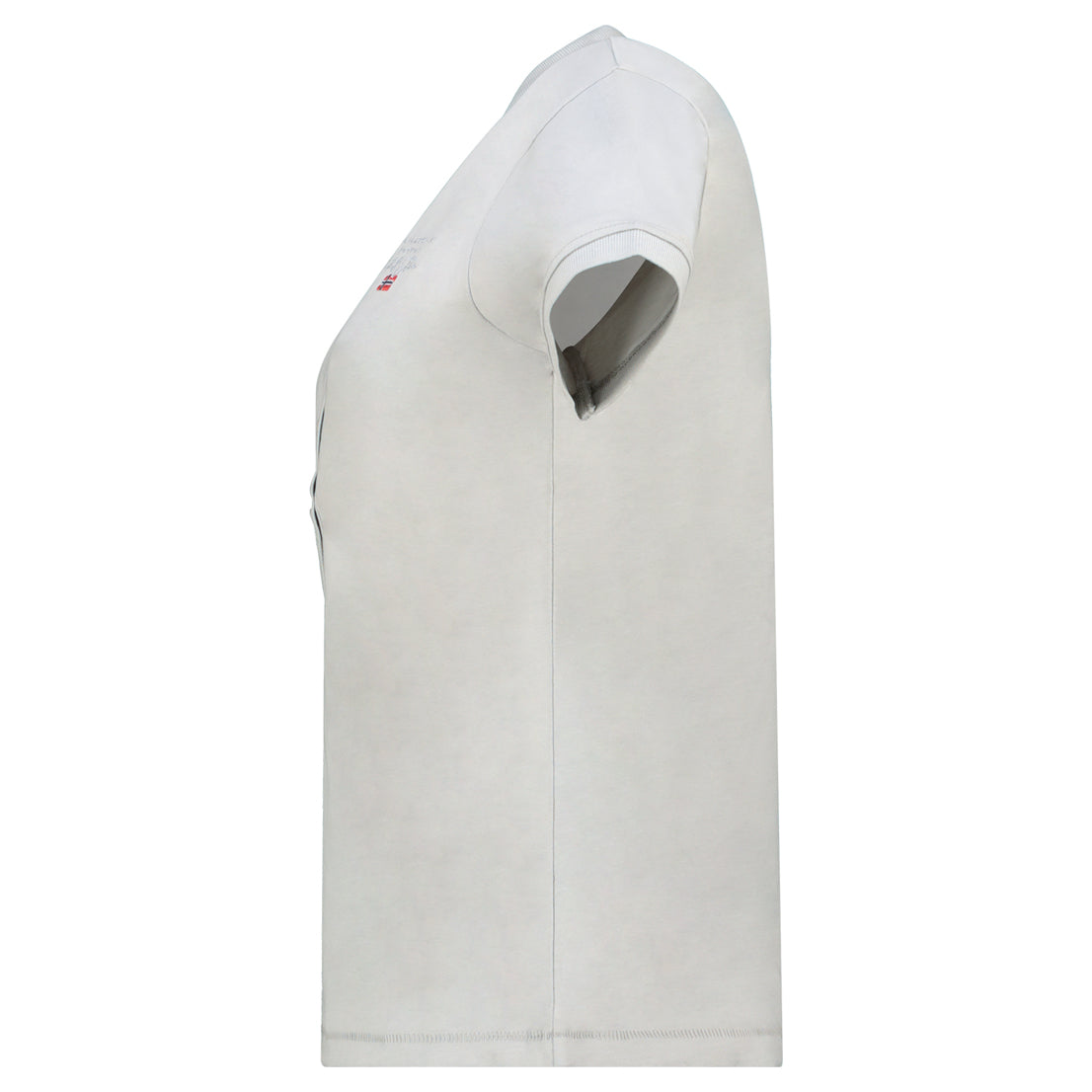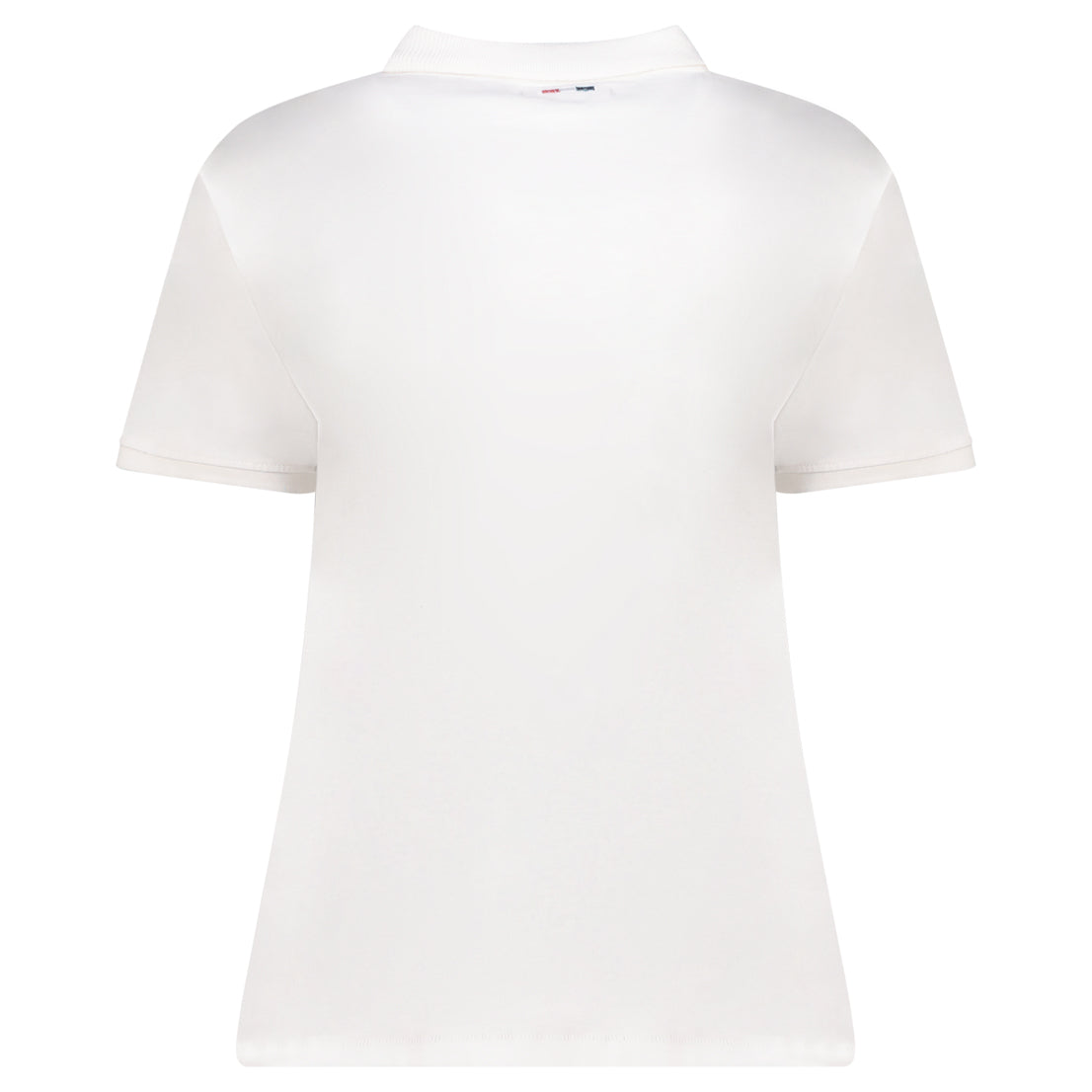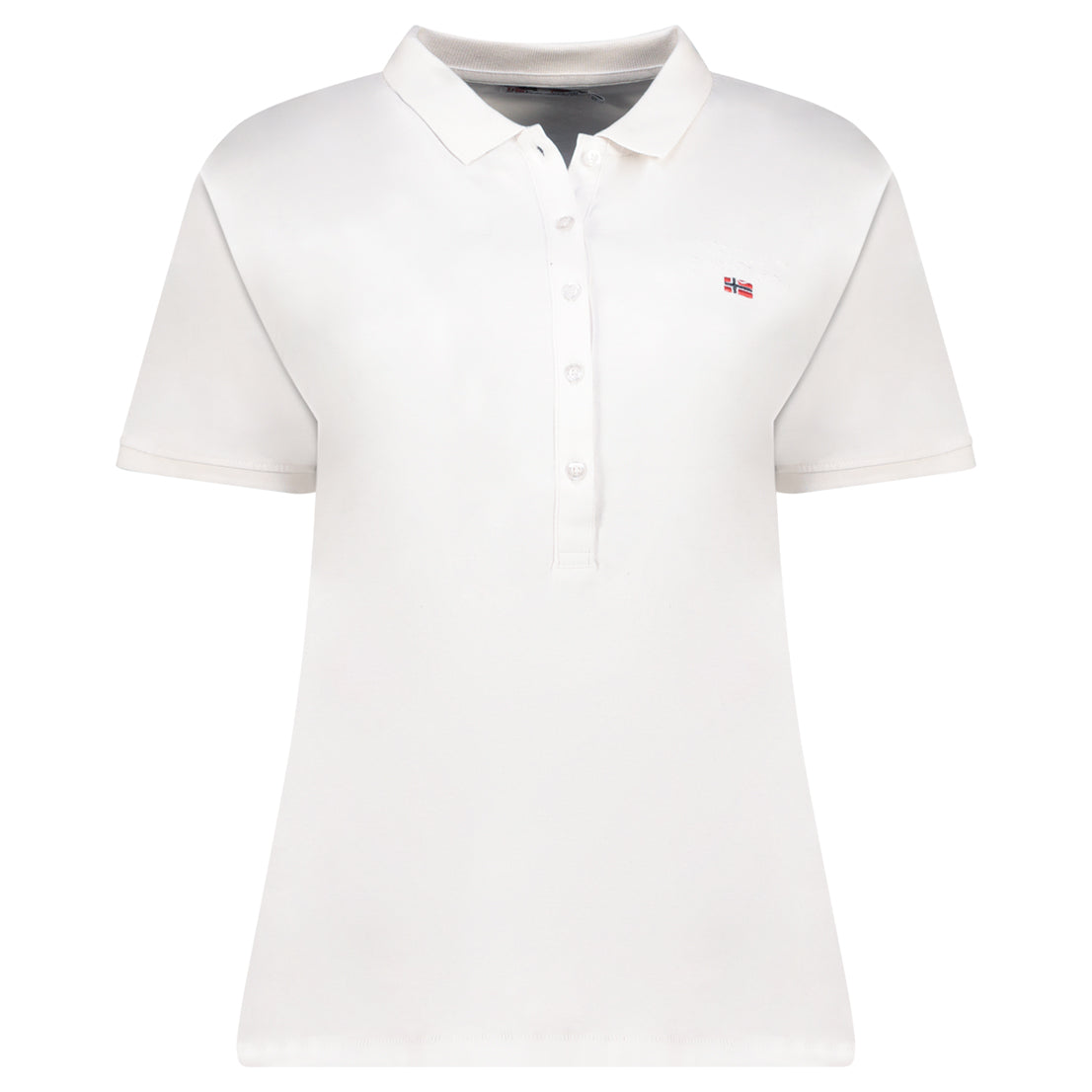 El polo «Krystaline Lady» de Geographical Norway un modelo de manga corta con un estilo moderno y femenino. Con un cuello abotonado clásico, aporta un toque elegante sin renunciar a la comodidad. Su estampado con una bandera en la parte delantera refuerza su identidad deportiva y dinámica. Confeccionado en algodón, es ligero y agradable de llevar a diario.