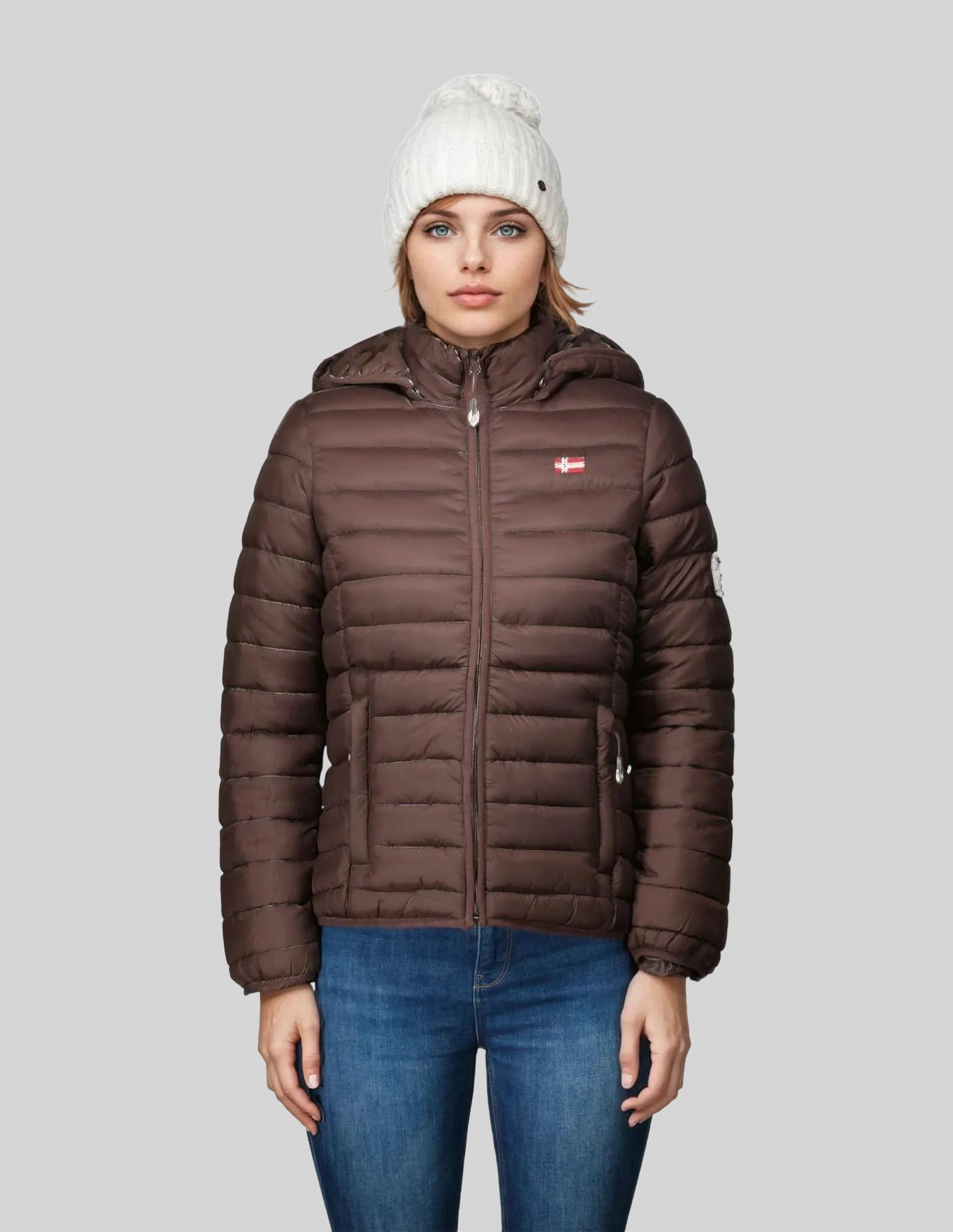 La chaqueta acolchada para mujer ATIKA HOOD de Geographical Norway Norway combina comodidad, calidez y estilo para acompañarte en tus salidas invernales. Confeccionada en 100% poliamida, es ligera, resistente y mantiene su forma con el paso del tiempo. Esta chaqueta tiene prácticos bolsillos laterales para mantener las manos calientes y detalles distintivos, como la insignia en el brazo y la bandera en el pecho, que añaden un toque de autenticidad. Ideal para un look informal y al aire libre, garantiza una protección óptima contra el frío sin perder el estilo.