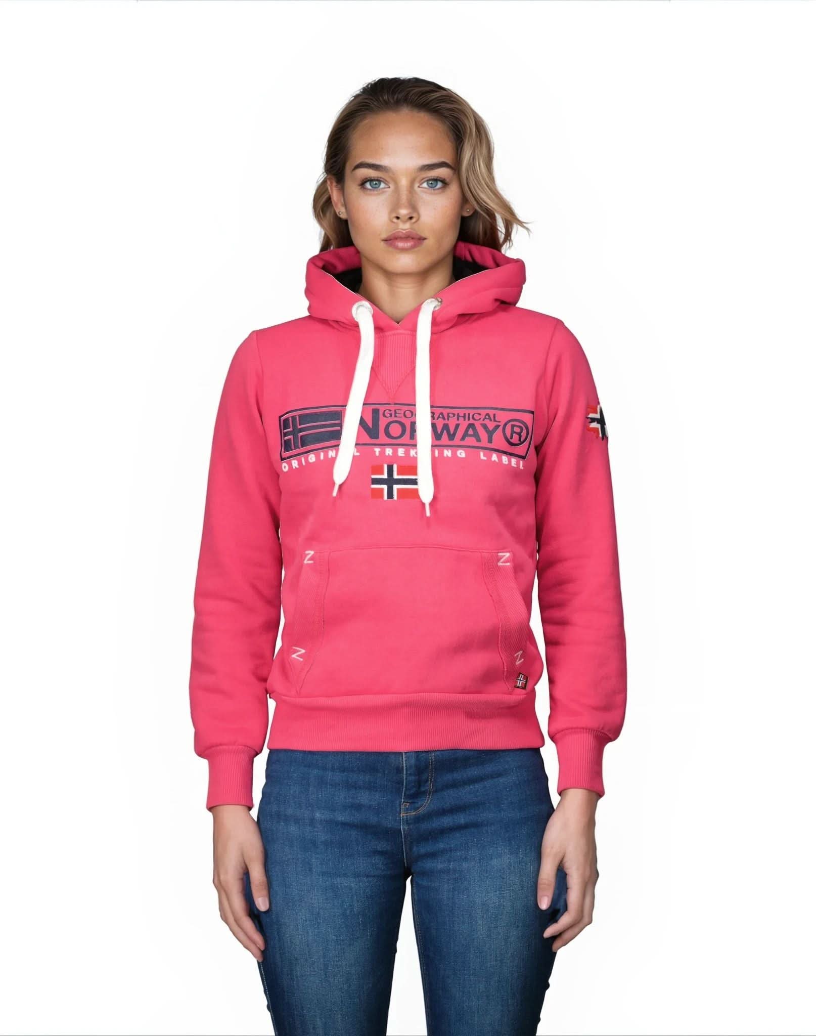 Geographical NorwayEcha un vistazo a la sudadera con capucha "GASIC" para mujer de , un básico de moda con cierre de cordón y bolsillo canguro. Los cuidados estampados de la parte delantera y los brazos añaden un toque de distinción a este modelo. Geographical Norway Diseñada por , esta sudadera combina elegancia y comodidad para un estilo a la vez moderno y desenfadado. Con su corte elegante y sus materiales de calidad, es la elección perfecta para los días más frescos. Geographical Norway No te pierdas esta icónica sudadera de la colección.