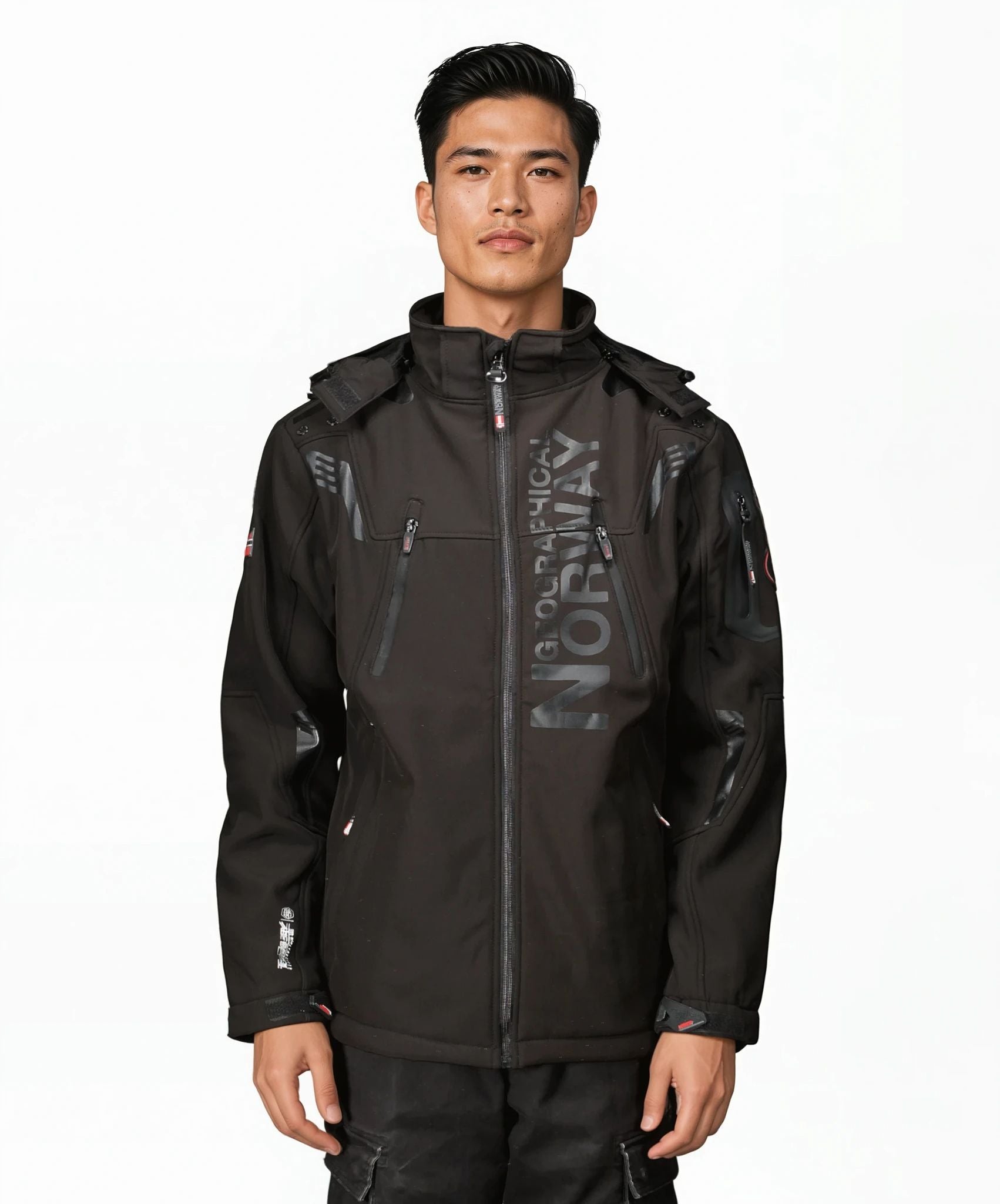 Descubre el softshell "Talented" para hombre de Geographical Norway. Con capucha desmontable y múltiples bolsillos con cremallera, combina el estilo moderno con la funcionalidad.