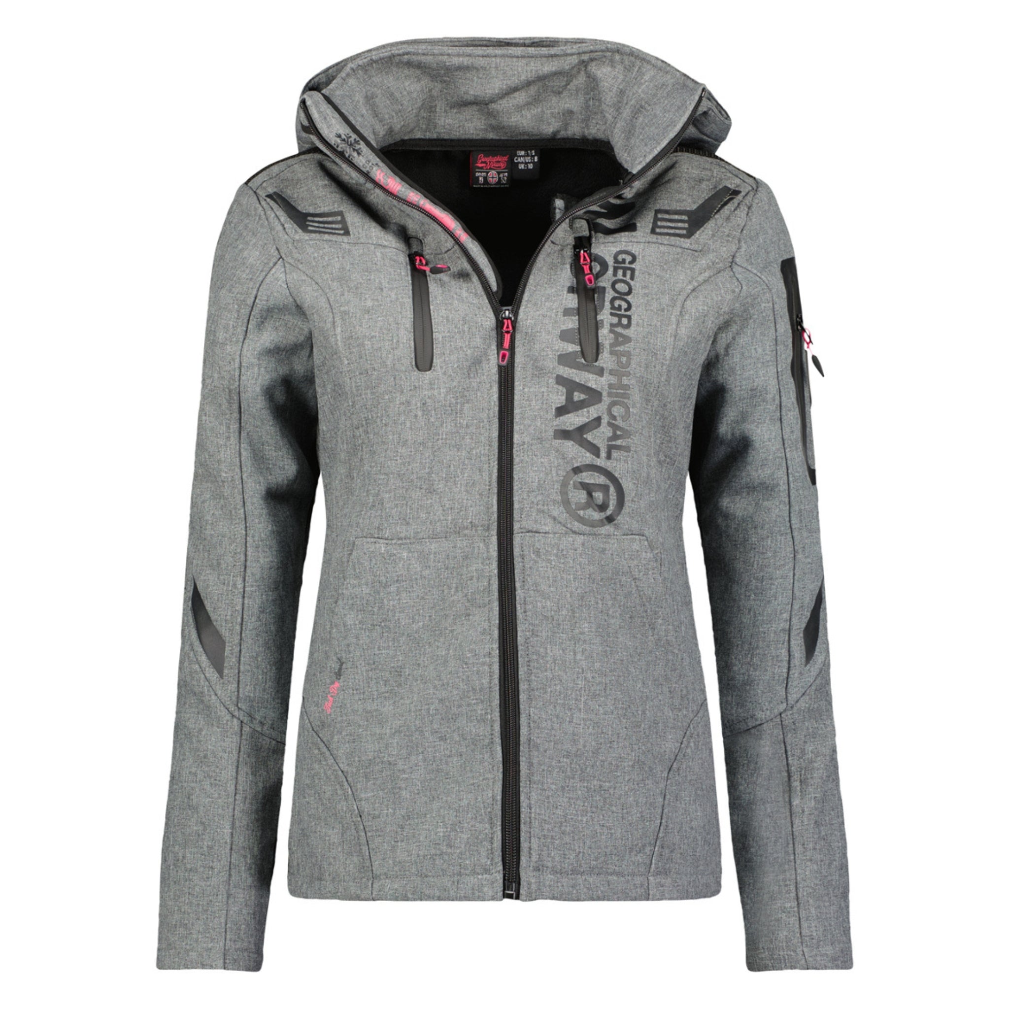 Echa un vistazo al softshell Truffle para mujer de Geographical Norway. Con capucha desmontable, bolsillos con cremallera y modernos estampados para un estilo versátil.