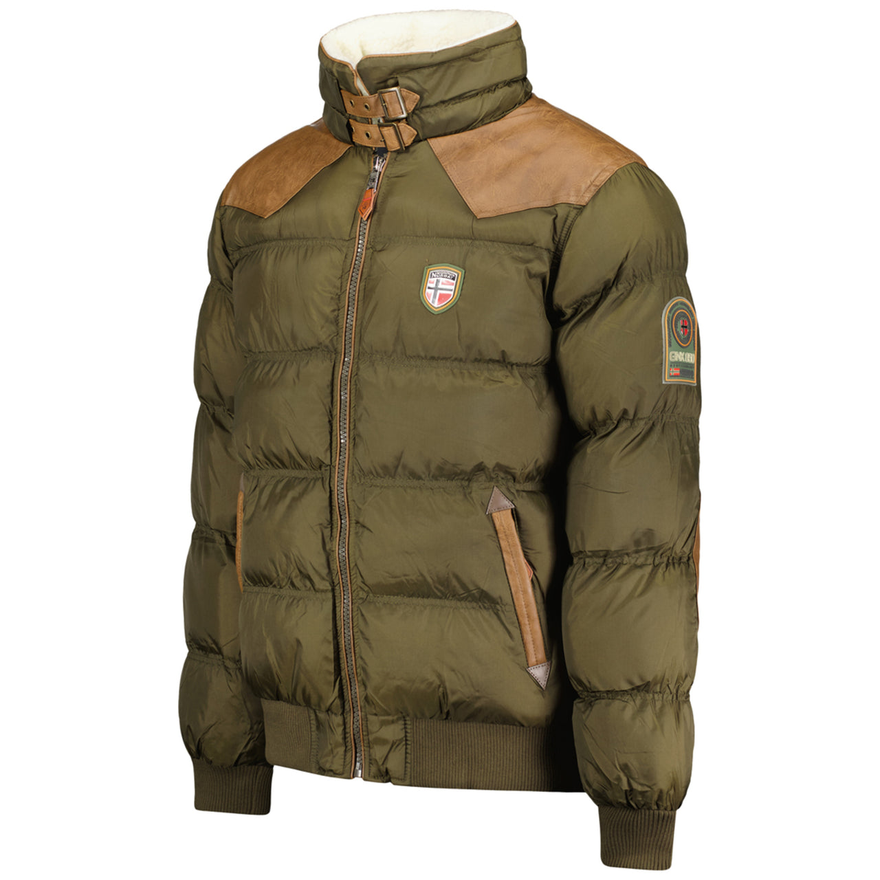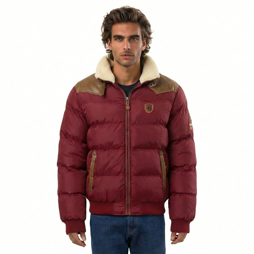 Scoprite la giacca imbottita trapuntata giacca imbottita "Abramovitch" di Geographical Norway, che unisce comfort e stile per le vostre avventure all'aperto. La vestibilità slim valorizza la vostra silhouette, mentre gli inserti in ecopelle su spalle e gomiti aggiungono un tocco di raffinatezza. Le tasche laterali con chiusura a bottoni e il colletto fisso in sherpa aggiungono un tocco caldo e pratico a questa giacca imbottita dal design accattivante.