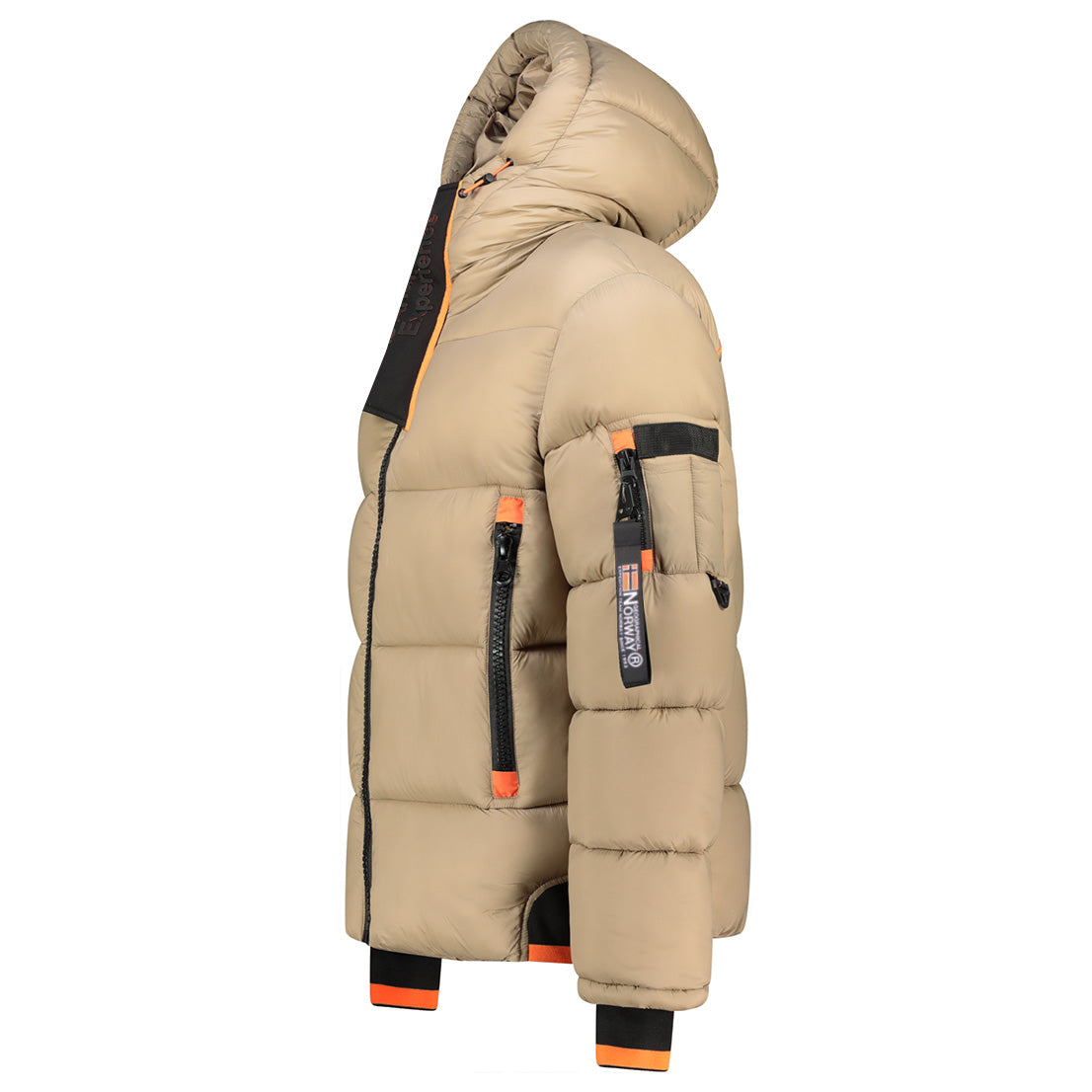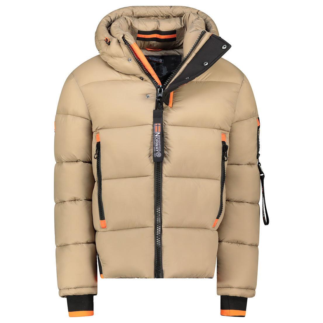 Scoprite la giacca trapuntata CALIX di Geographical Norway per uomo. Presenta dettagli di marca e un cappuccio staccabile. Ci sono diverse tasche sul davanti e stemmi in PVC sul fondo del capo, sulla parte superiore del cappuccio, sulla manica e sul retro del colletto. Sul petto è presente anche un ricamo per un look distintivo e moderno.