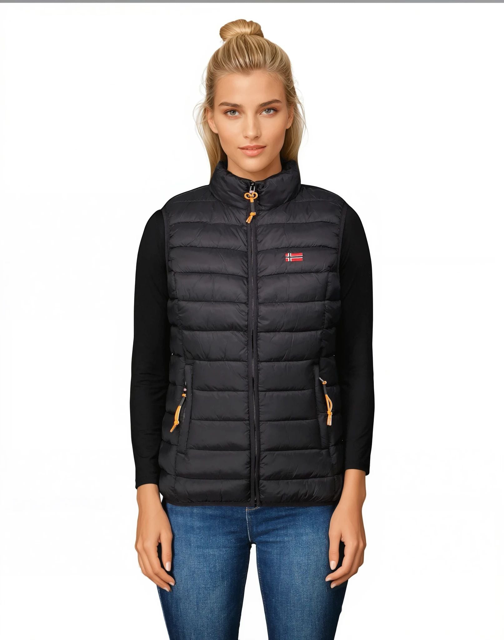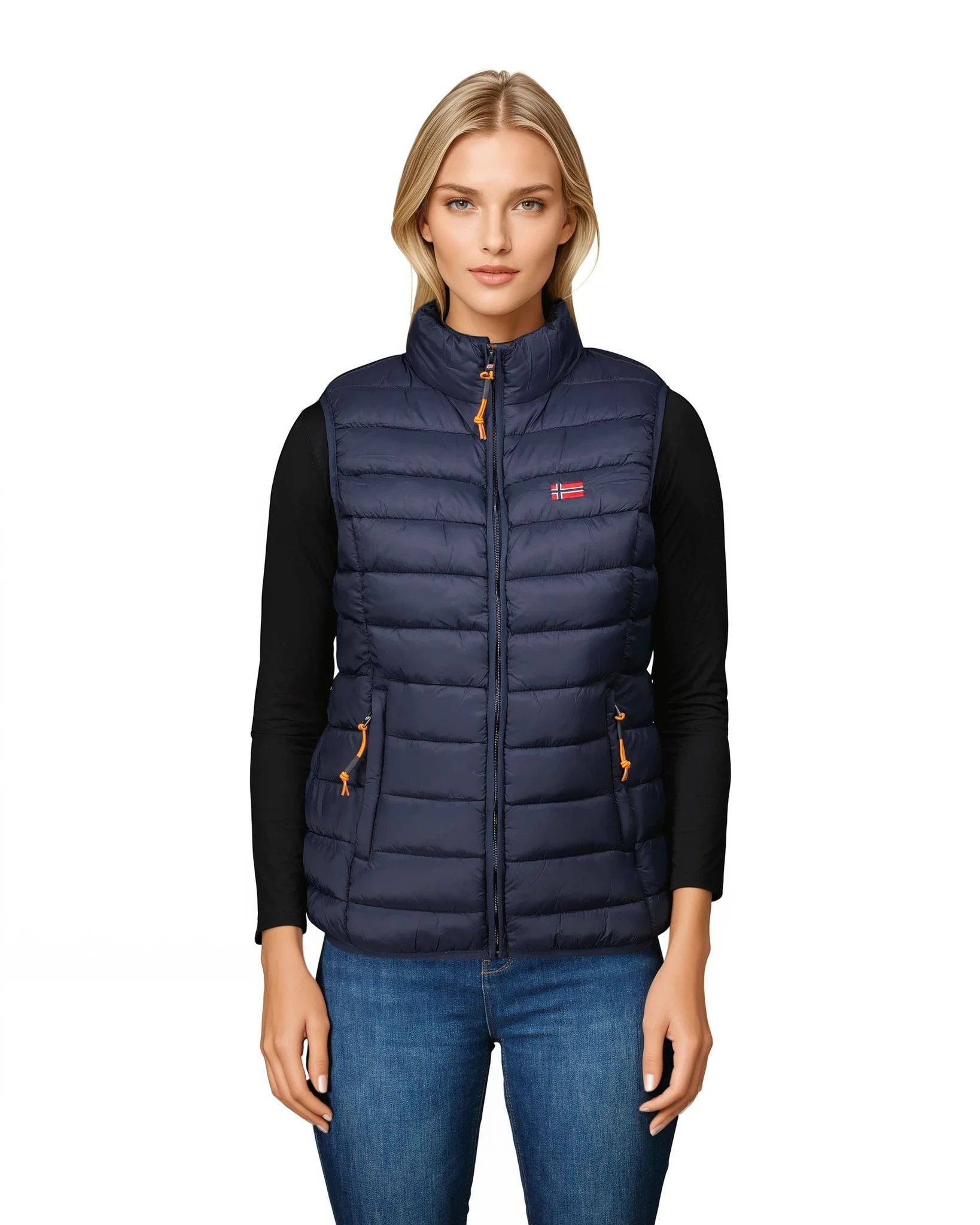 Il gilet senza maniche da donna VATIKOLOR di Geographical Norway è l'alleato perfetto per le vostre attività all'aperto. Realizzato in 100% poliestere, è leggero, resistente e offre un buon isolamento termico. Questo gilet è dotato di una pratica cerniera centrale per indossarlo facilmente e di tasche laterali per riporre gli oggetti essenziali. La bandiera sul davanti aggiunge un tocco distintivo a questo capo funzionale ed elegante. Perfetto per le giornate più fresche, si abbina a tutto ciò che indossate e vi lascia ampia libertà di movimento.