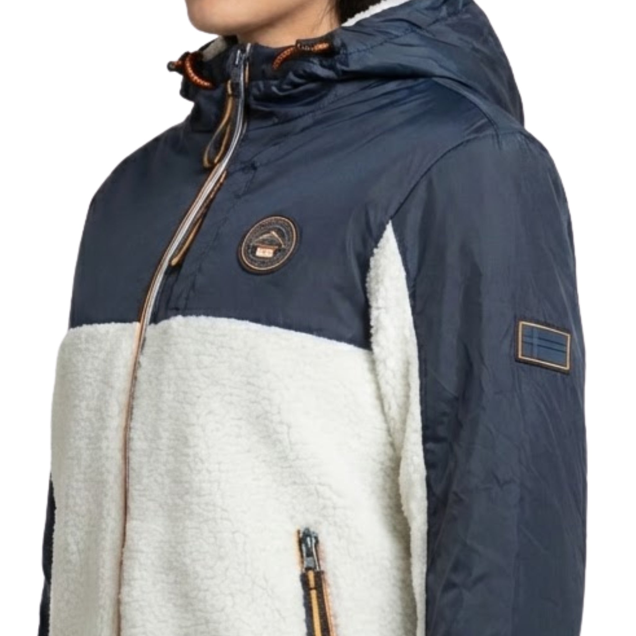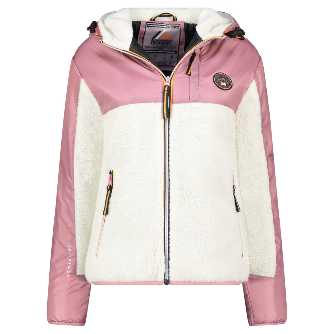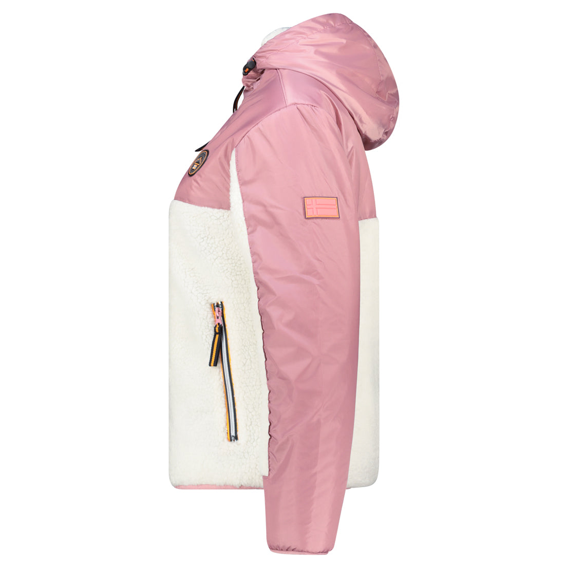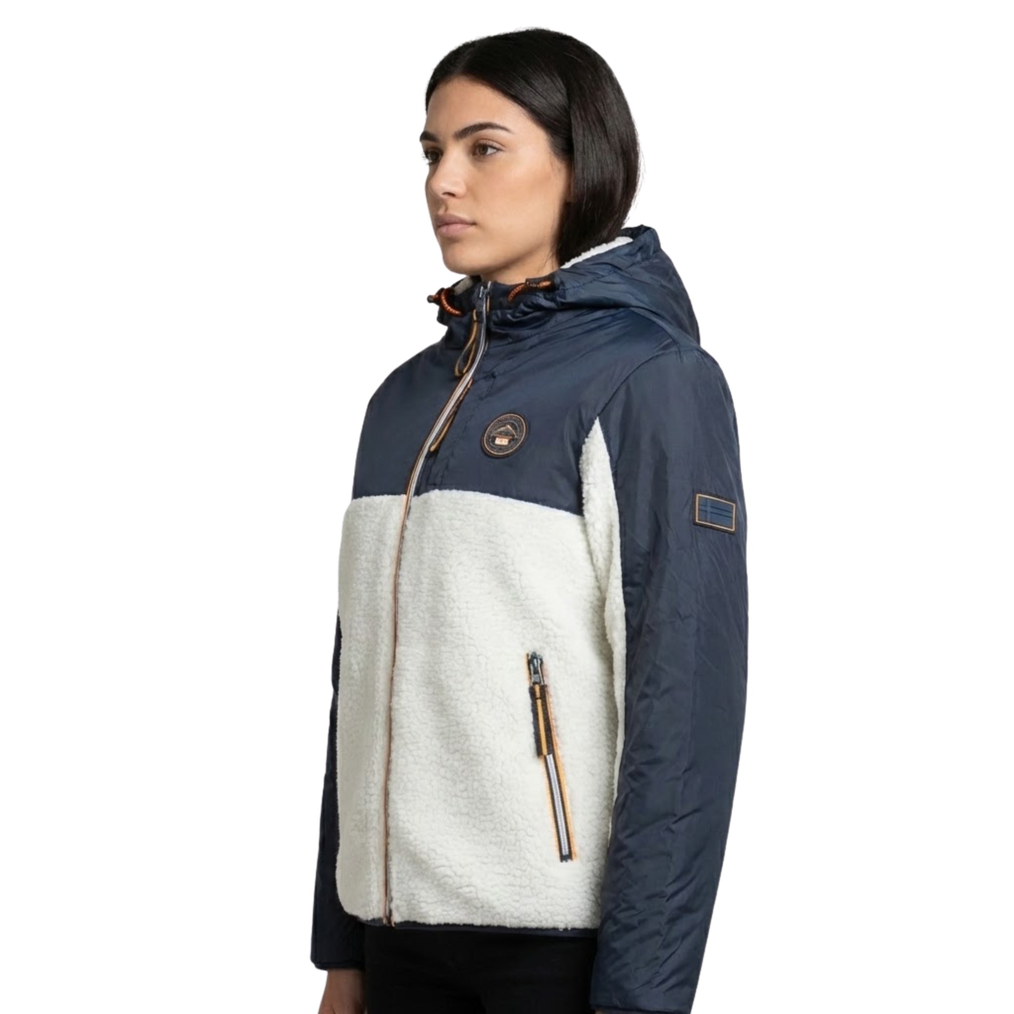 Il pile Ulyssim da donna di Geographical Norway è un modello moderno e confortevole, perfetto per la mezza stagione e per le giornate più fresche. Realizzato in un bi-materiale bicolore, vanta un design di tendenza. Presenta un cappuccio protettivo, pratiche tasche laterali e una funzionale tasca frontale. I distintivi, tra cui una bandiera sulla manica, sottolineano la sua identità unica.