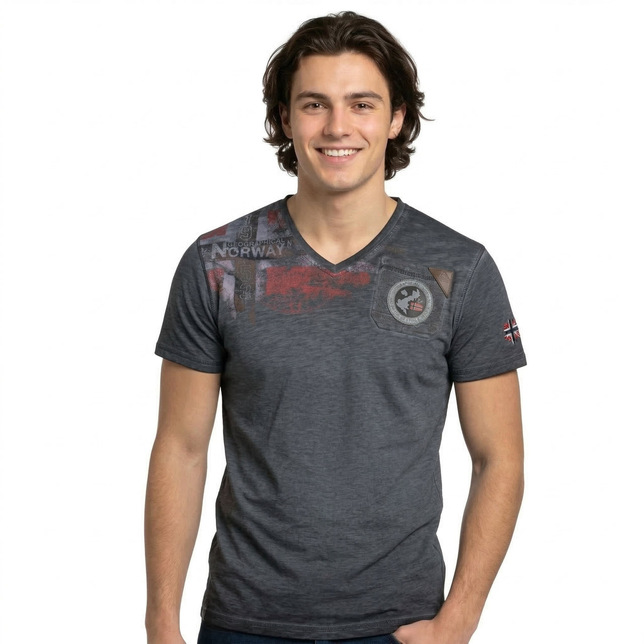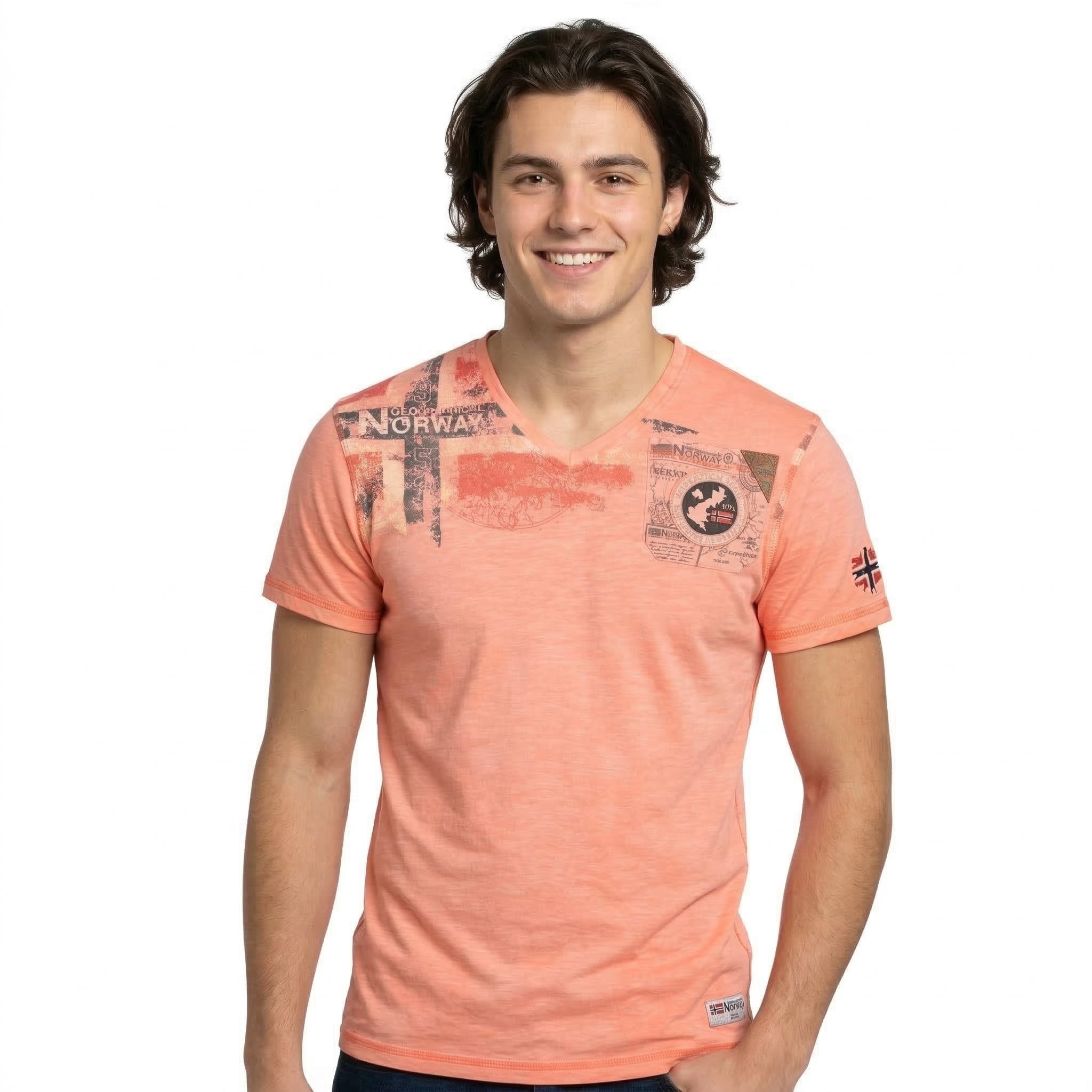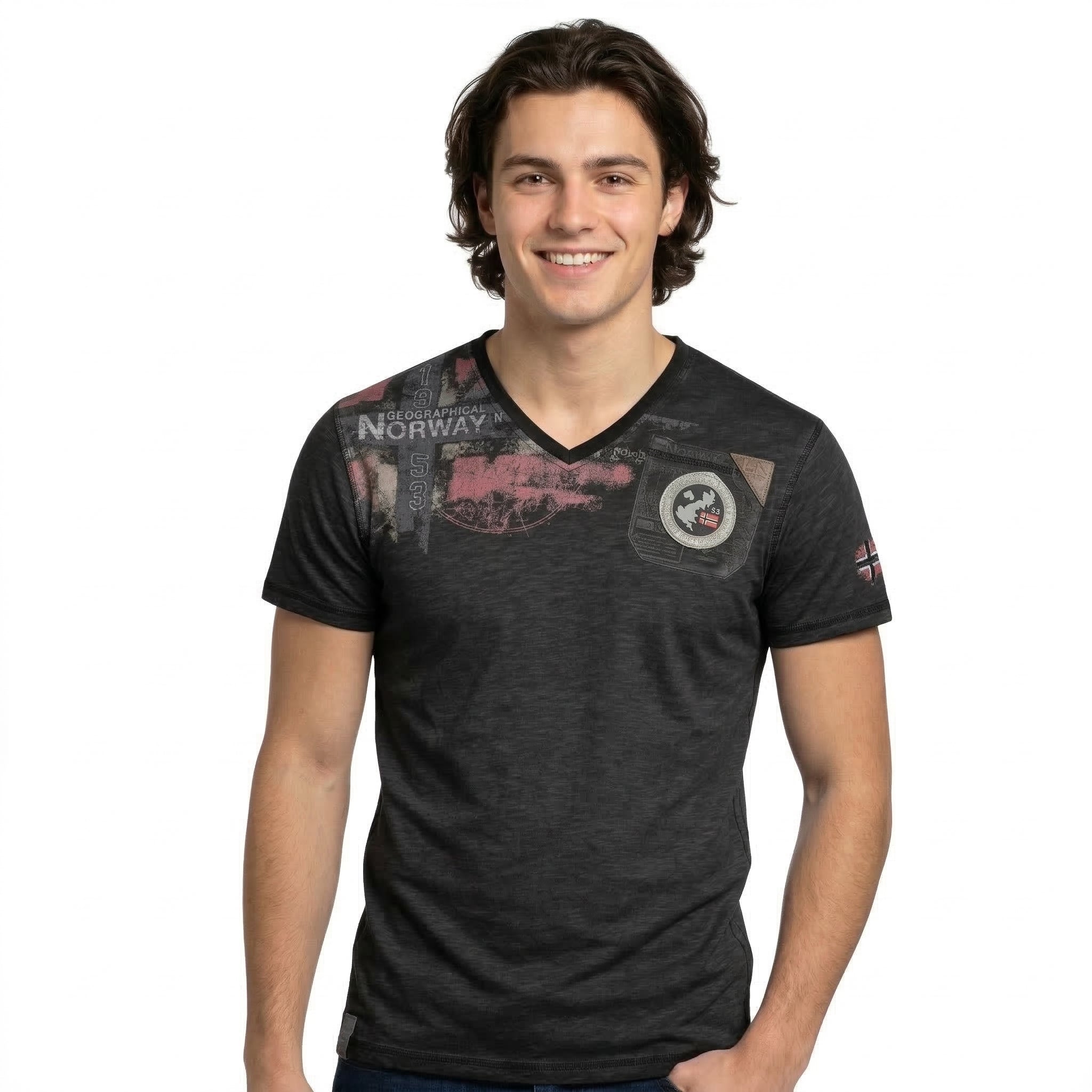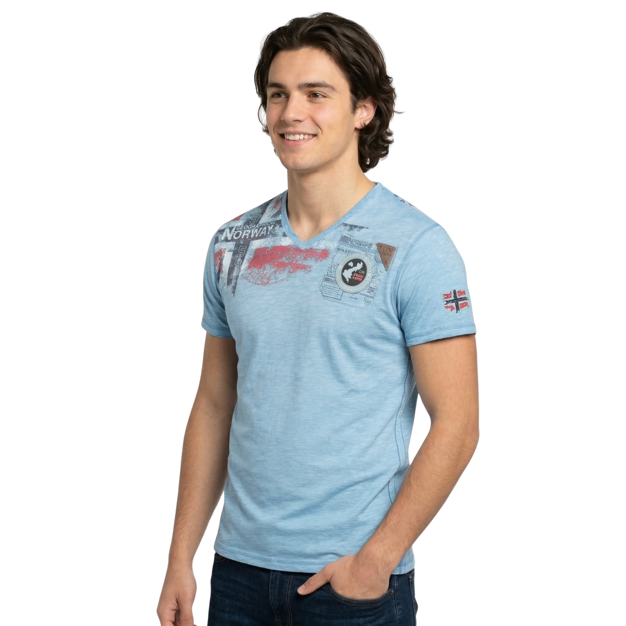 La T-shirt "Jamo Men" di Geographical Norway un modello a maniche corte dallo stile deciso e moderno. Dotata di un classico collo rotondo, offre un comfort ottimale grazie al suo tessuto in cotone. La stampa ad alta densità sul taschino e sulla manica conferisce rilievo e un tocco grafico distintivo. Leggera e piacevole da indossare, è perfetta per un look casual dinamico.