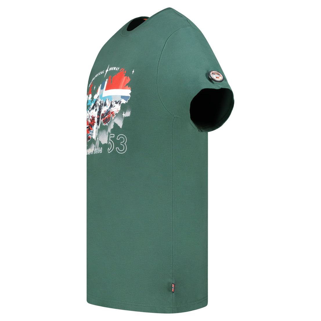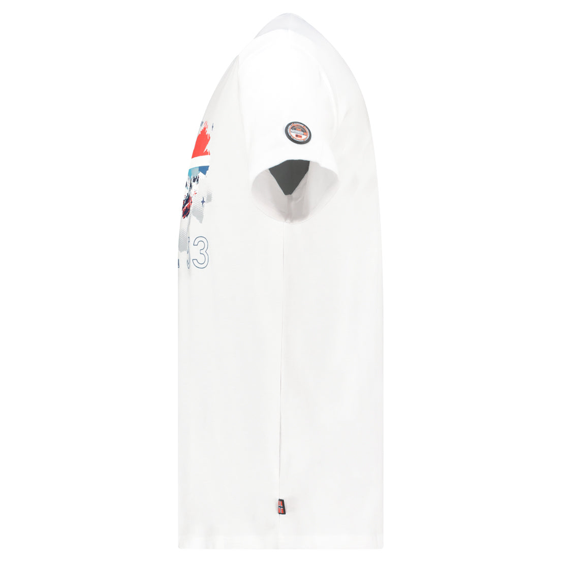 La T-shirt "J-Stone Men" di Geographical Norway un modello a maniche corte dallo stile moderno e deciso. Dotata di un classico collo rotondo, offre un comfort ottimale grazie al suo tessuto in cotone. La stampa e la bandiera sul davanti aggiungono un tocco grafico distintivo, mentre la toppa sulla manica ne rafforza l'identità sportiva. Leggera e comoda da indossare, è ideale per un look casual e dinamico da indossare tutti i giorni.