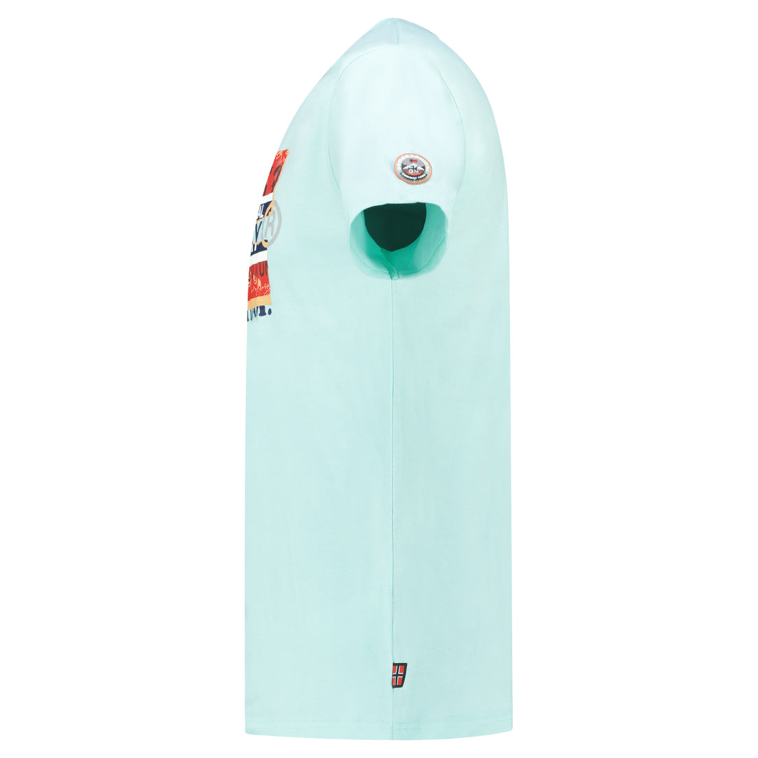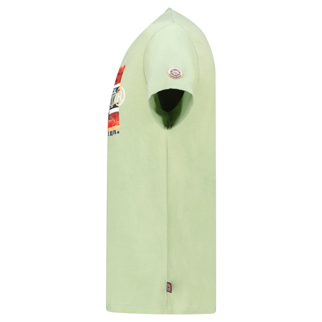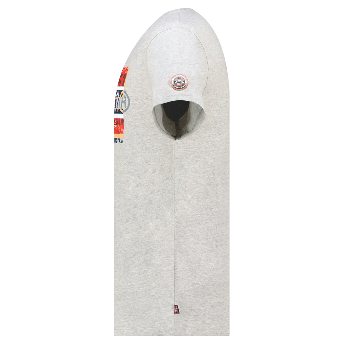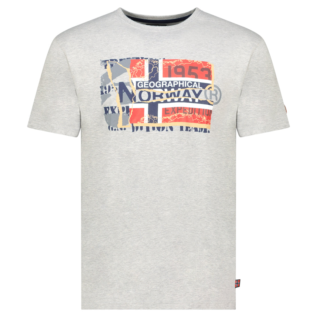 La T-shirt "Jaytorn Men" di Geographical Norway un modello a maniche corte dallo stile moderno e deciso. Dotata di un classico collo rotondo, offre un comfort ottimale grazie al suo tessuto 100% cotone. La stampa e la bandiera sul davanti aggiungono un tocco grafico distintivo, mentre il badge sulla manica ne rafforza l'identità sportiva. Leggera e comoda da indossare, è perfetta per un look casual da tutti i giorni.