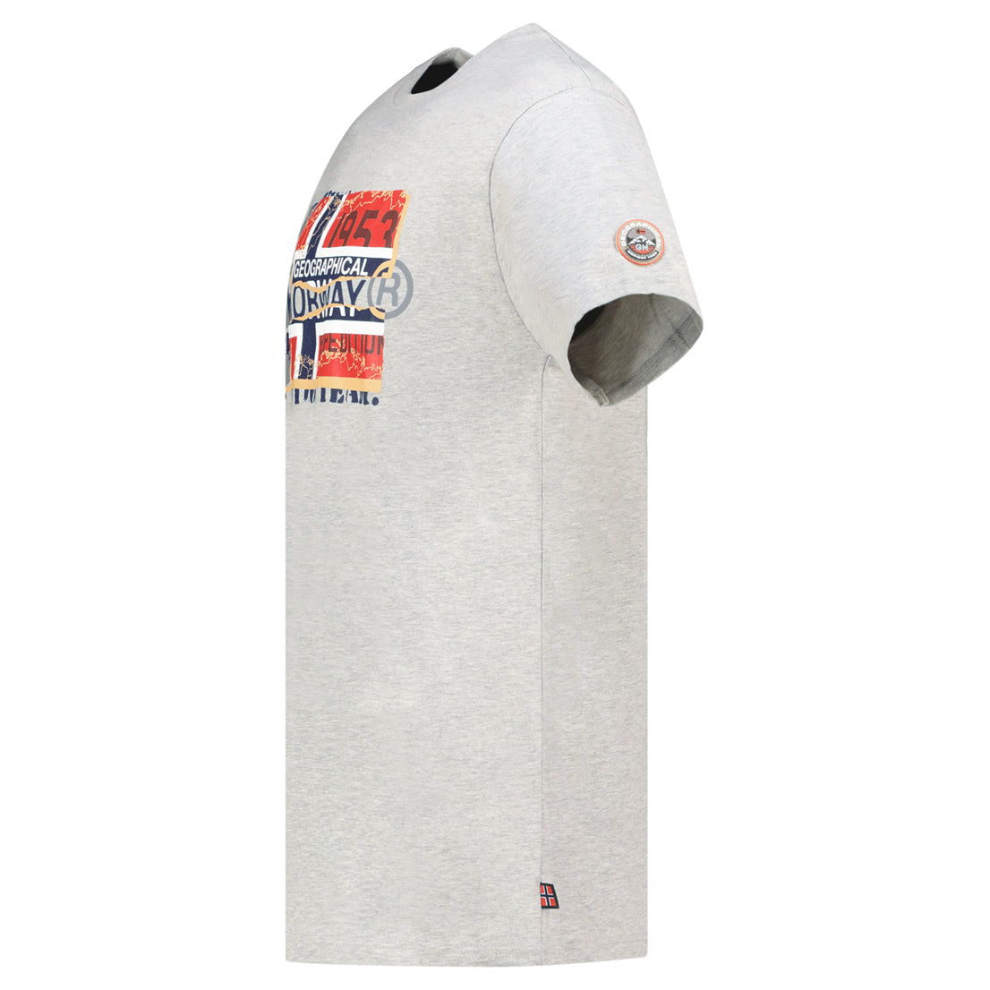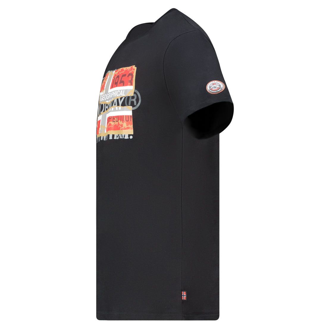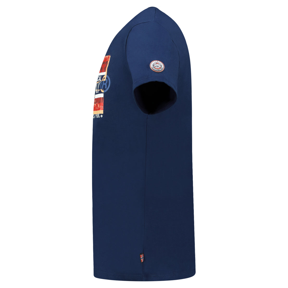 La T-shirt "Jaytorn Men" di Geographical Norway un modello a maniche corte dallo stile moderno e deciso. Dotata di un classico collo rotondo, offre un comfort ottimale grazie al suo tessuto 100% cotone. La stampa e la bandiera sul davanti aggiungono un tocco grafico distintivo, mentre il badge sulla manica ne rafforza l'identità sportiva. Leggera e comoda da indossare, è perfetta per un look casual da tutti i giorni.