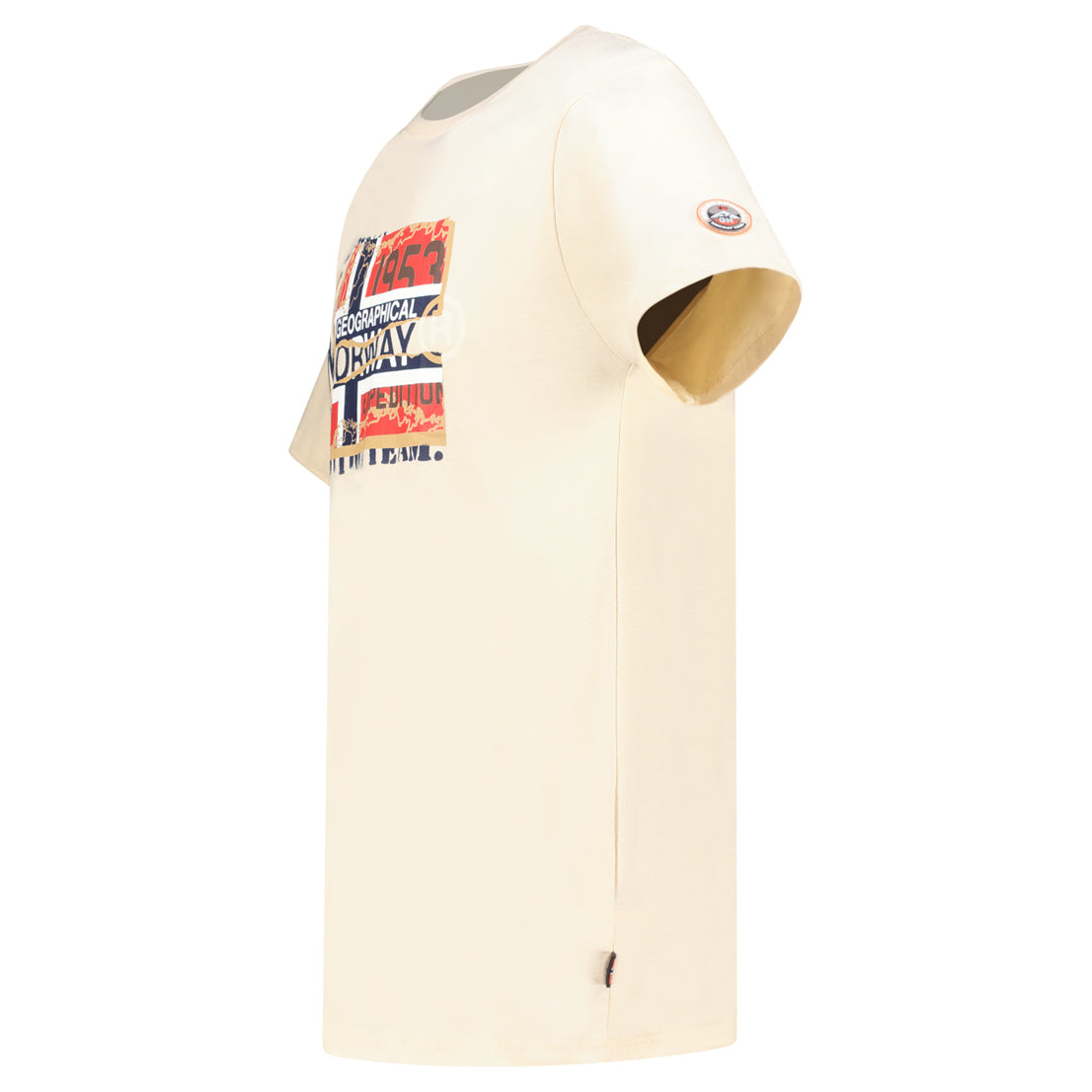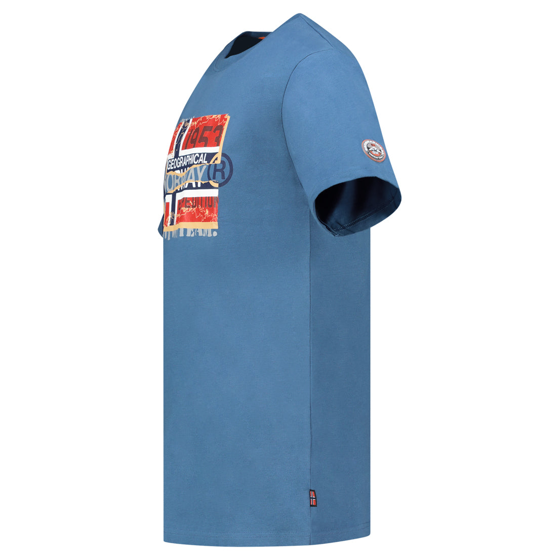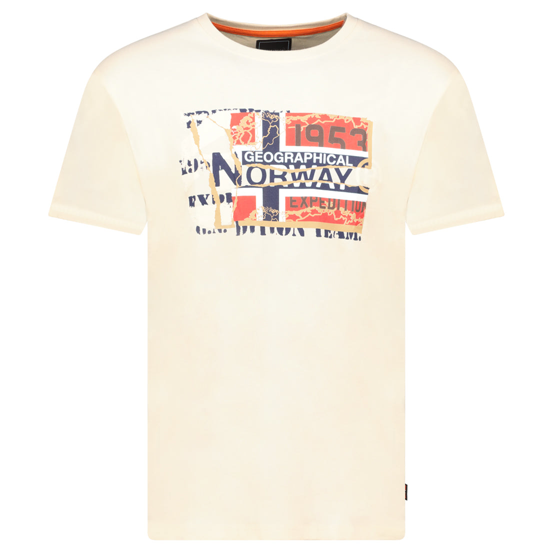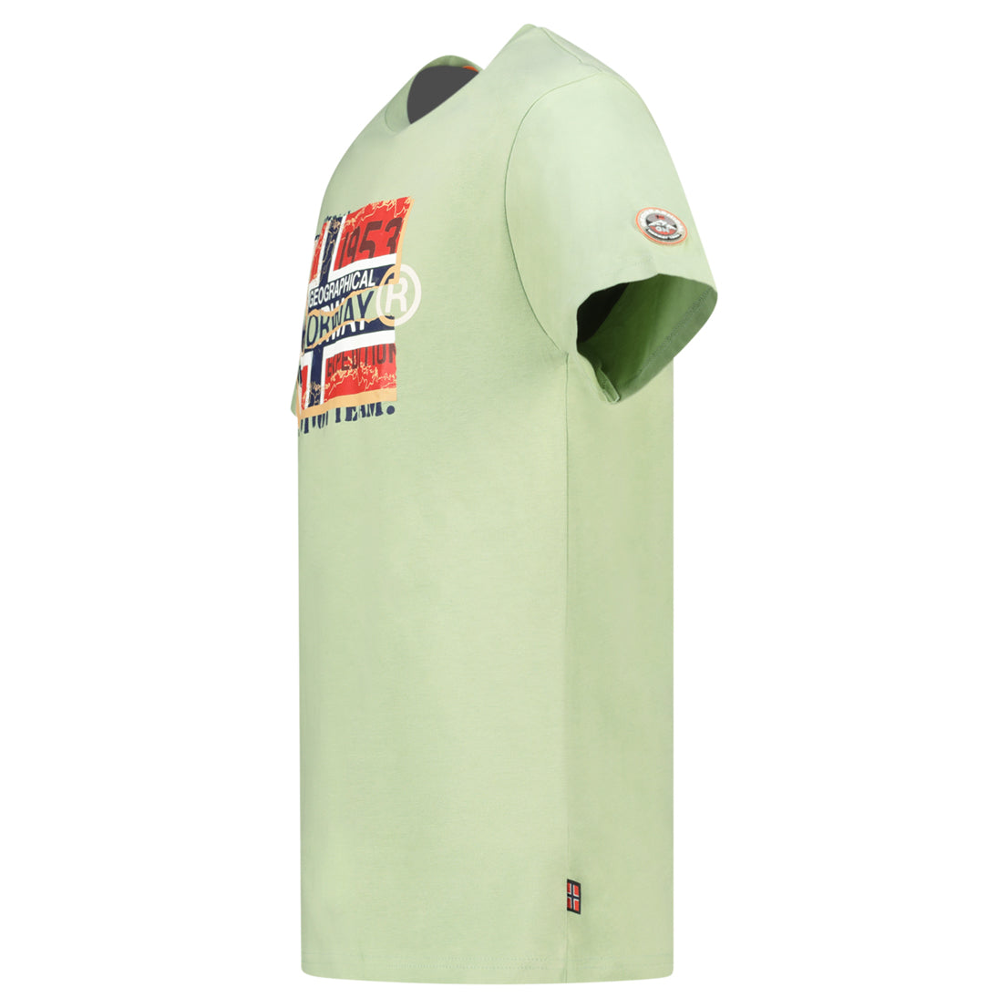 La T-shirt "Jaytorn Men" di Geographical Norway un modello a maniche corte dallo stile moderno e deciso. Dotata di un classico collo rotondo, offre un comfort ottimale grazie al suo tessuto 100% cotone. La stampa e la bandiera sul davanti aggiungono un tocco grafico distintivo, mentre il badge sulla manica ne rafforza l'identità sportiva. Leggera e comoda da indossare, è perfetta per un look casual da tutti i giorni.