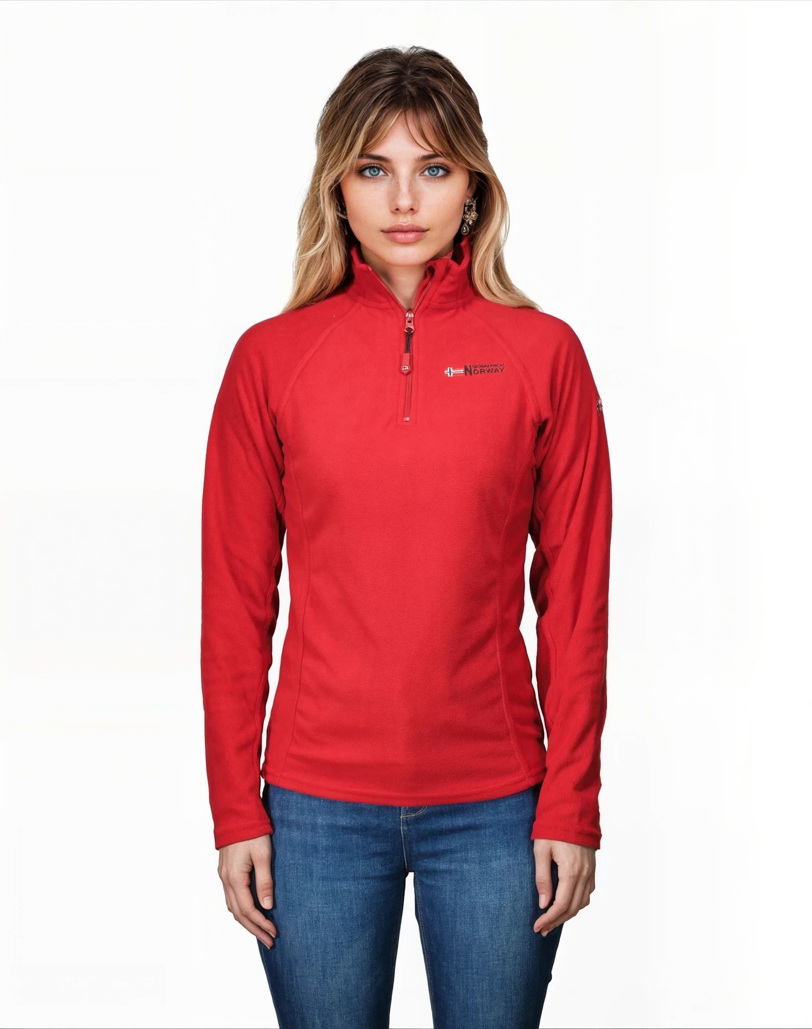 Scoprite il micropile da donna "Tug" di Geographical Norway. Questo elegante pile presenta maniche raglan, ricami sul petto, un'apertura con zip sul centro della parte anteriore e viene venduto piegato e avvolto in una carta decorativa.
