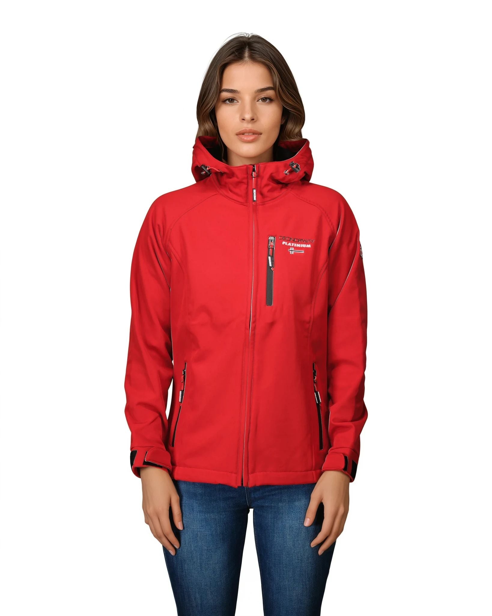 Scoprite la giacca "Tacer" da donna di Geographical Norway, un softshell versatile con cappuccio regolabile e pratiche tasche frontali e laterali. La stampa audace e la bandiera frontale aggiungono un tocco di stile distintivo a questo capo funzionale. Ideale per tutte le attività all'aperto, la giacca "Tacer" combina comfort, protezione e stile per accompagnarvi nelle vostre avventure con stile.