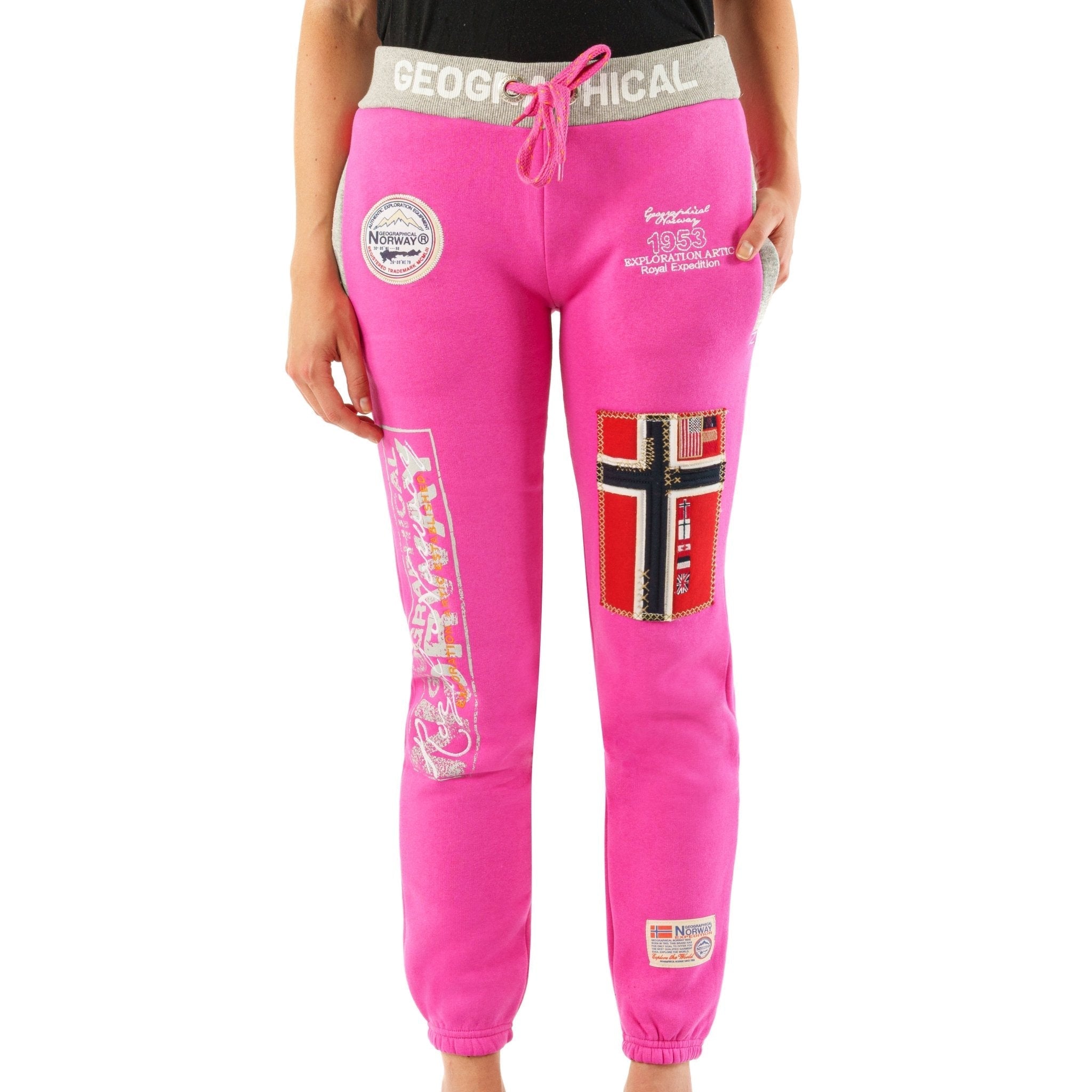 Scoprite i pantaloni da jogging "Myer" di Geographical Norway per le donne. Questi pantaloni offrono un comfort ottimale grazie all'elastico in vita. Presentano inoltre una serie di stemmi, ricami e stampe sulle gambe, in un caratteristico tema norvegese.