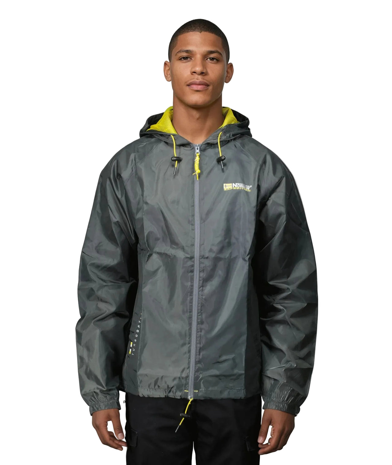 Scoprite la giacca BOAT da uomo di Geographical Norway , un capo funzionale e alla moda. La fascia antivento, il cappuccio fisso con fodera in rete, la stampa sul petto e sulle maniche e le due tasche frontali aggiungono un tocco di stile e praticità a questa giacca.