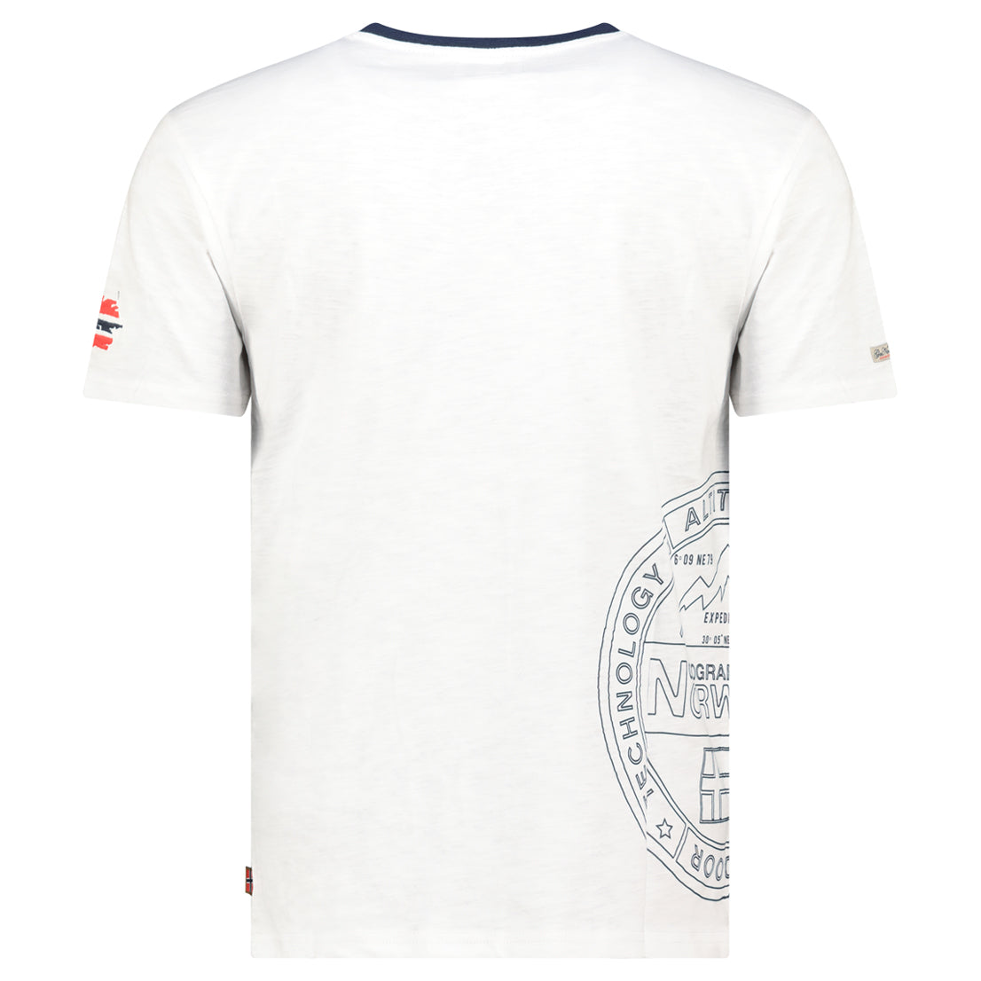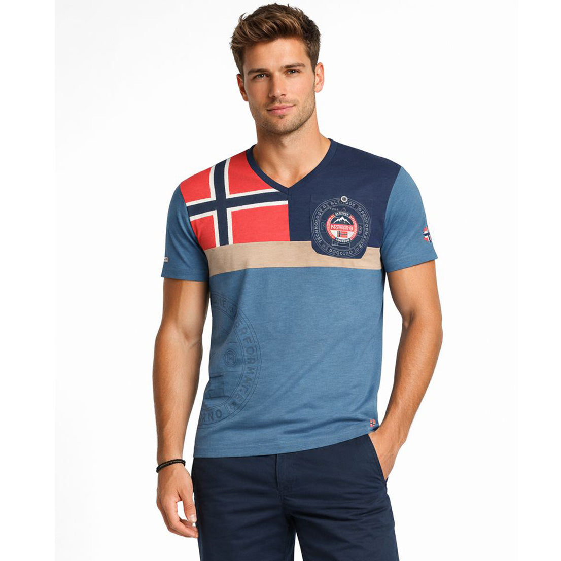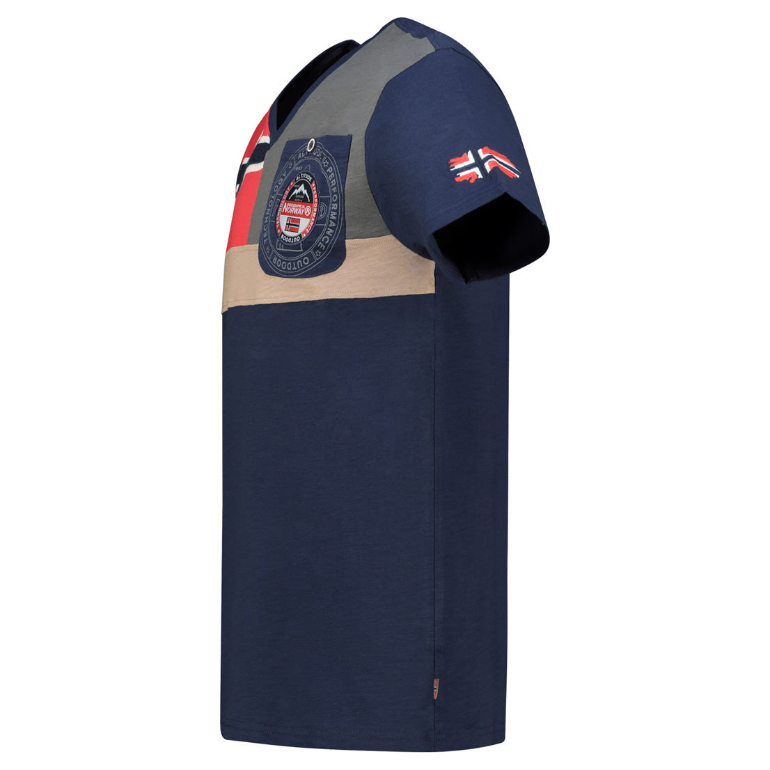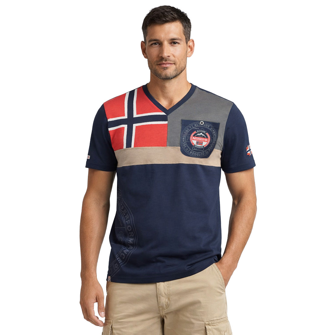 La T-shirt "J-Flag Men" di Geographical Norway un modello con collo a V moderno ed elegante, ideale per un look casual e curato. Leggera e confortevole, è realizzata in cotone per garantire un piacevole comfort quotidiano. La tasca sul petto aggiunge un tocco pratico e distintivo, conferendo carattere a questo capo essenziale del guardaroba maschile.