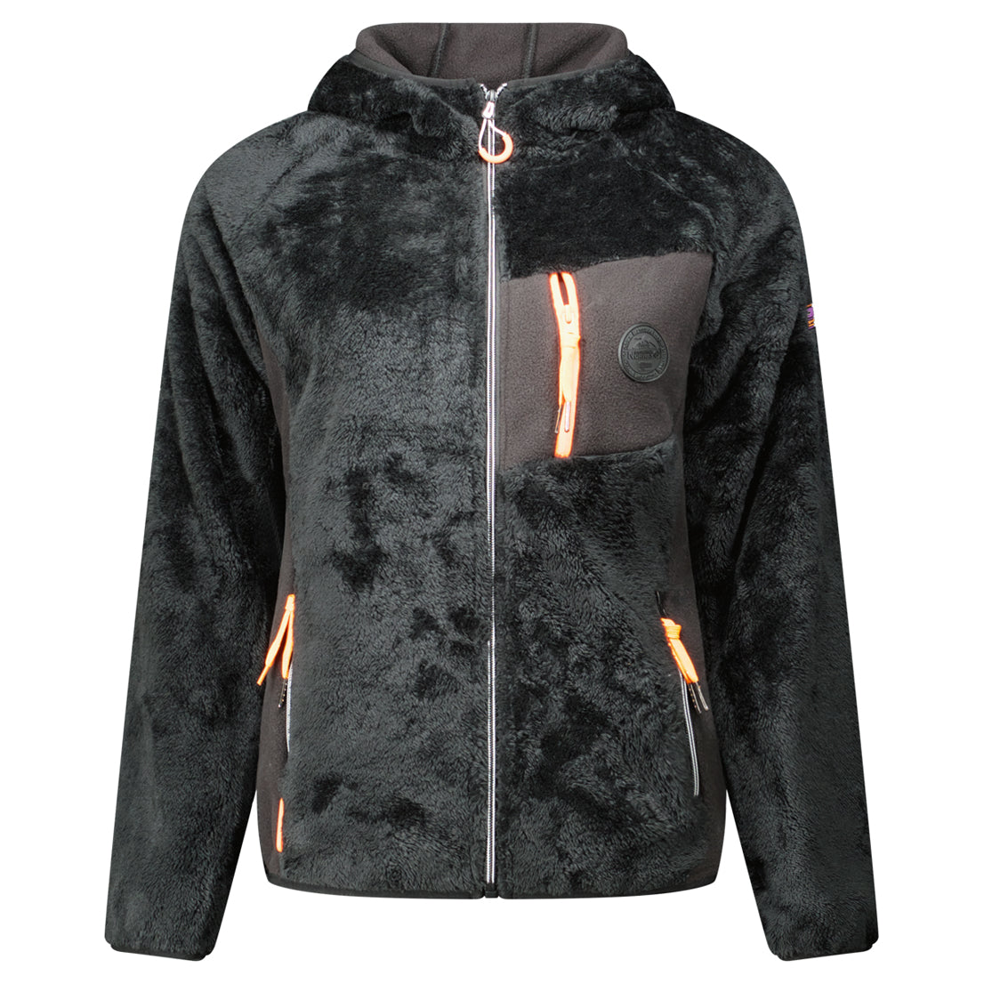 Il pile Geographical Norway Toscana da donna è progettato per offrire calore e morbidezza durante tutta la stagione invernale. Il cappuccio fisso protegge efficacemente dal freddo, mentre le tasche con zip sui fianchi e sul petto assicurano praticità e comfort per l'uso quotidiano. Il tessuto morbidissimo, unito a dettagli moderni come gli stemmi sul petto e sulla manica, lo rendono un capo elegante e funzionale.