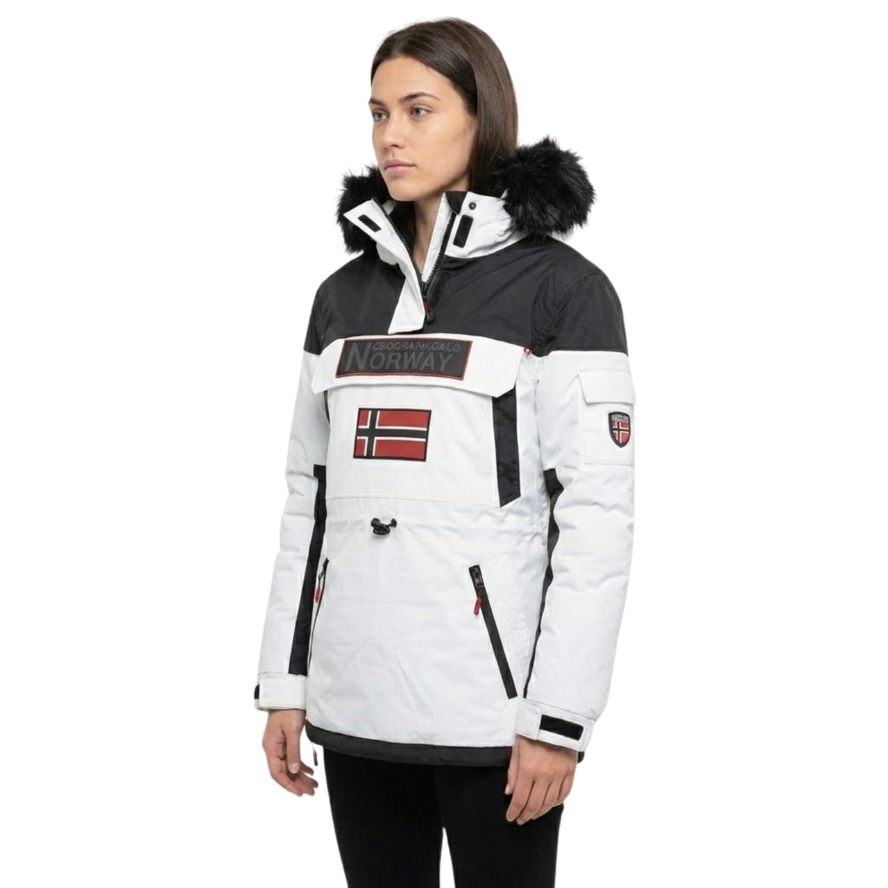 Découvrez le passe-tête "BRUNA" pour femme de Geographical Norway, une pièce polyvalente et tendance. Avec une capuche, des liens de resserrage à la taille, une poche sur la poitrine avec inscriptions, et deux poches zippées sur les côtés, ce passe-tête offre un style moderne et fonctionnel.