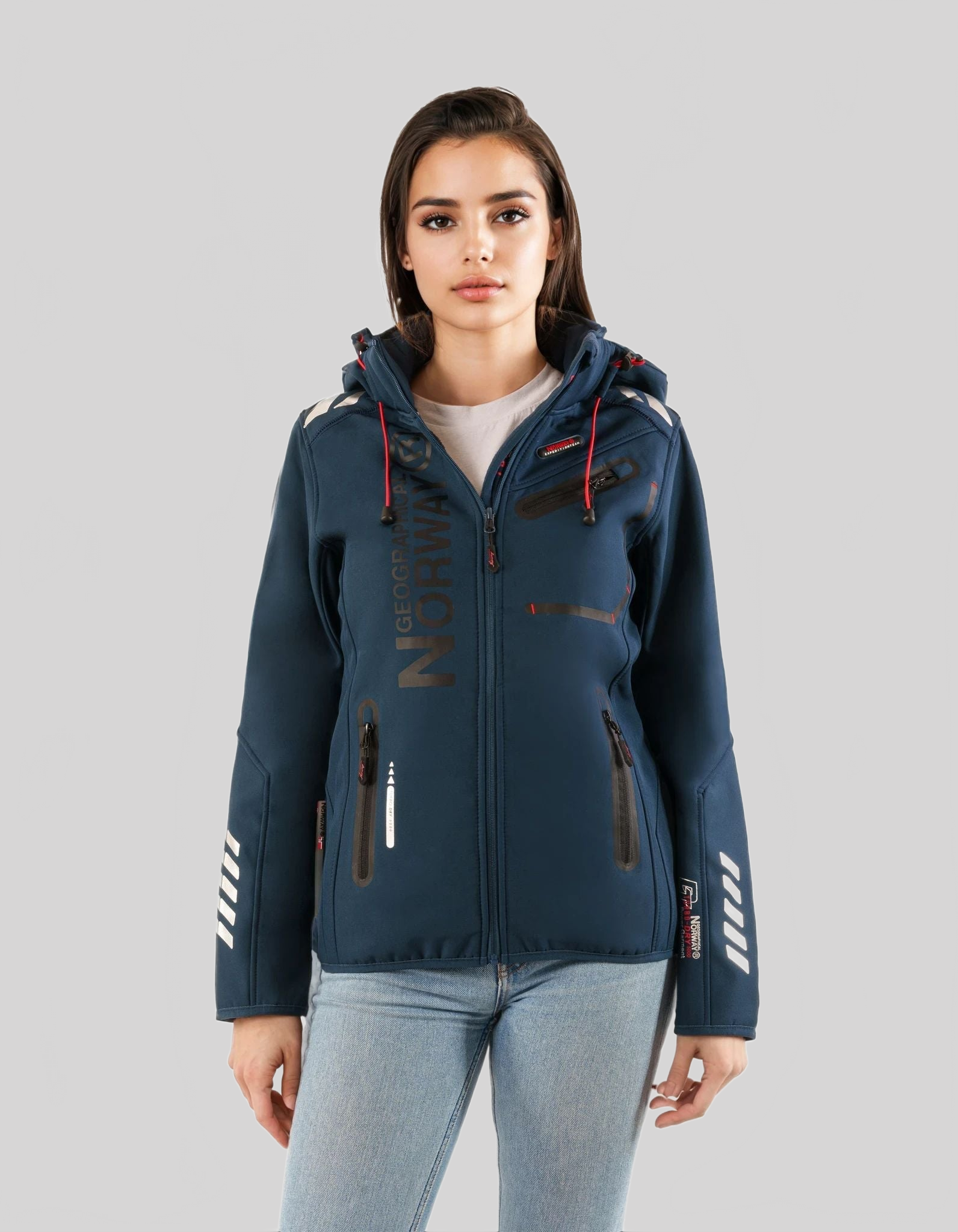 Découvrez la softshell "Reine" de Geographical Norway, spécialement conçue pour les femmes. Cette veste élégante et fonctionnelle est équipée d'une capuche détachable et ajustable, de deux poches zippées à l'avant, d'une poche diagonale sur la poitrine, de plusieurs badges en PVC et d'impressions originales. De plus, elle présente deux bandes imprimées à haute densité sur le dos pour un style moderne.