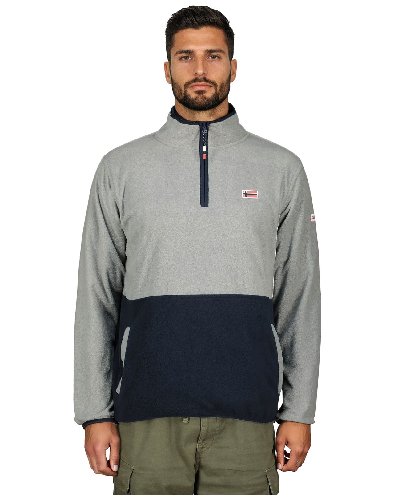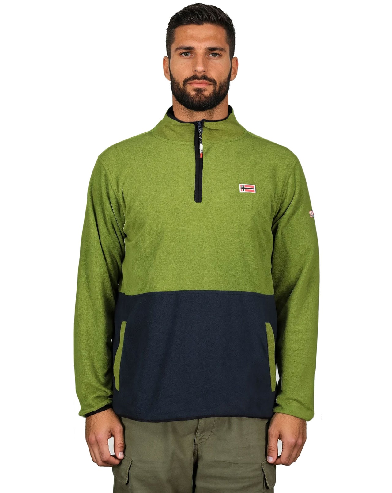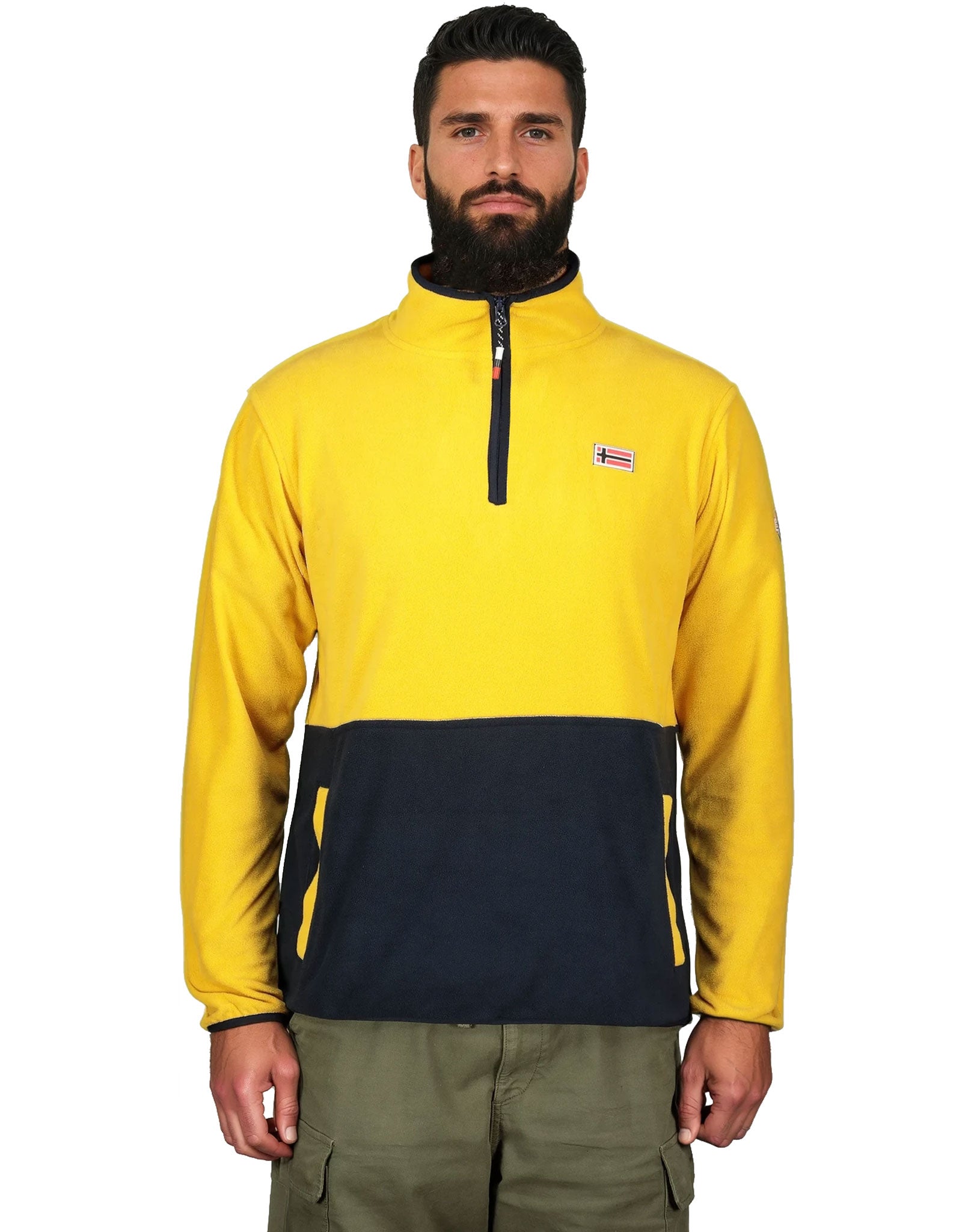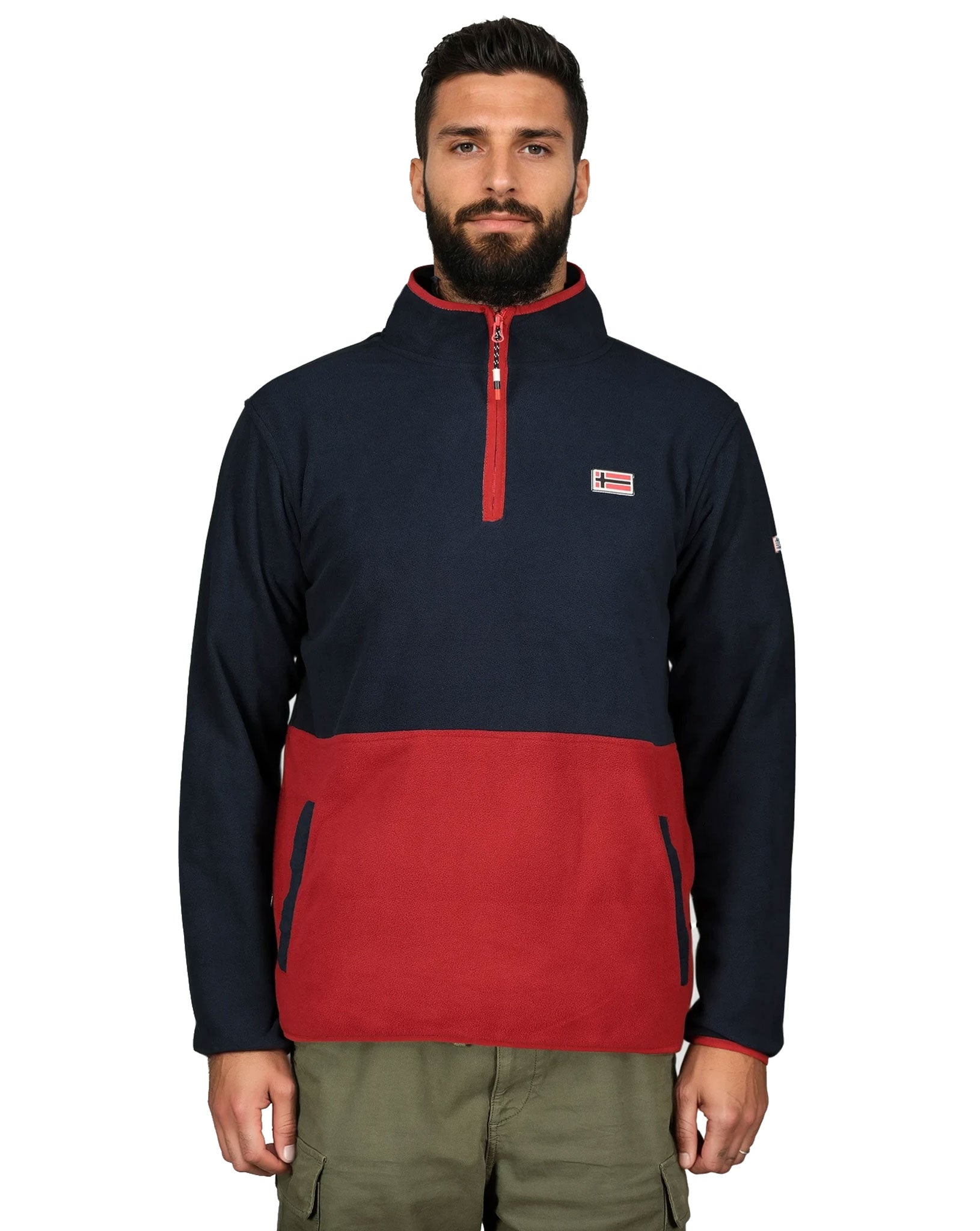 La polaire bicolore TOUKI pour homme demi‑zip associe confort et chaleur avec son col montant. Elle est dotée de poches latérales et de badges sur la poitrine et les manches pour un style dynamique.