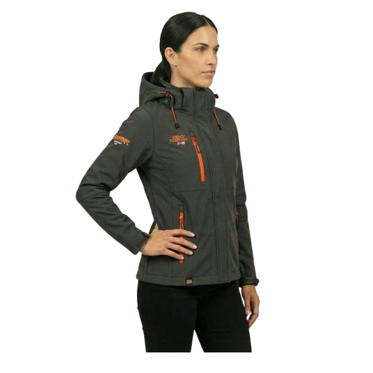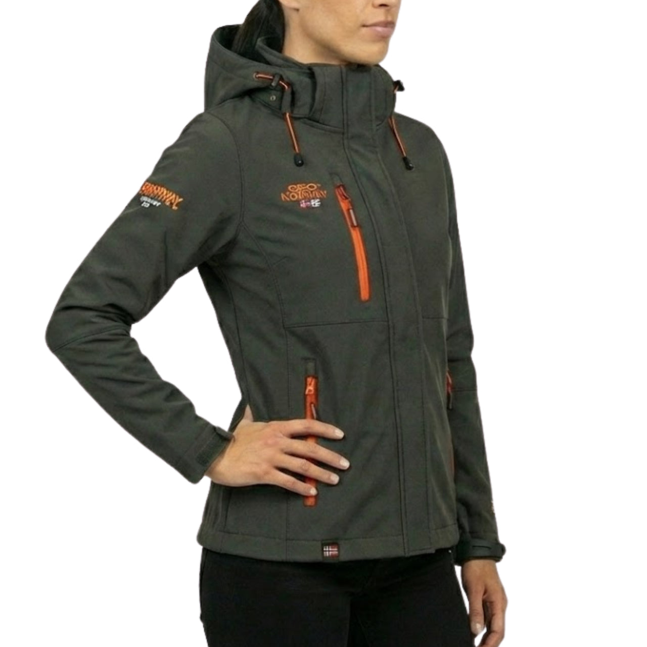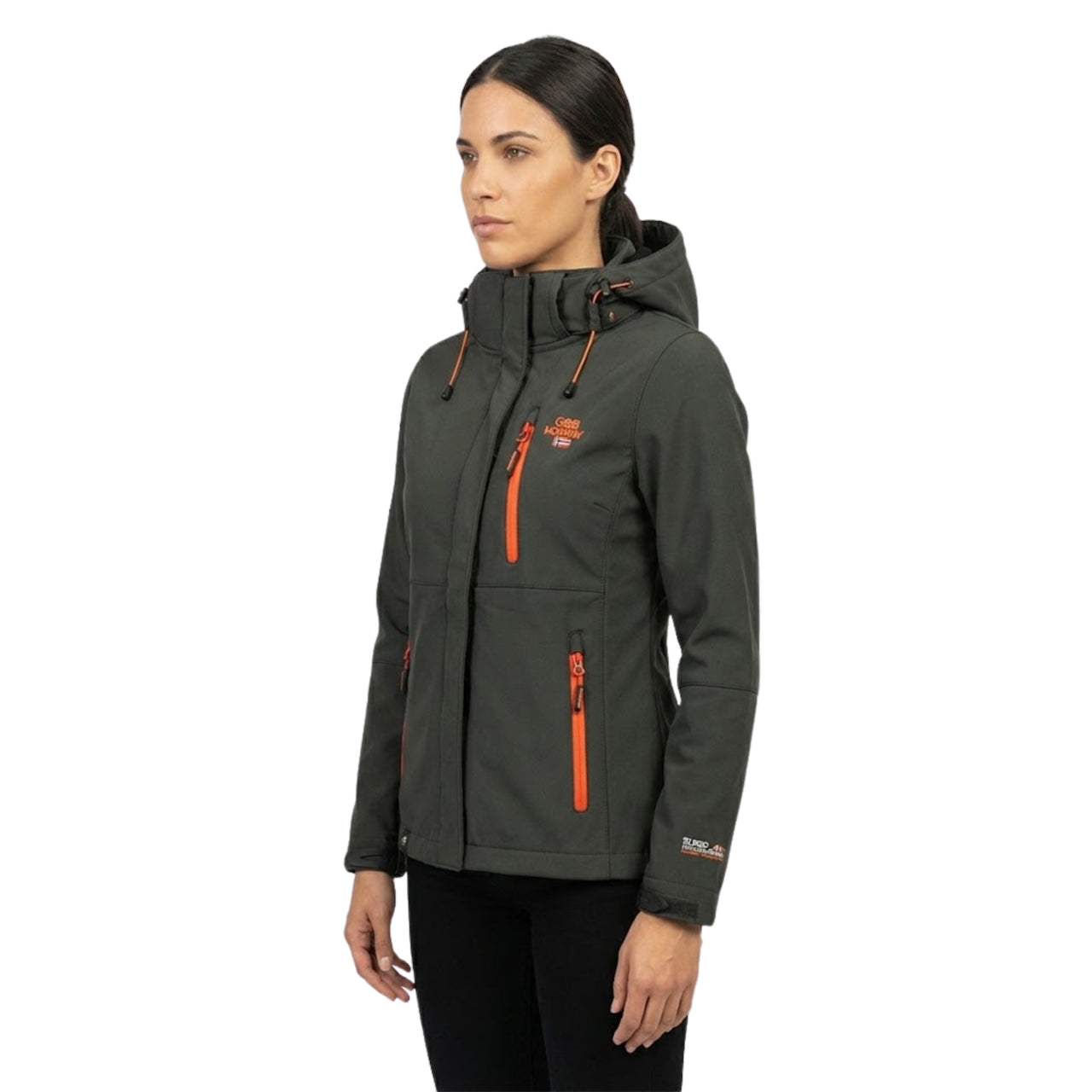 Découvrez la softshell "Touna" de Geographical Norway pour femmes. Cette veste polyvalente est équipée d'une capuche amovible et ajustable, de 3 poches zippées devant, d'un bas ajustable, de broderies à la poitrine et sur la manche, ainsi que de 2 poches zippées à l'intérieur de la softshell.