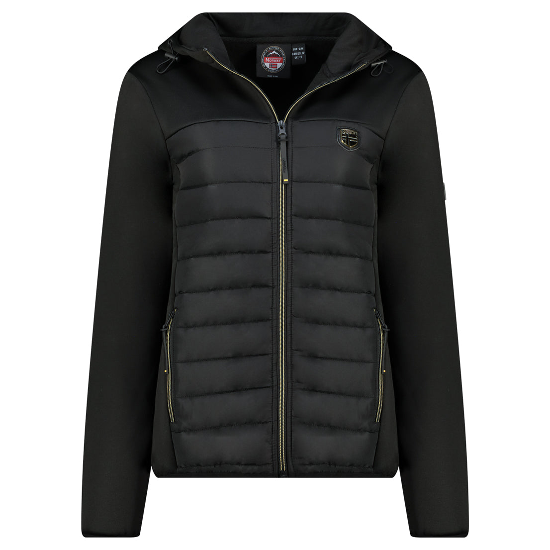 Ce softshell TYPHLOSION pour femme est confortable et bi‑matière, avec capuche fixe et col montant. Il possède des liens de resserrage pour ajuster la capuche, une fermeture zippée injectée et des poches zippées pour emporter l’essentiel. Parfait pour les activités en extérieur.