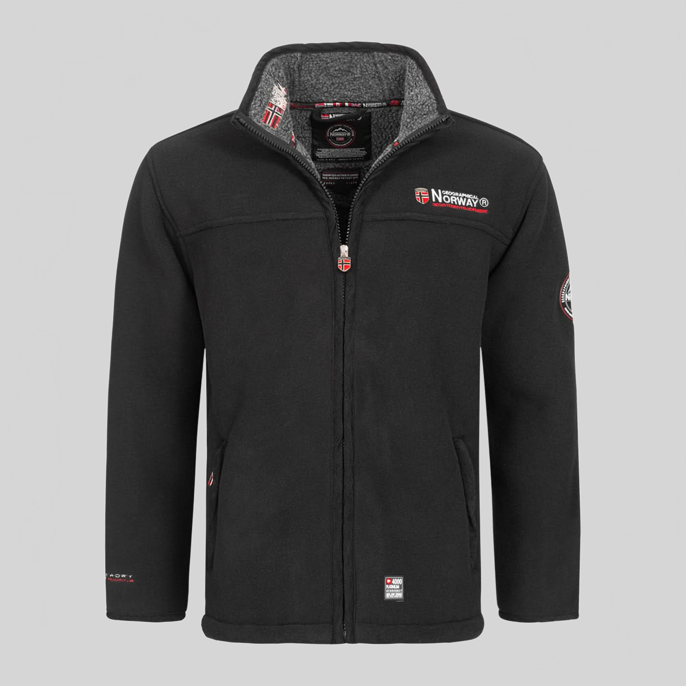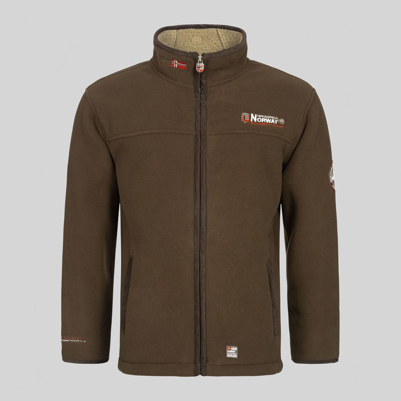 Découvrez la veste polaire "Ubolt" de Geographical Norway pour hommes. Cette veste en sherpa est équipée de broderies sur le col, d'un badge métallique sur la poitrine, d'un badge brodé sur la manche et de badges en PVC au bas de la polaire et au dos du col. Elle comporte également 2 poches zippées sur les côtés.