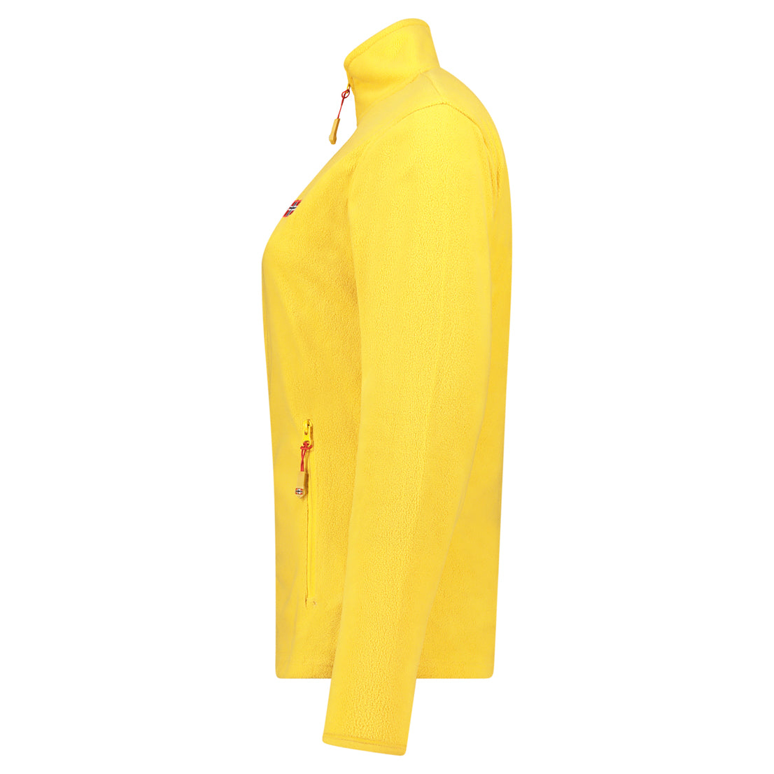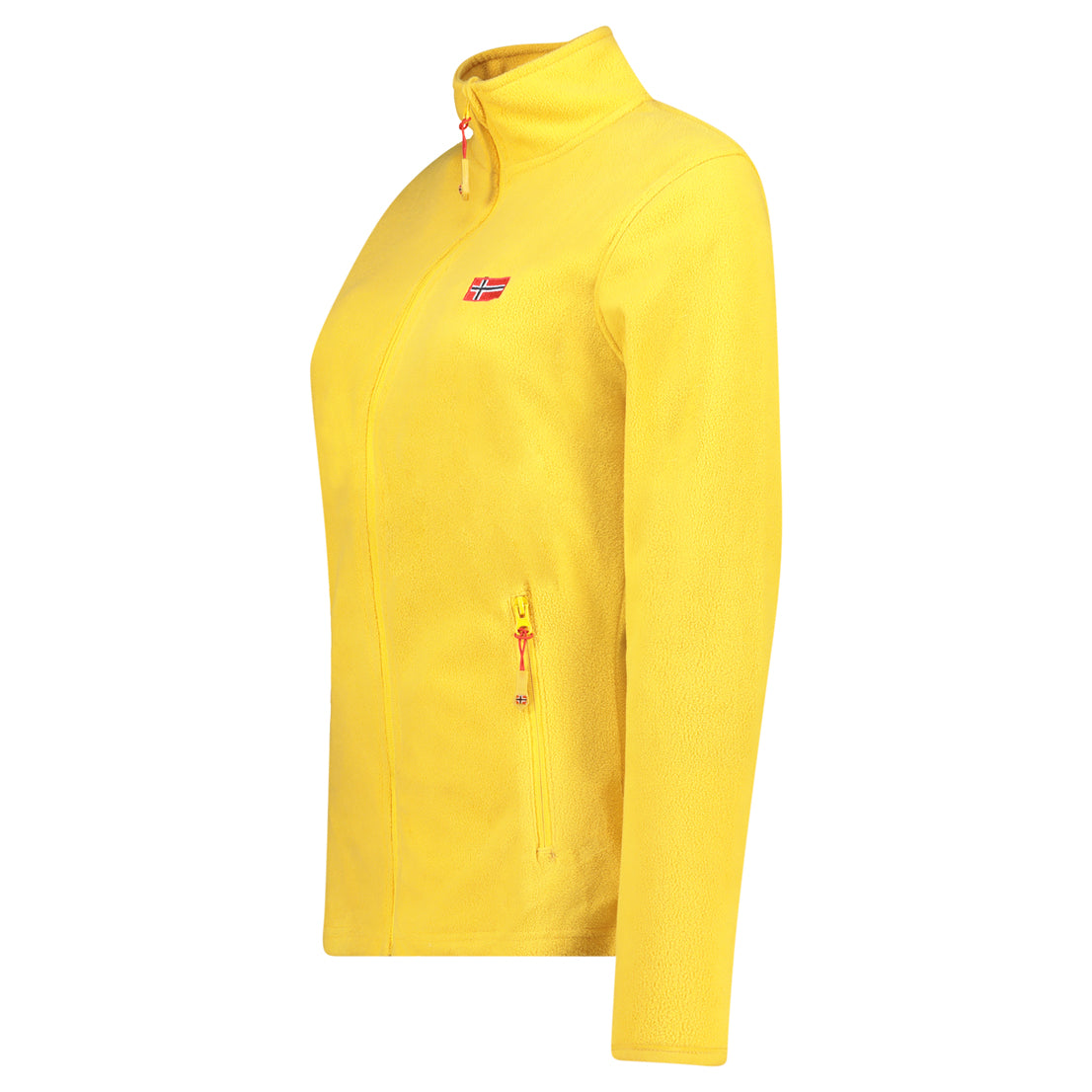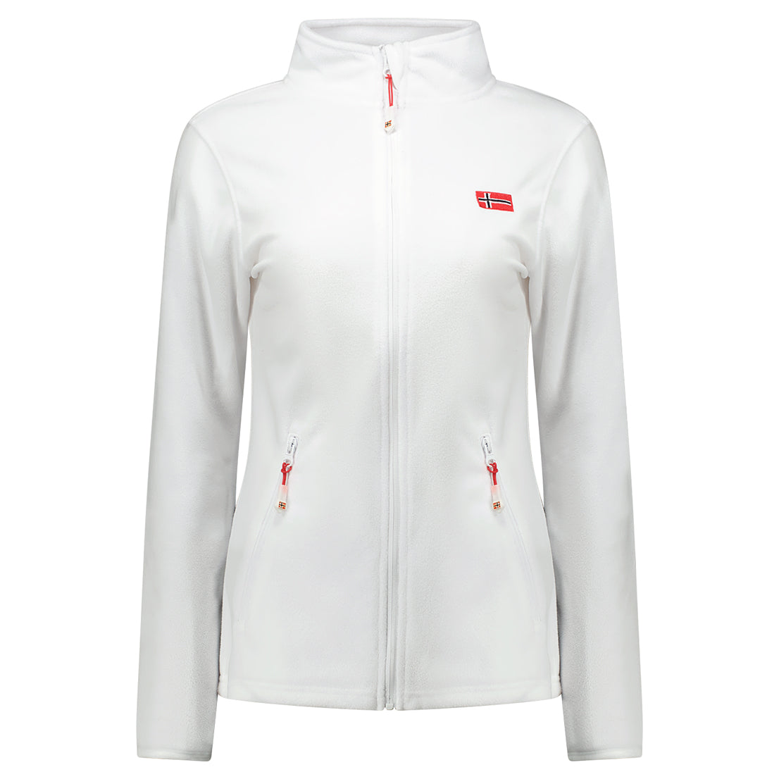 La polaire ULYSSIA pour femme à fermeture zippée arbore un drapeau sur le devant et des poches sur les côtés. Conçue pour offrir confort et style, elle est idéale pour les journées fraîches.
