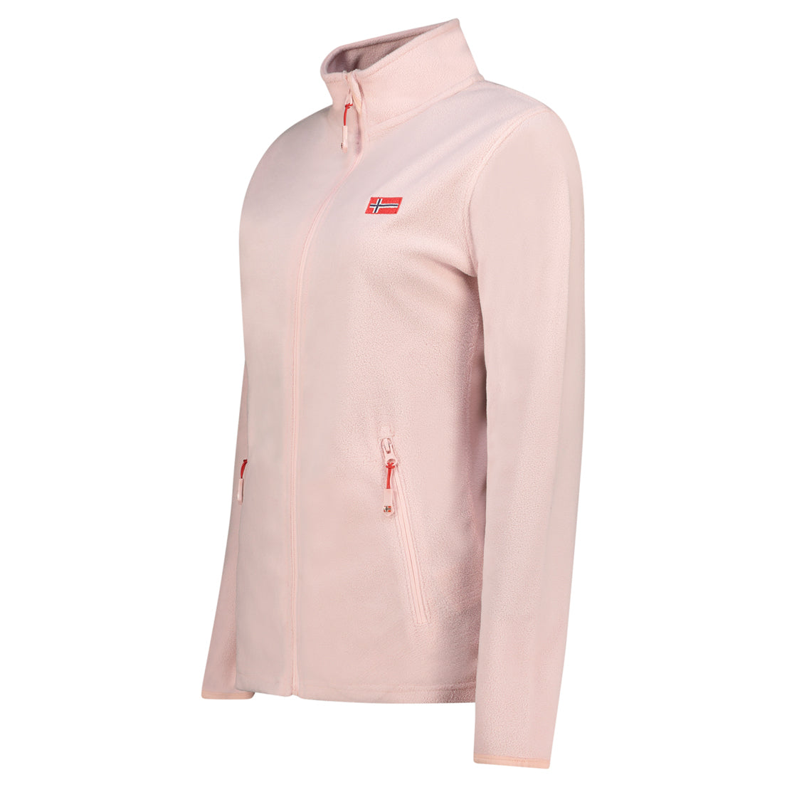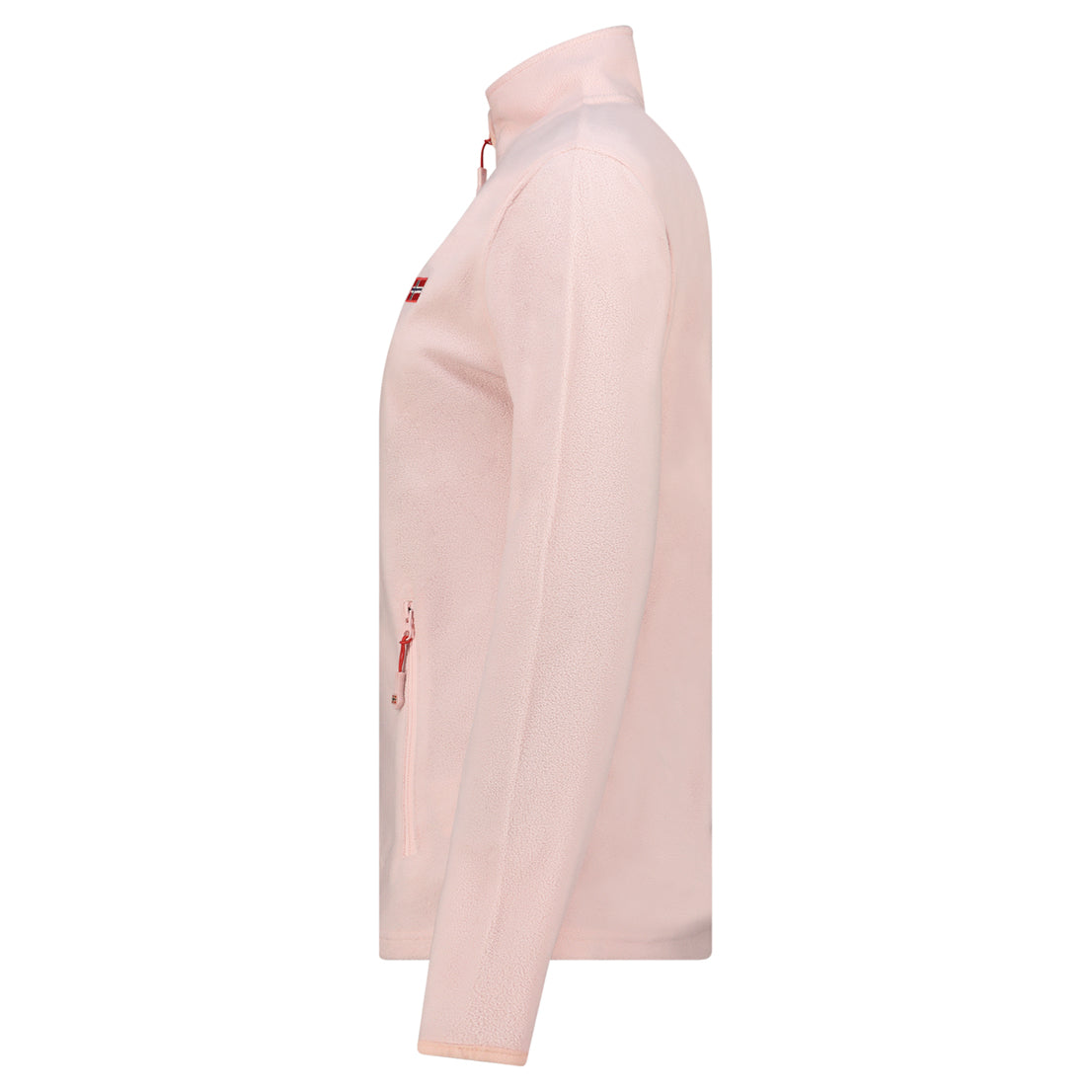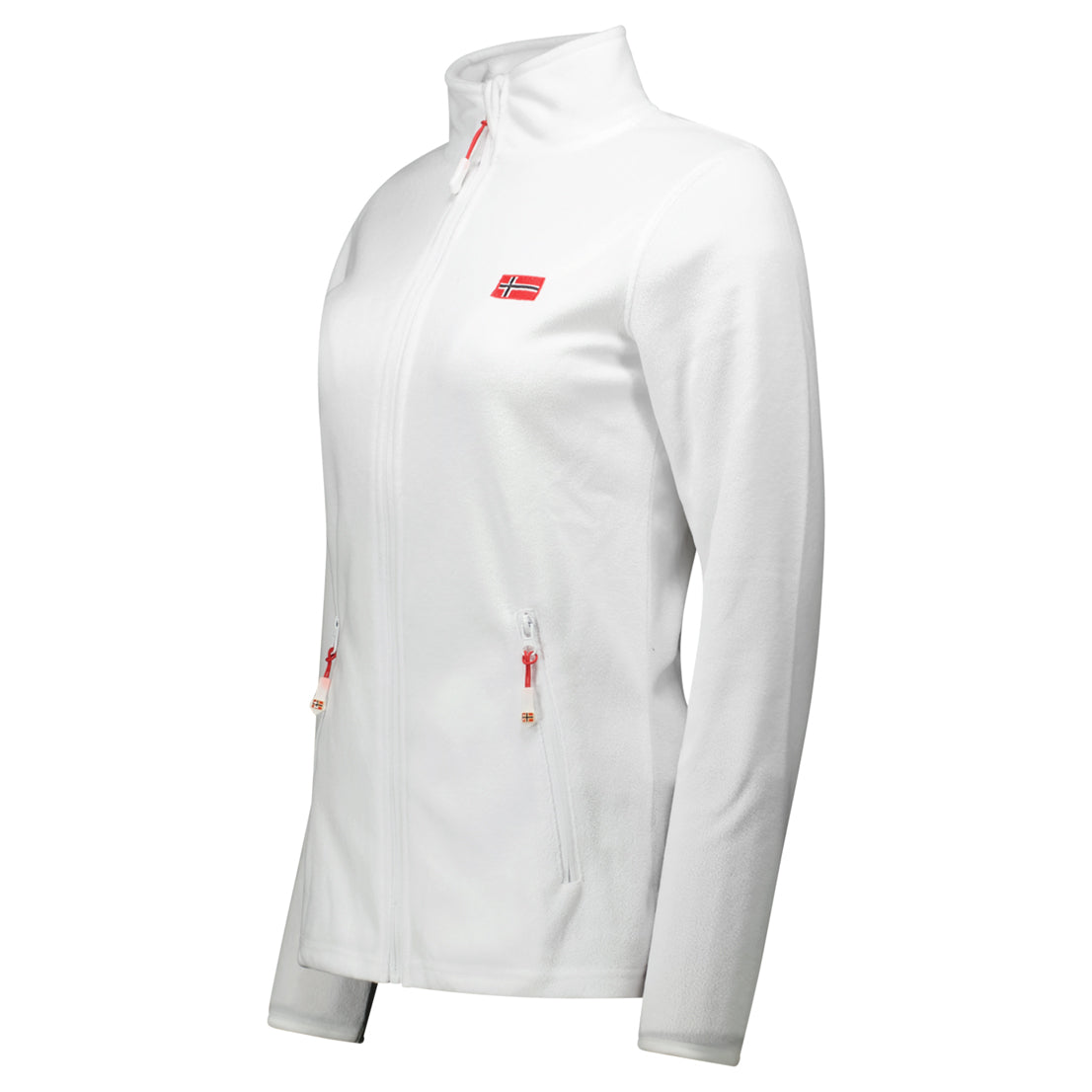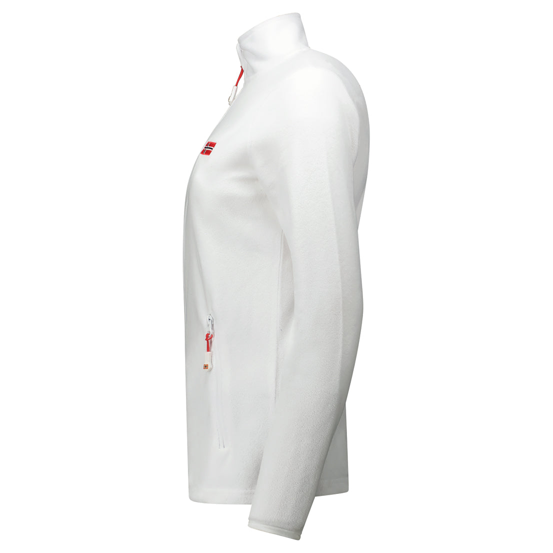 La polaire ULYSSIA pour femme à fermeture zippée arbore un drapeau sur le devant et des poches sur les côtés. Conçue pour offrir confort et style, elle est idéale pour les journées fraîches.