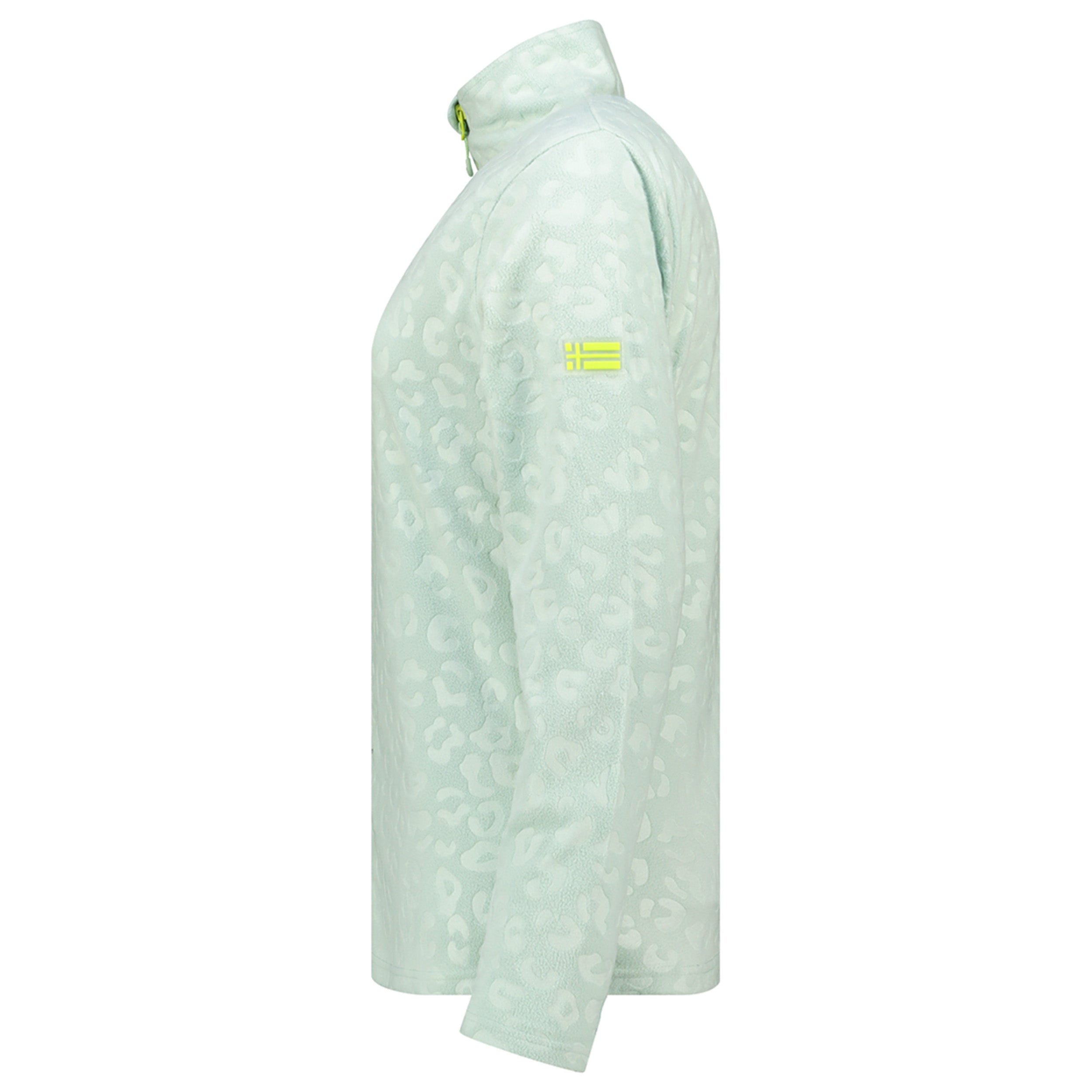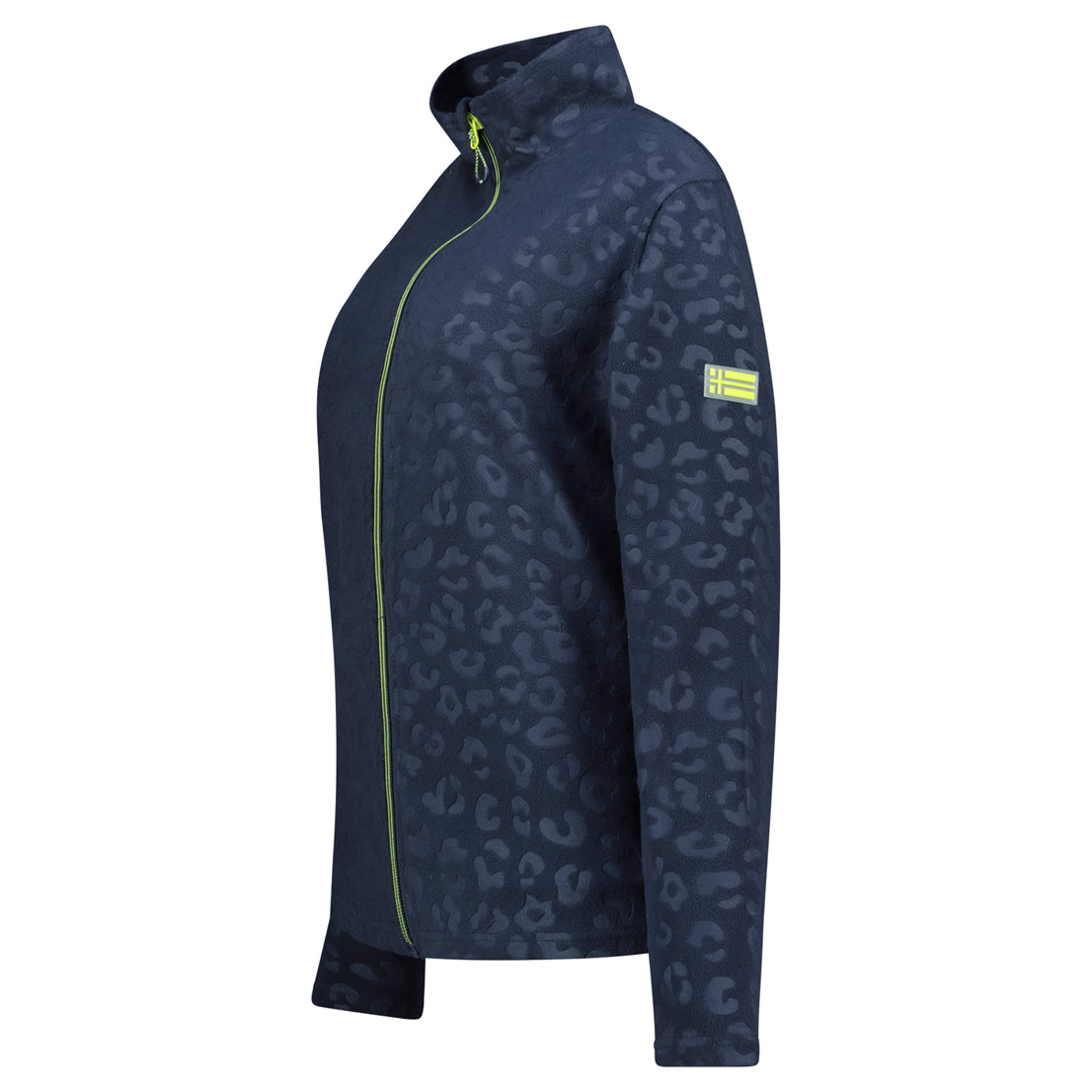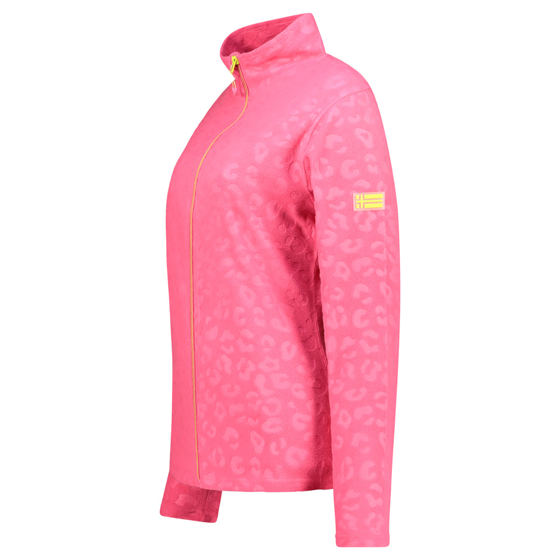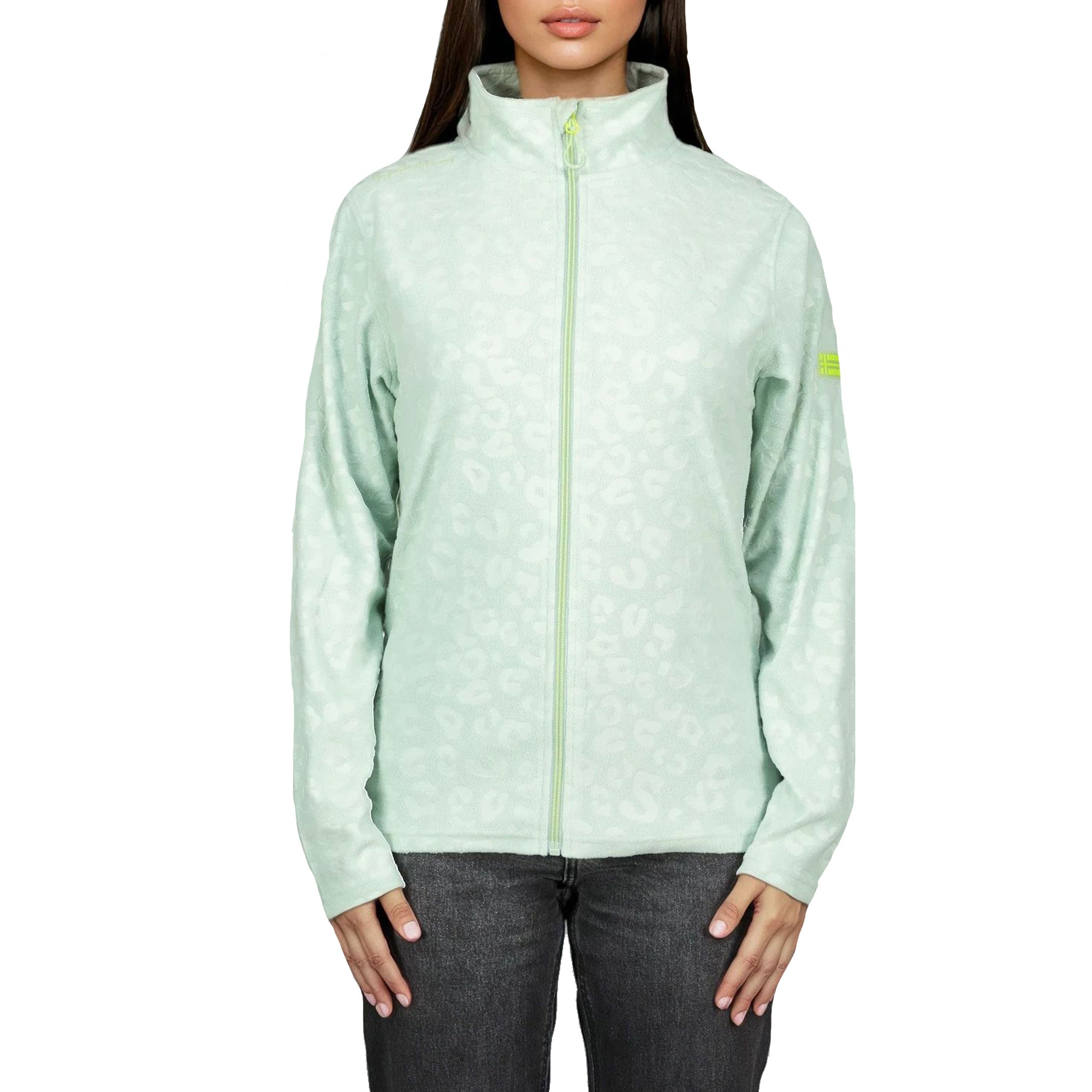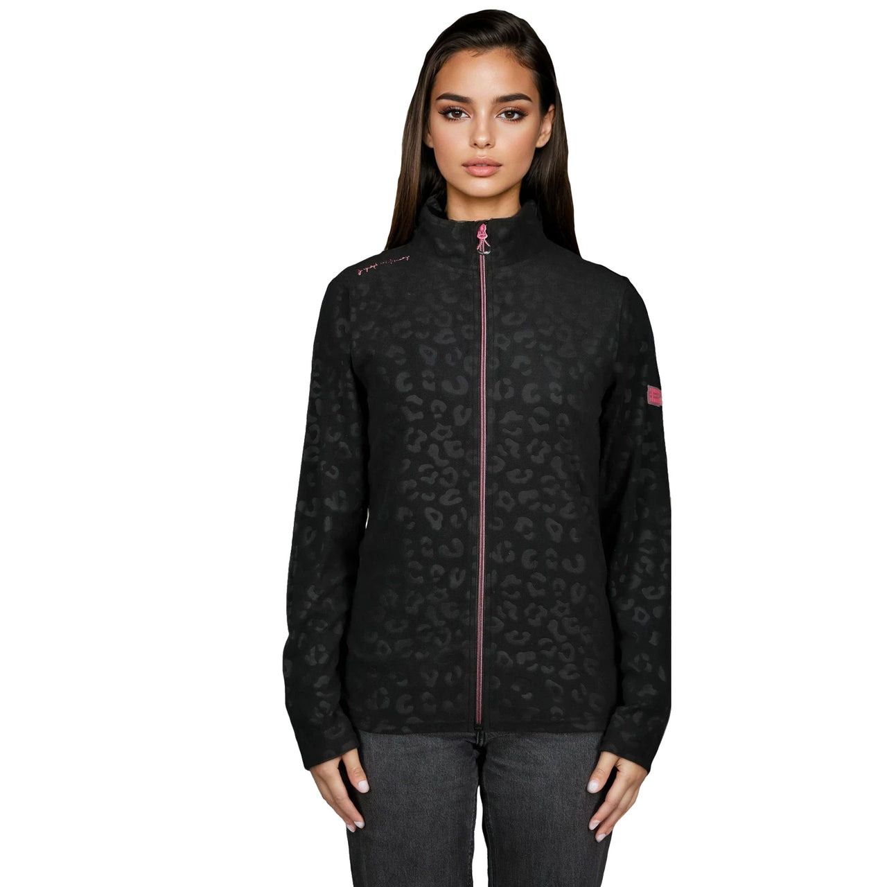 Cette polaire UMINIE pour femme, à col montant et motif léopard gaufré, se ferme par zip injecté. Elle dispose de poches latérales et d’un badge sur la manche pour un look unique et confortable.