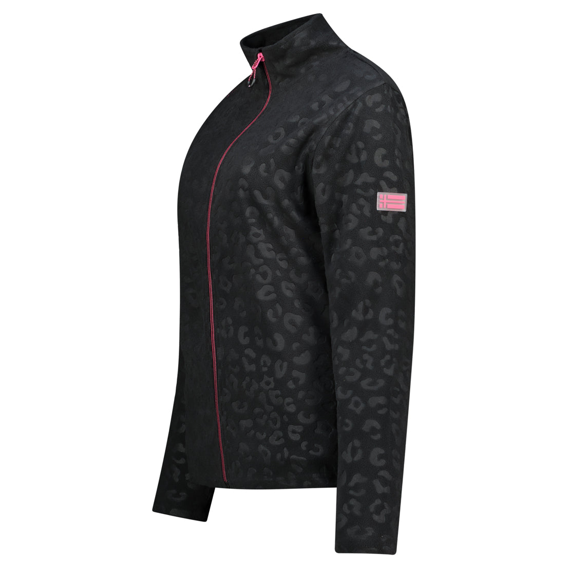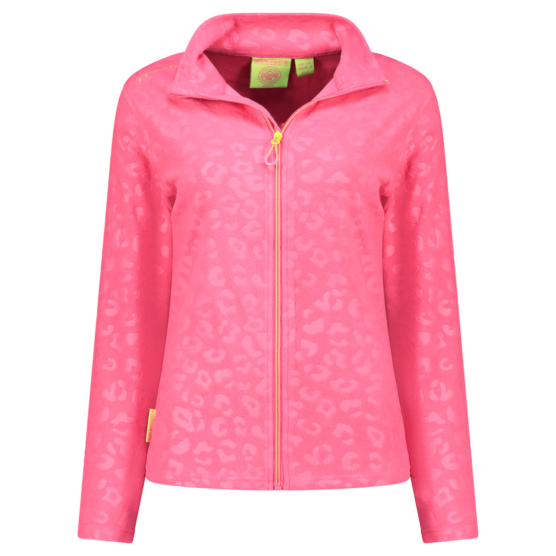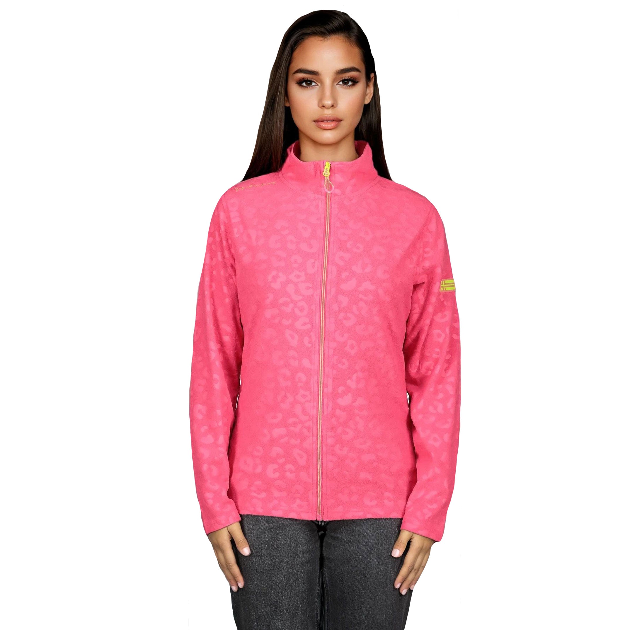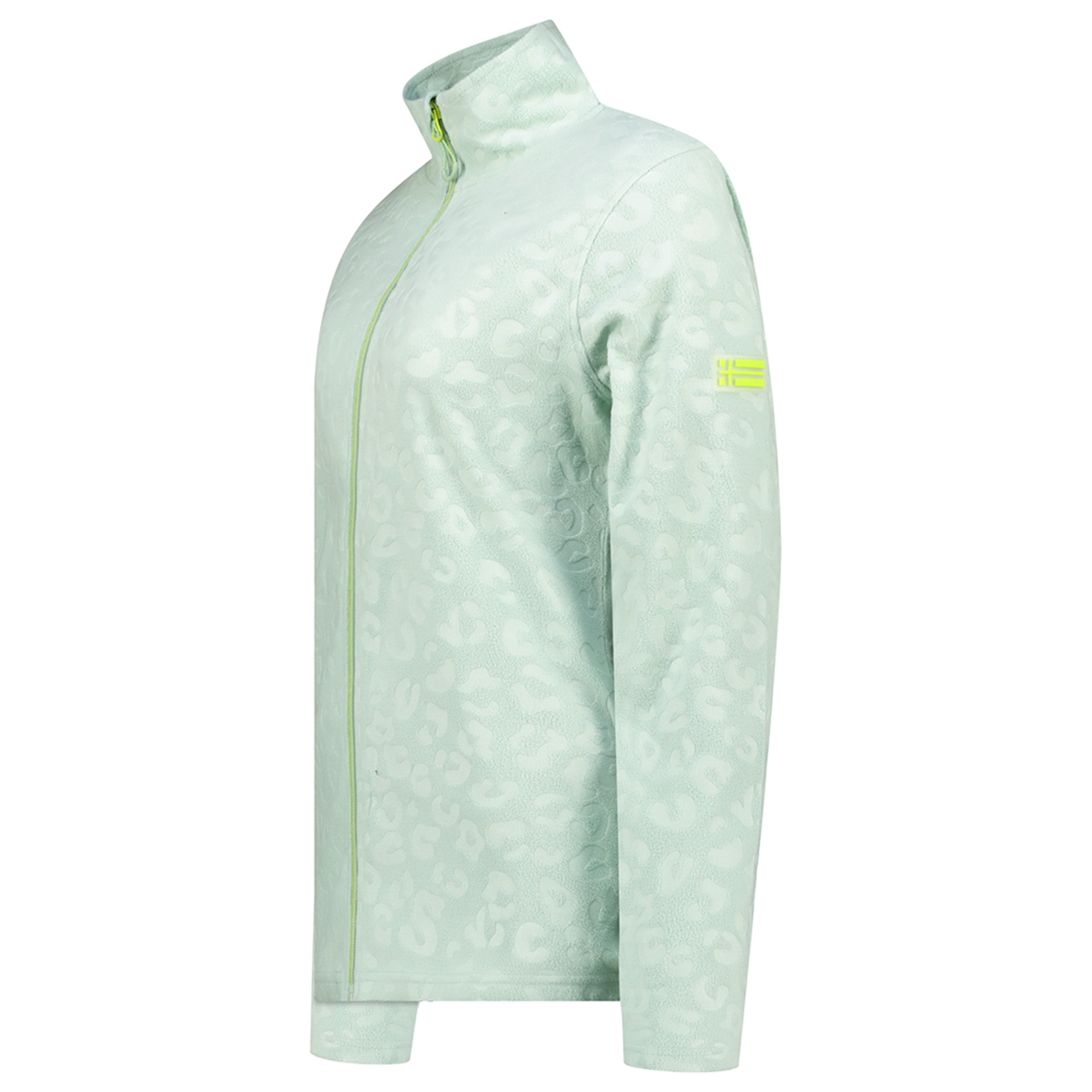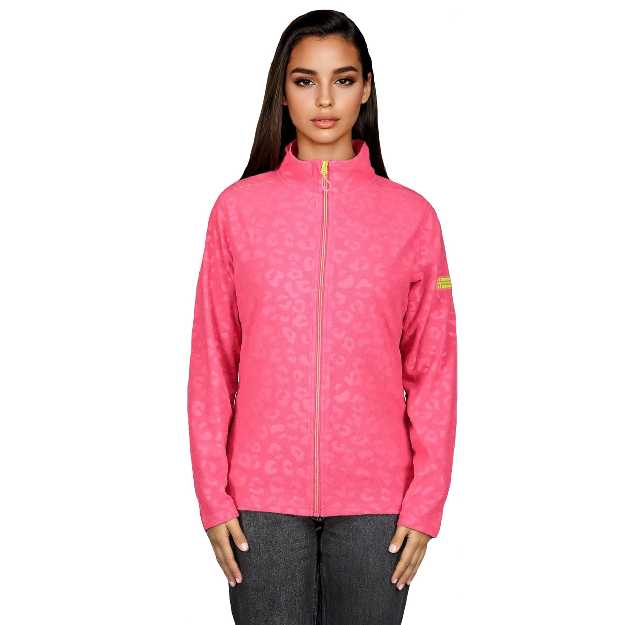 Cette polaire UMINIE pour femme, à col montant et motif léopard gaufré, se ferme par zip injecté. Elle dispose de poches latérales et d’un badge sur la manche pour un look unique et confortable.